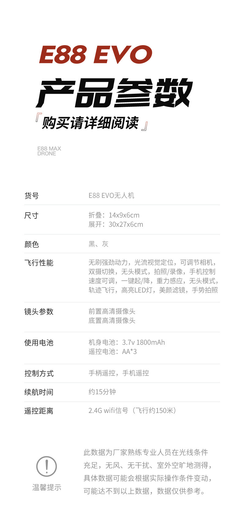 e88黑色-双摄像头【无刷电机+光流悬停】