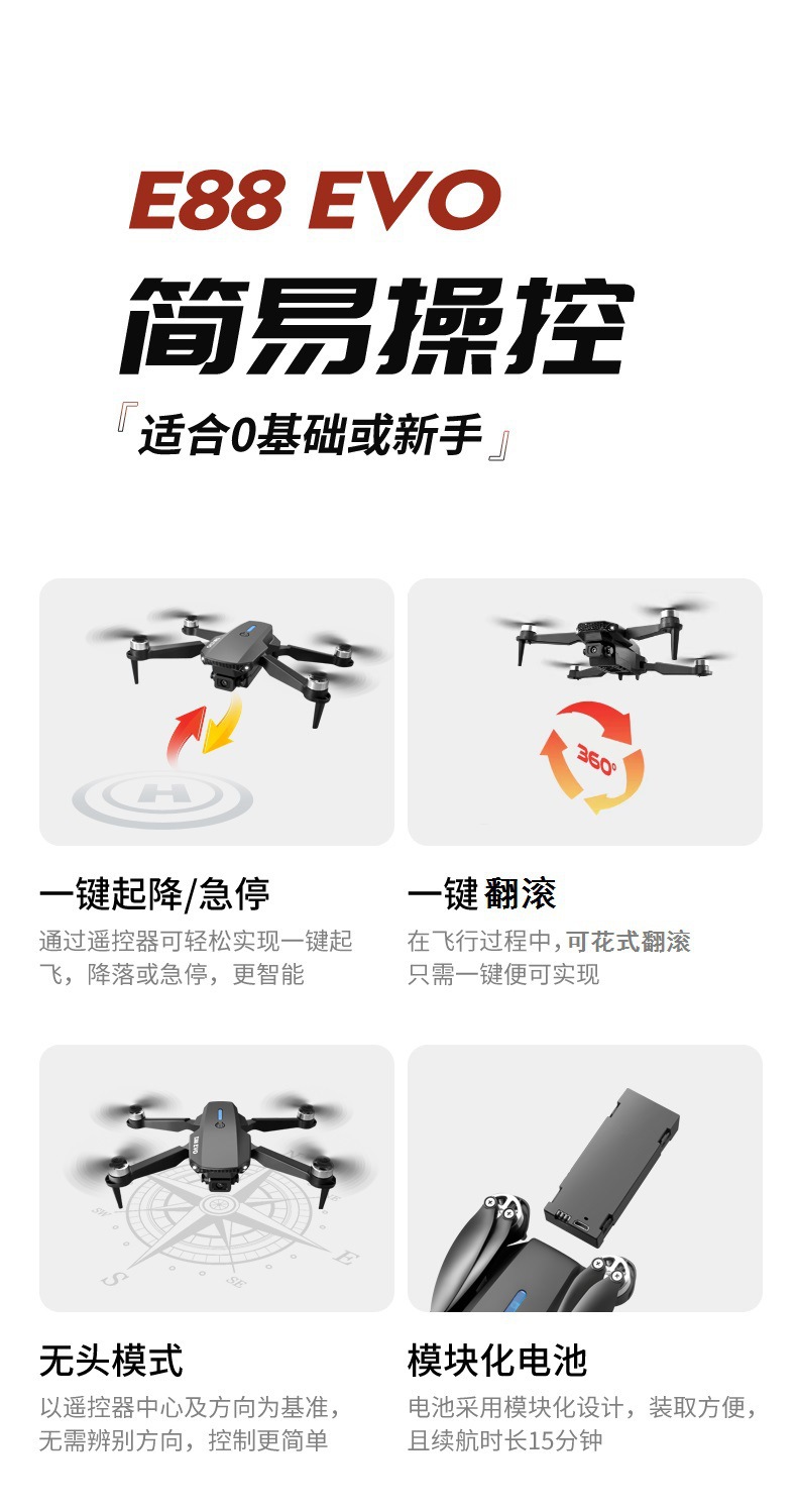 E88无人机专业航拍8k超长续航儿童玩具遥控飞机6-12岁飞行器