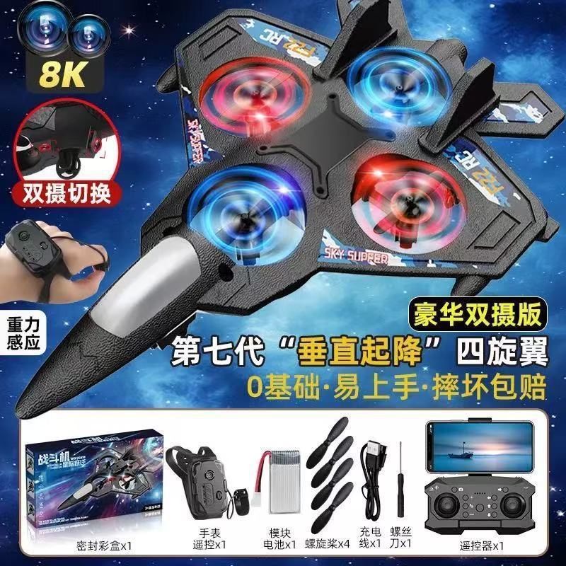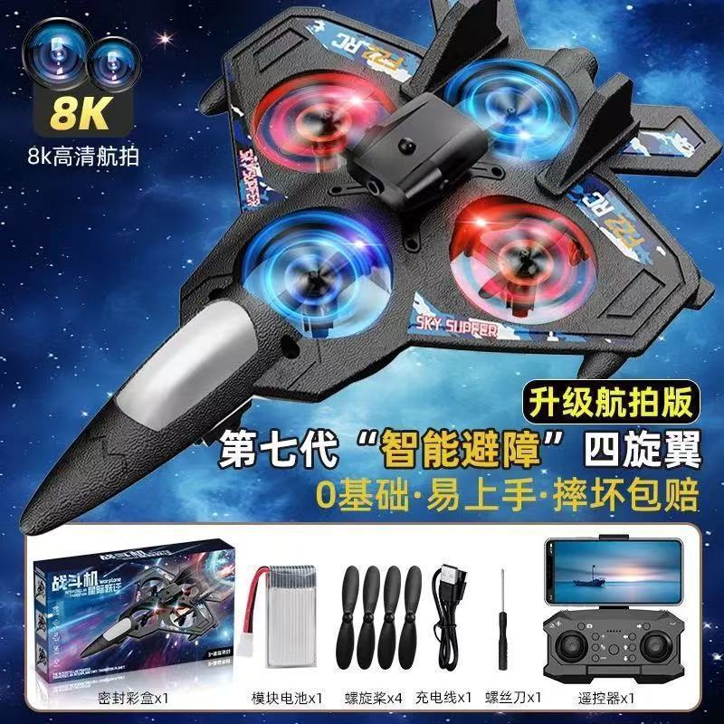 - 8K航拍【避障防丢+特技+灯光】手机手表三控