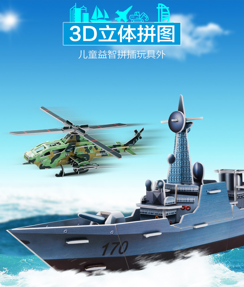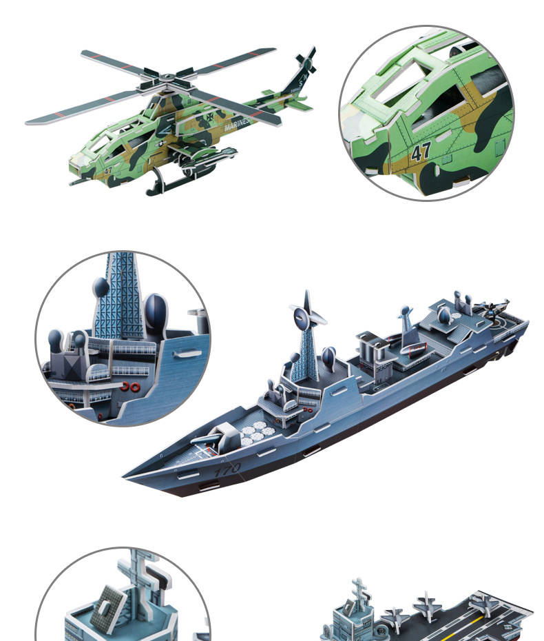 军舰坦克飞机手工模型3D立体拼插益智拼图智力拼装网课科教礼物