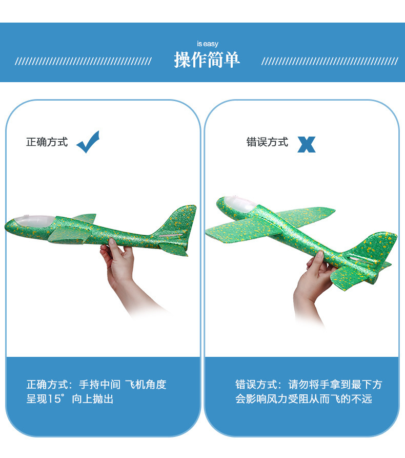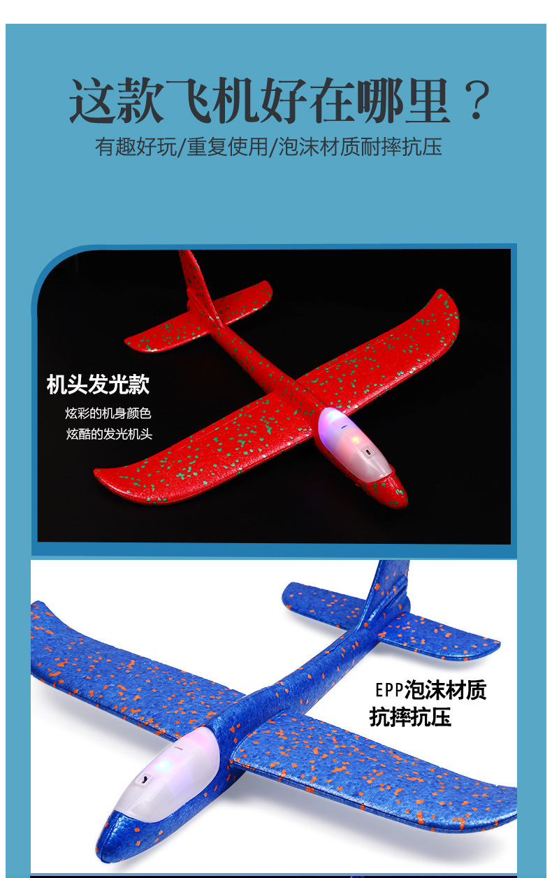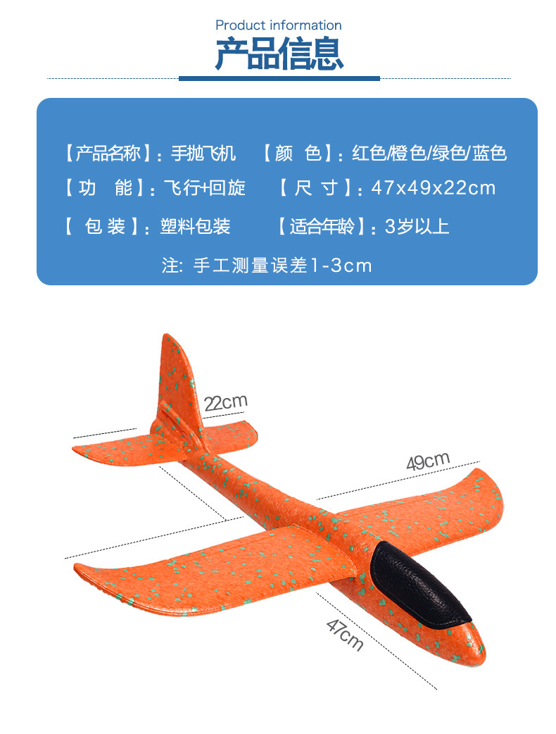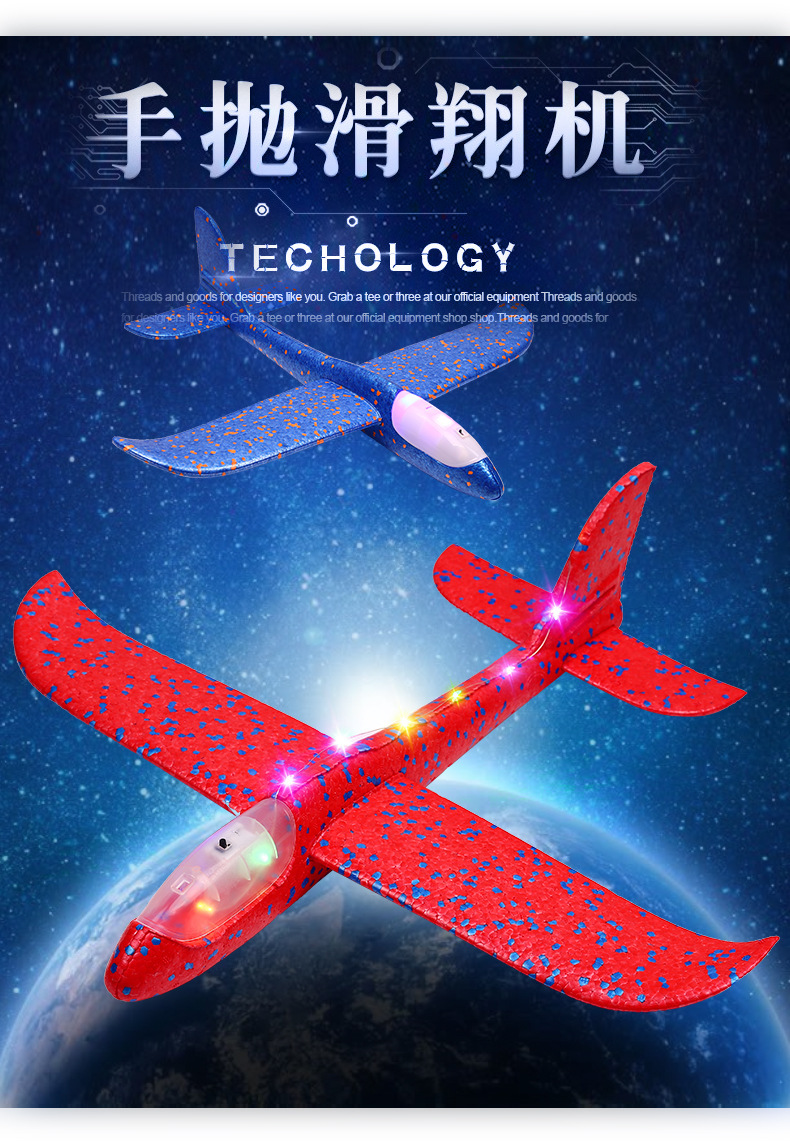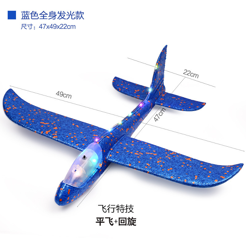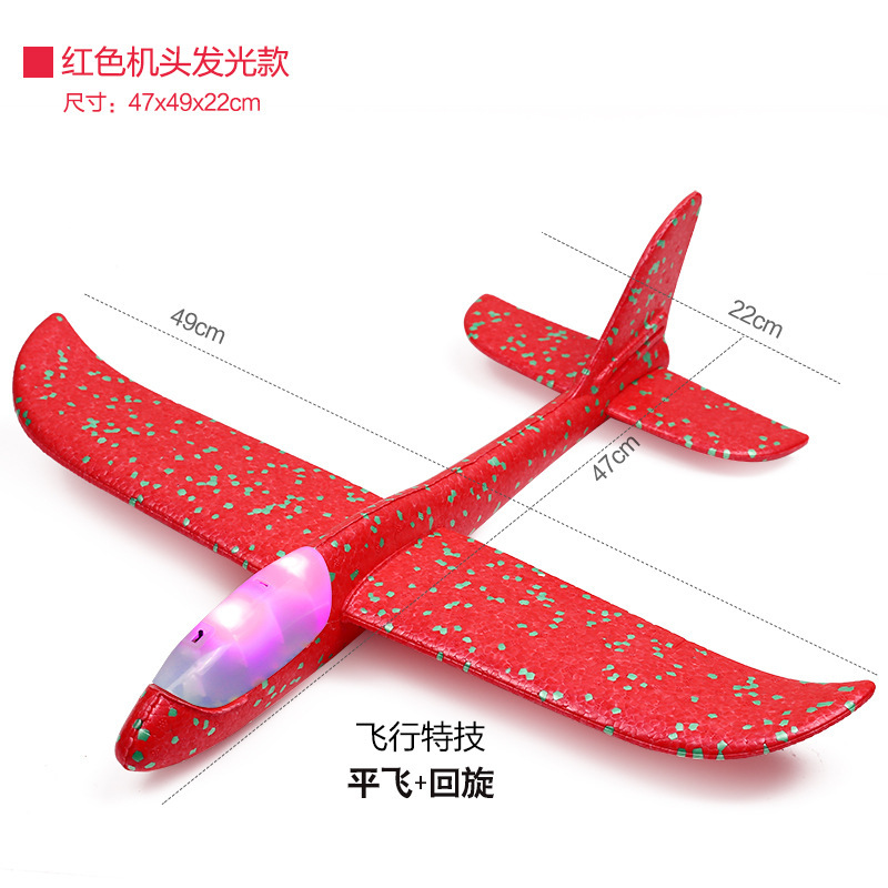 大号49cm泡沫飞机发光玩具手抛飞机模型玩具回旋航模儿童玩