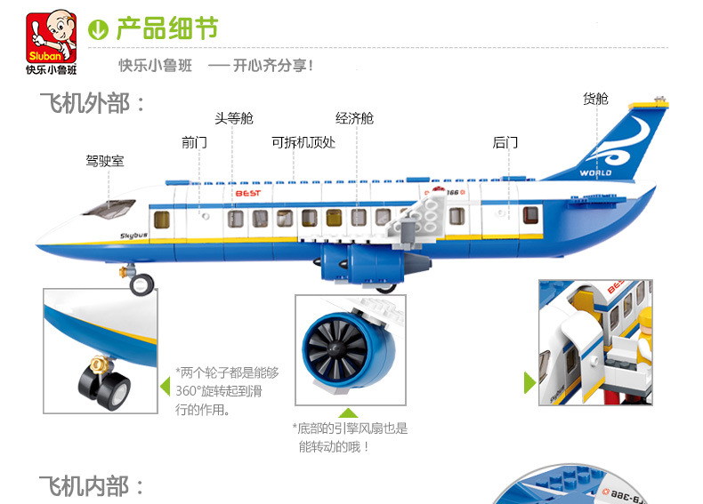 小鲁班0366积木航天飞机模型地空中巴士男孩拼装玩具交通工具益智