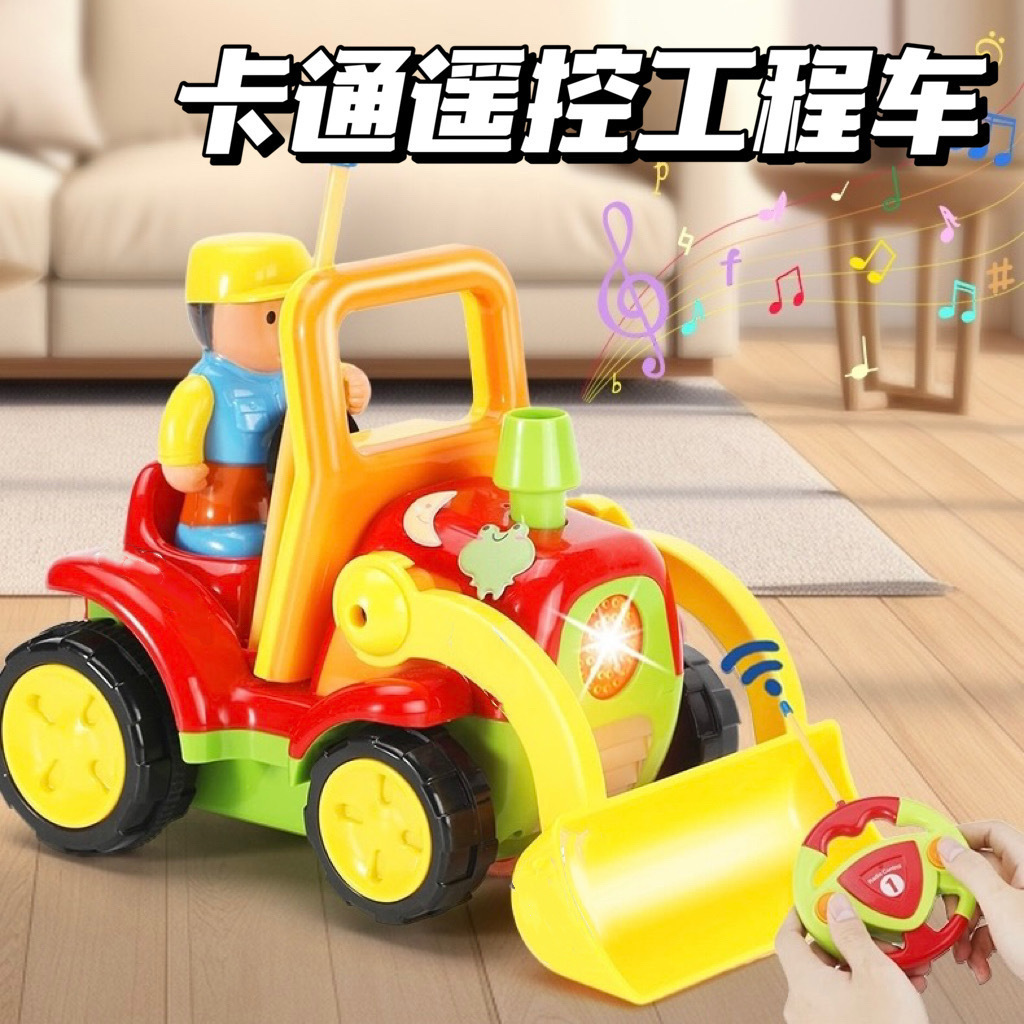 跨境新款卡通遥控工程车儿童灯光音乐电动男孩遥控车亲子互动玩具