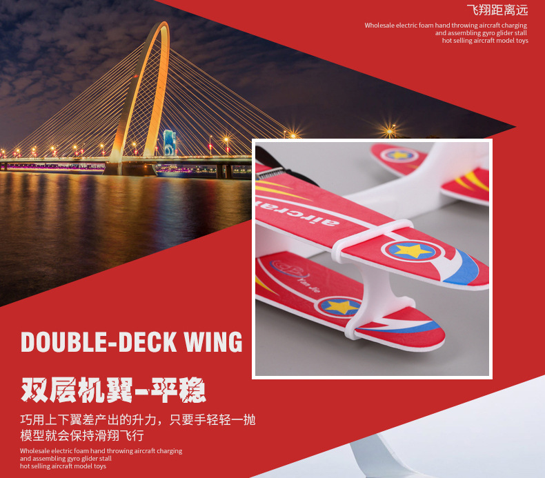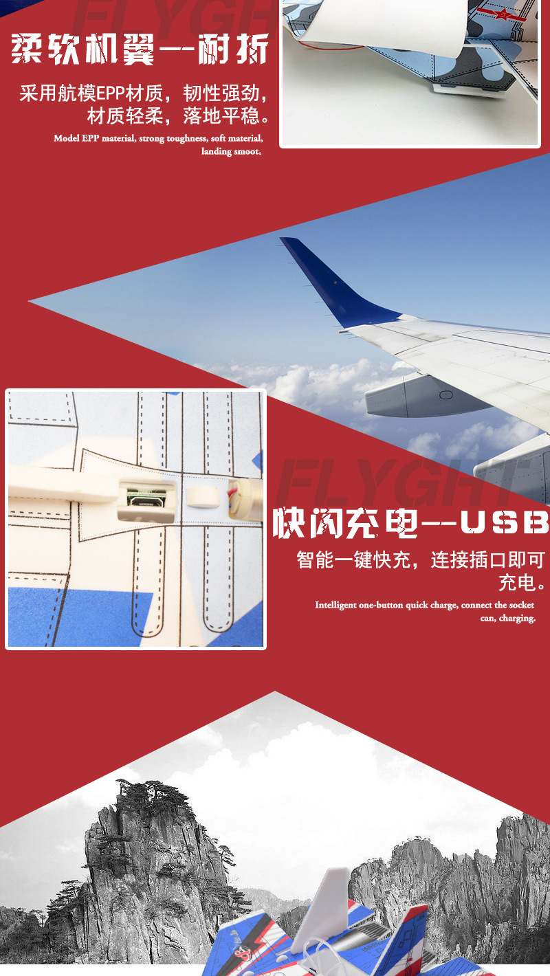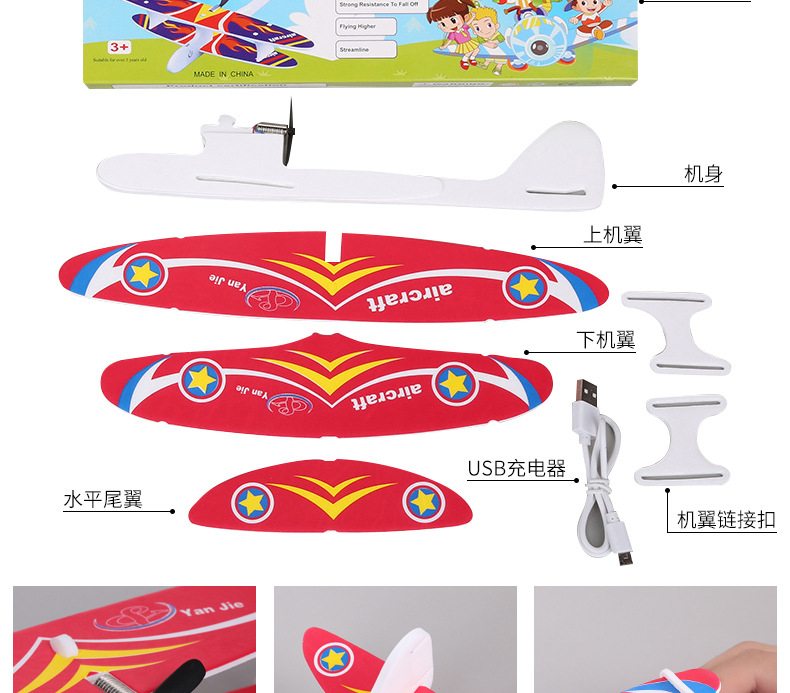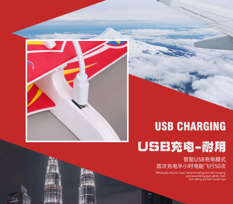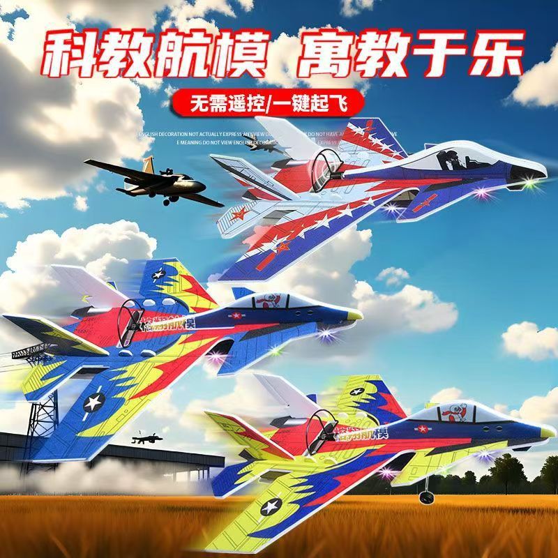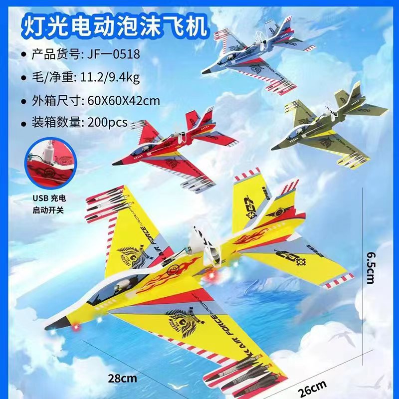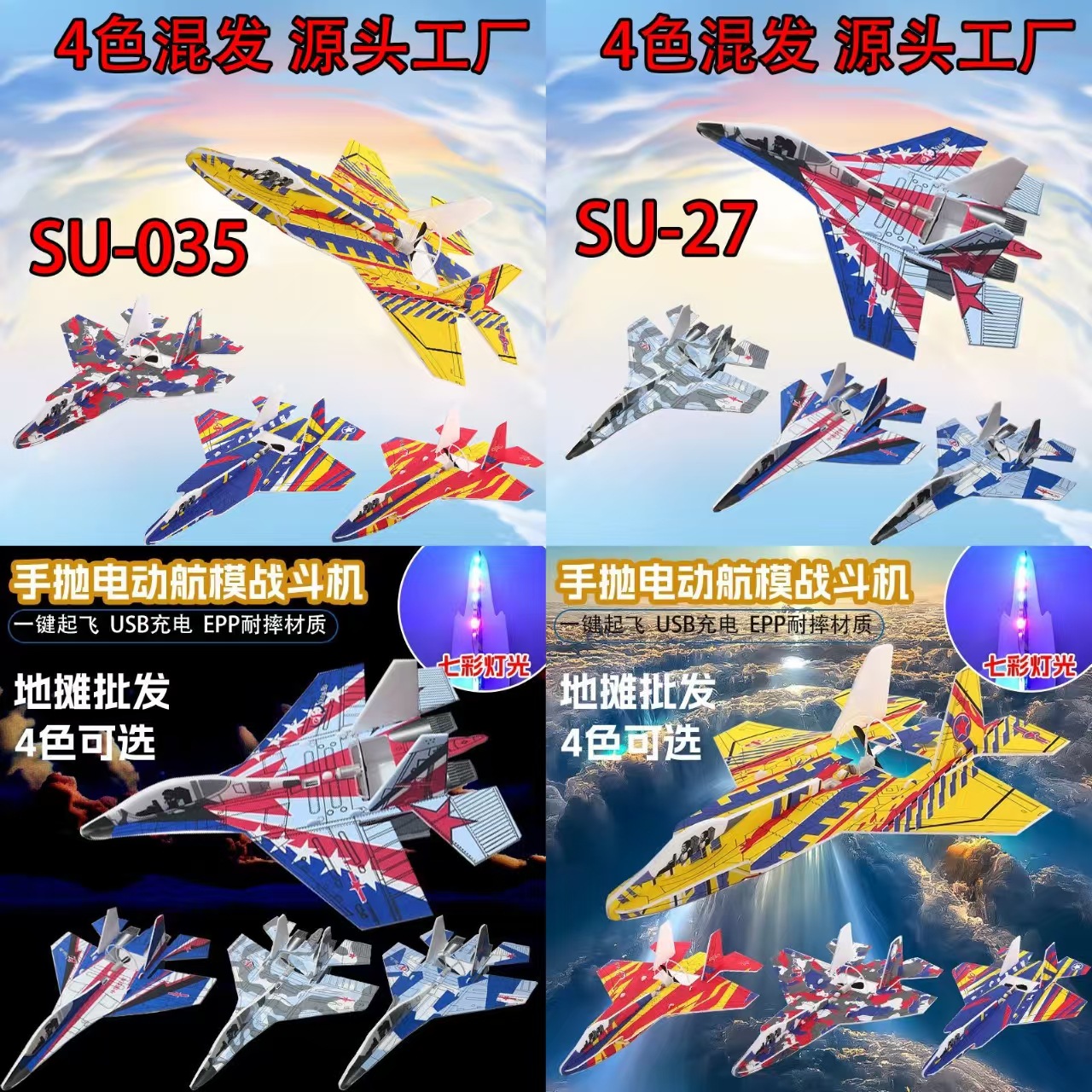 电动手抛飞机USB电容充电战斗机耐摔回旋泡沫滑翔机电动飞机