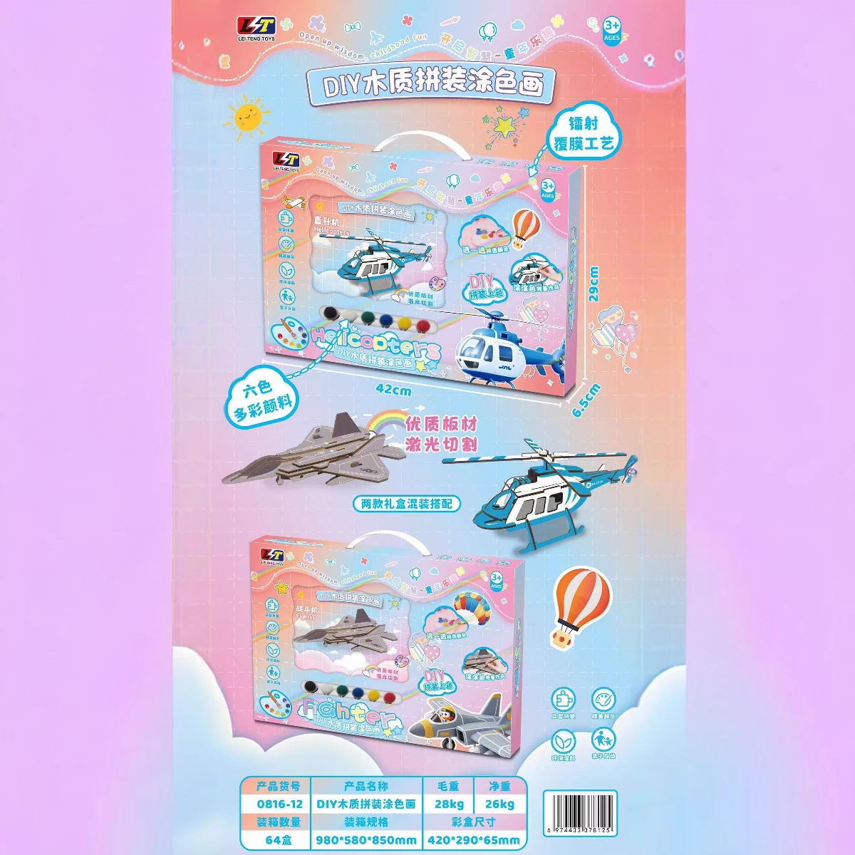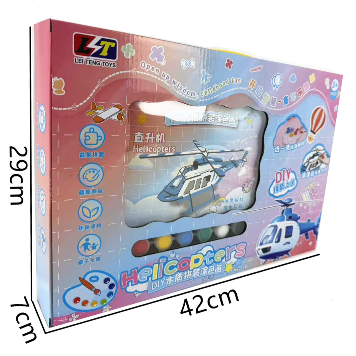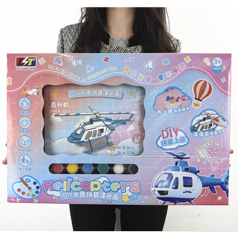 儿童玩具直升机DIY木质拼装拼图涂色沙画涂鸦绘画大礼品益智