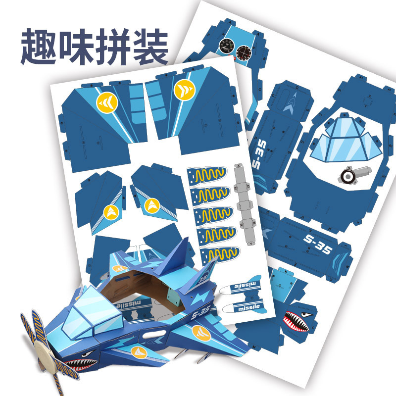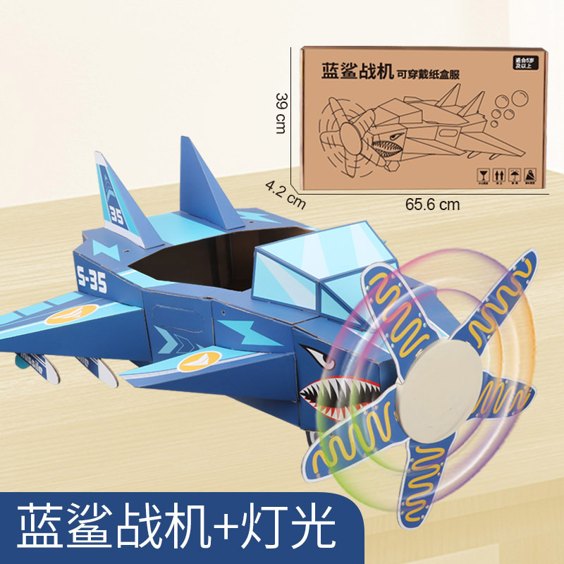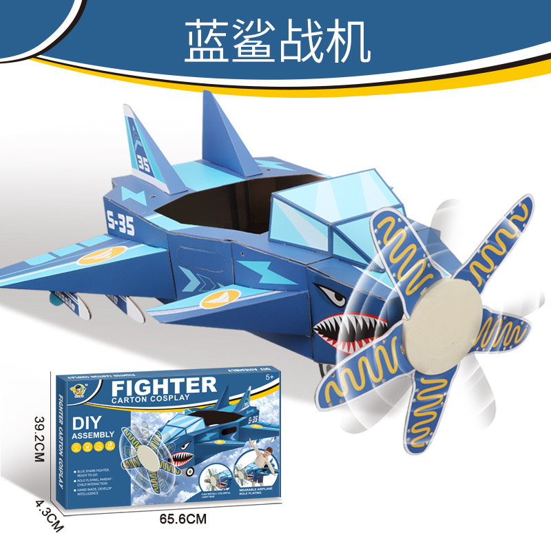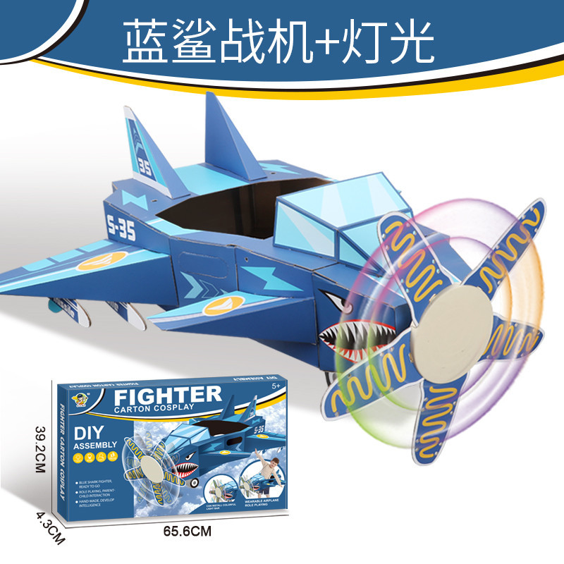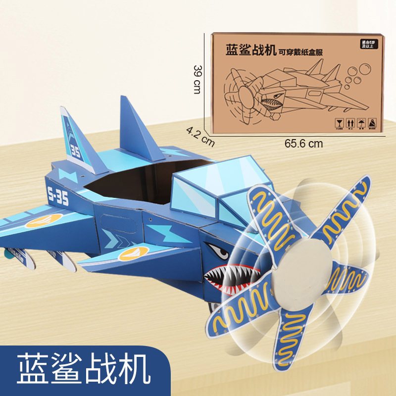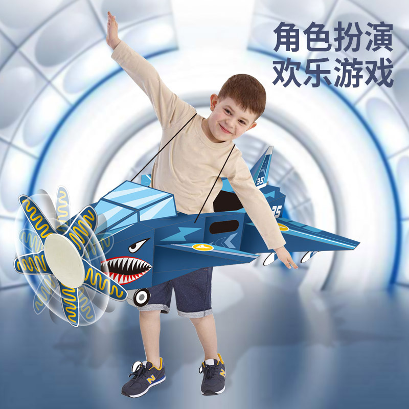 儿童diy手工制作飞机模型可穿戴纸箱飞机玩具亲子户外吹泡泡表演
