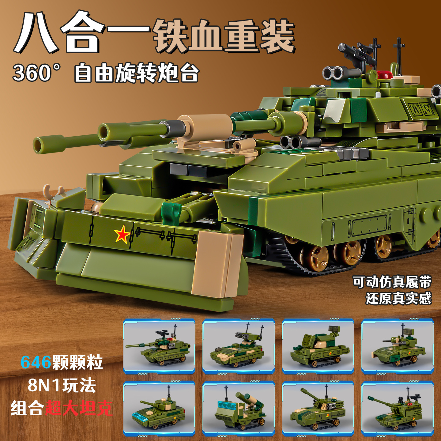 森宝8合1积木铁血重装巷战坦克高射炮火箭炮儿童军事玩具拼装模型