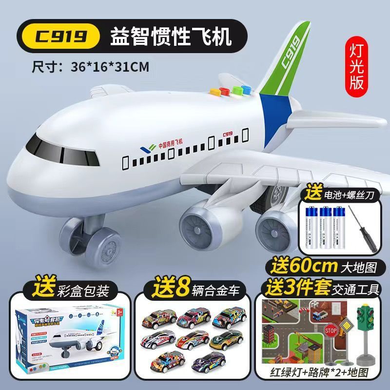 耐摔大号惯性电动早教飞机灯光音乐客机模型儿童玩具男孩生日礼物