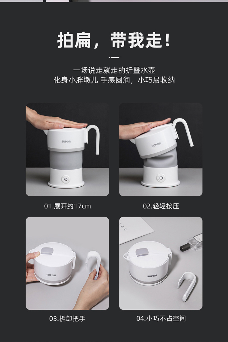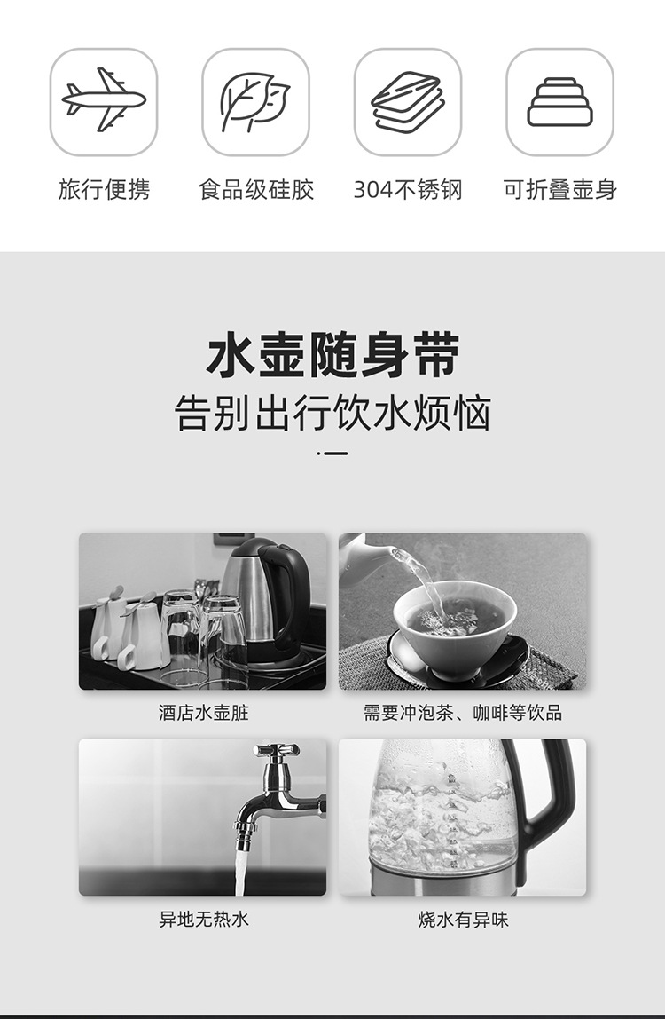 电热水壶0.6L便携式食品级硅胶折叠旅行烧水壶SW-06J007