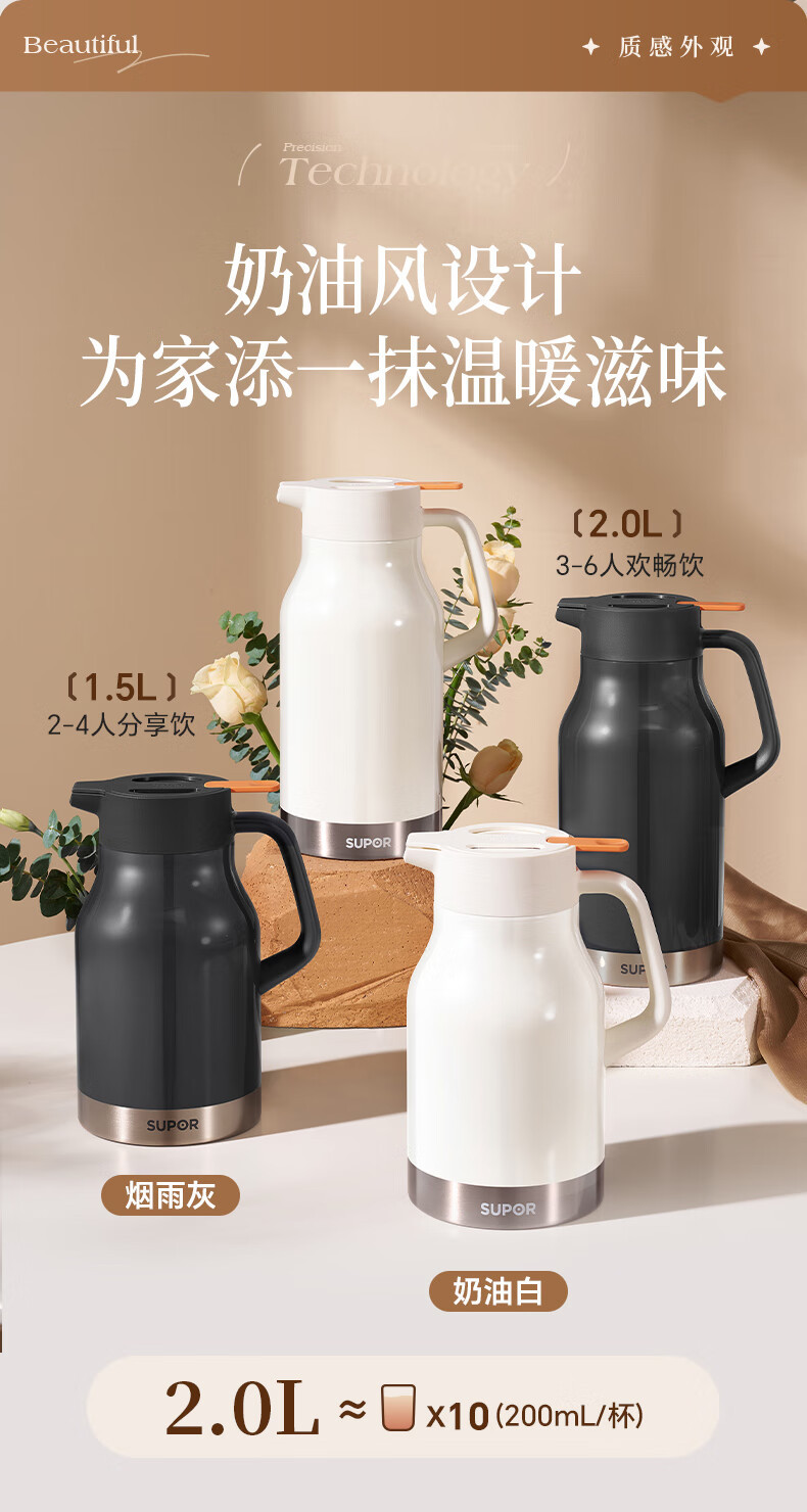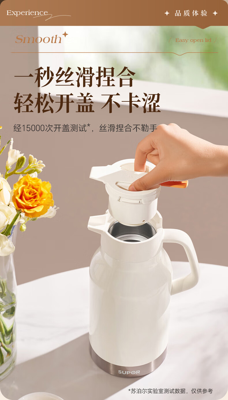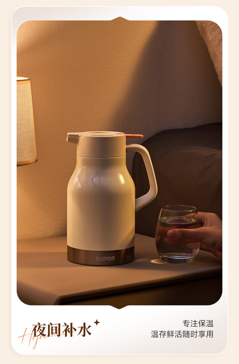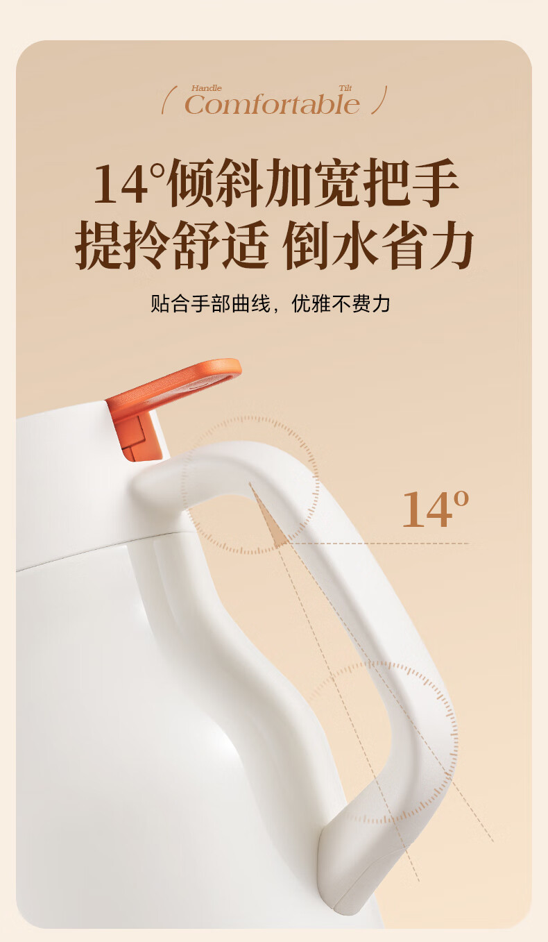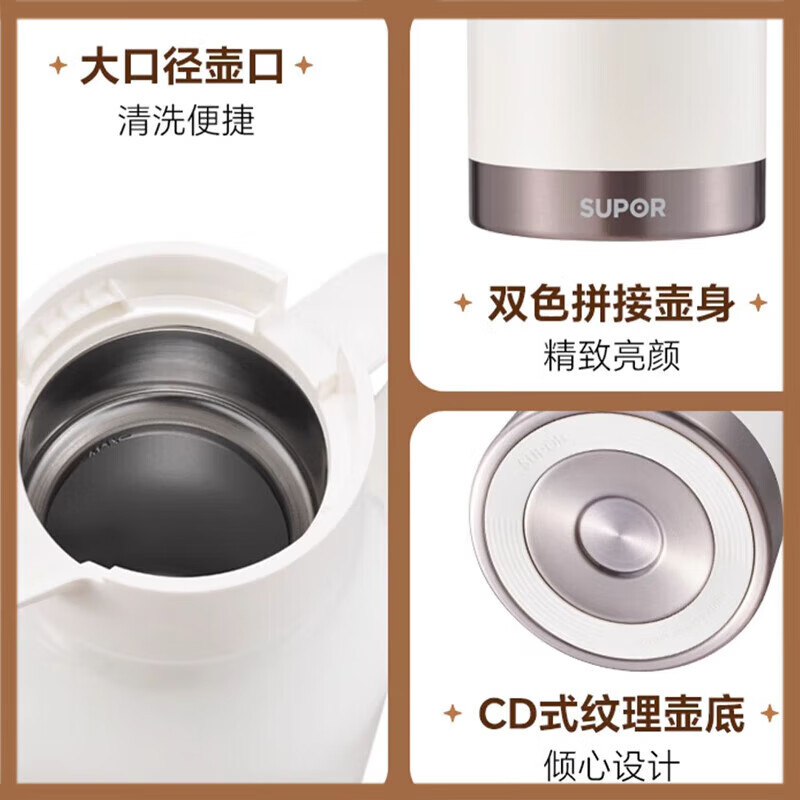 锁温保温壶大容量水壶热水瓶办公家用1.5L奶油白KCV15BF50