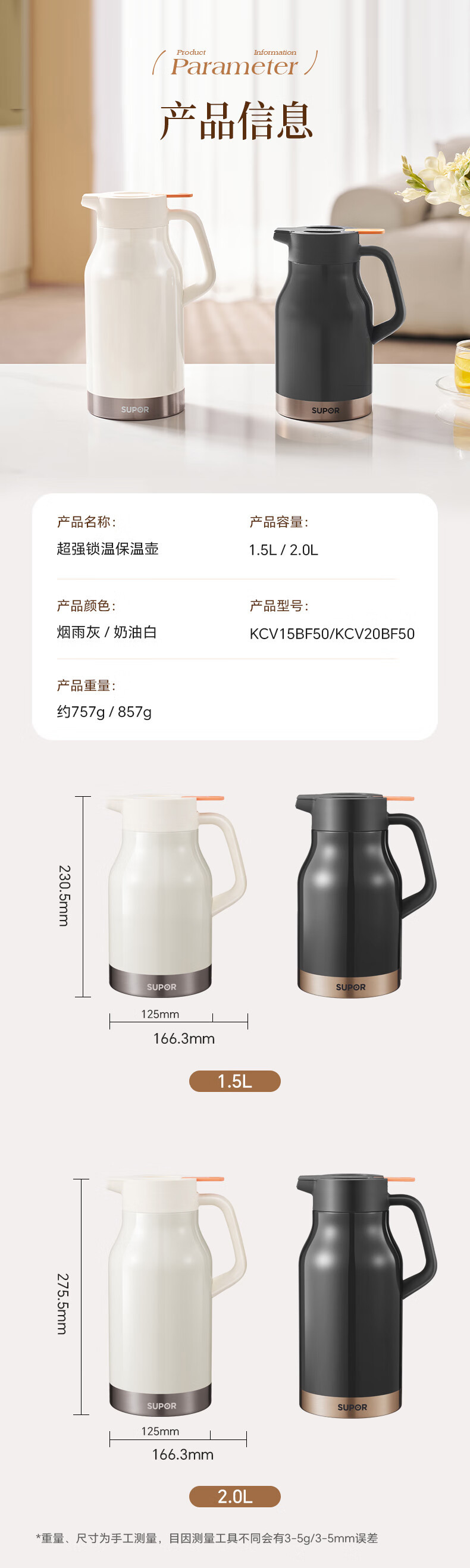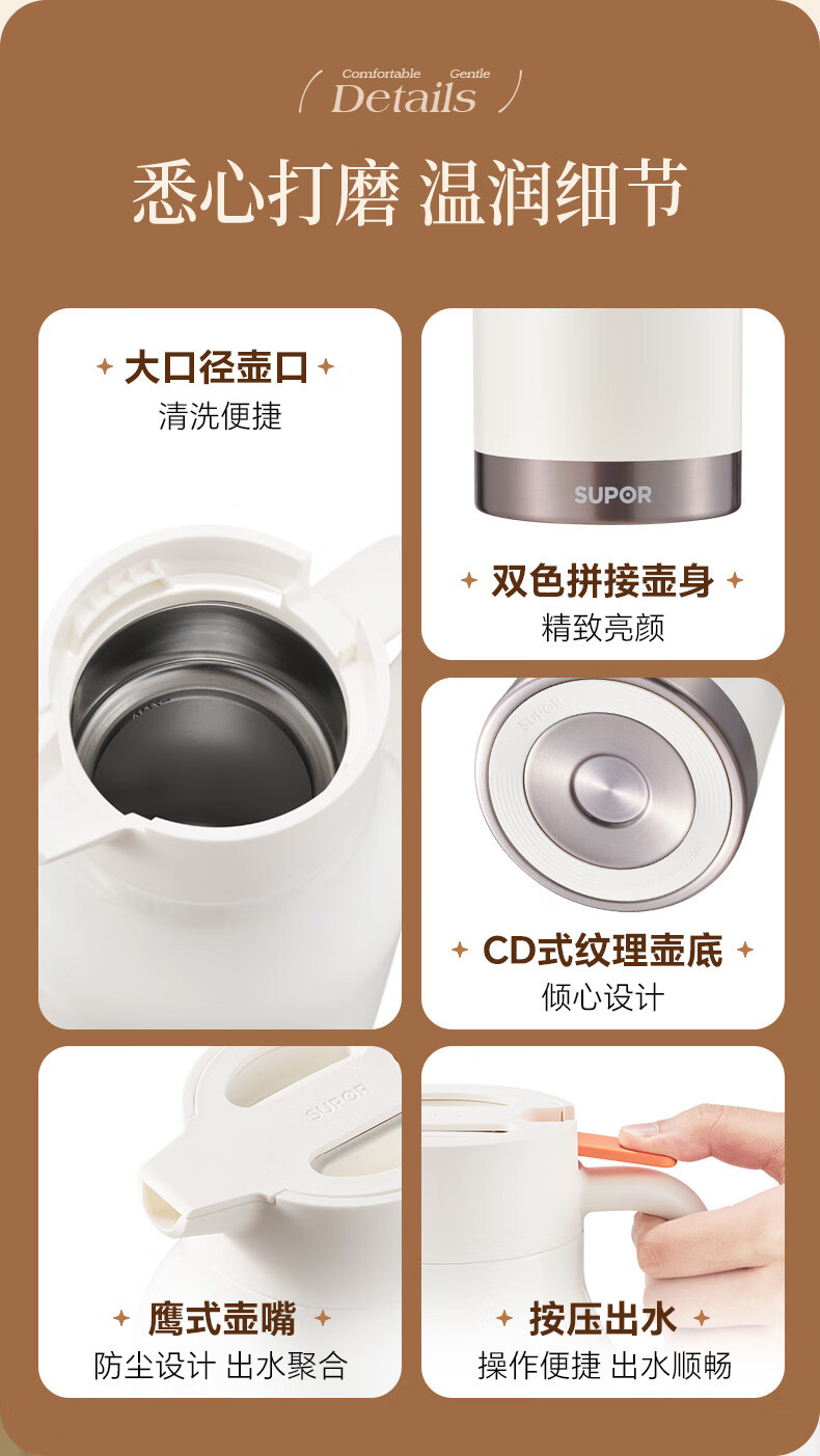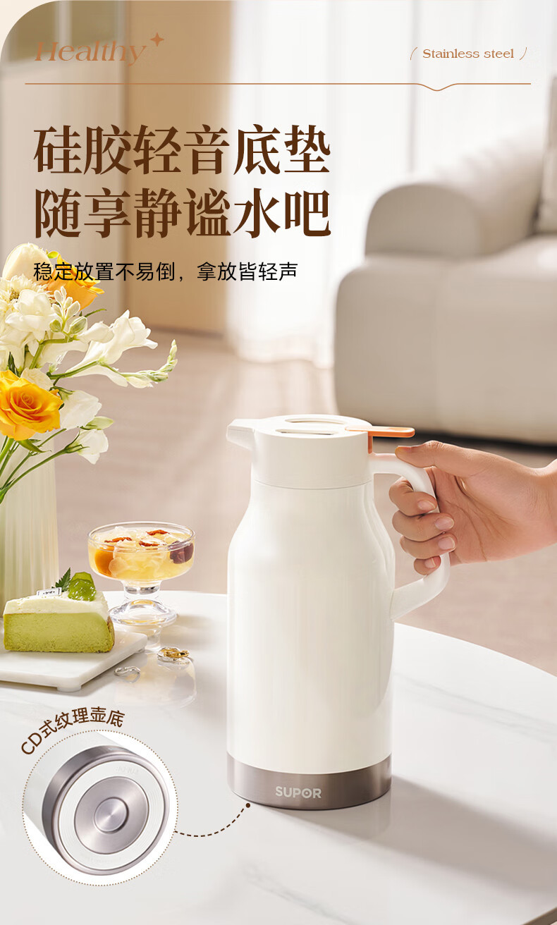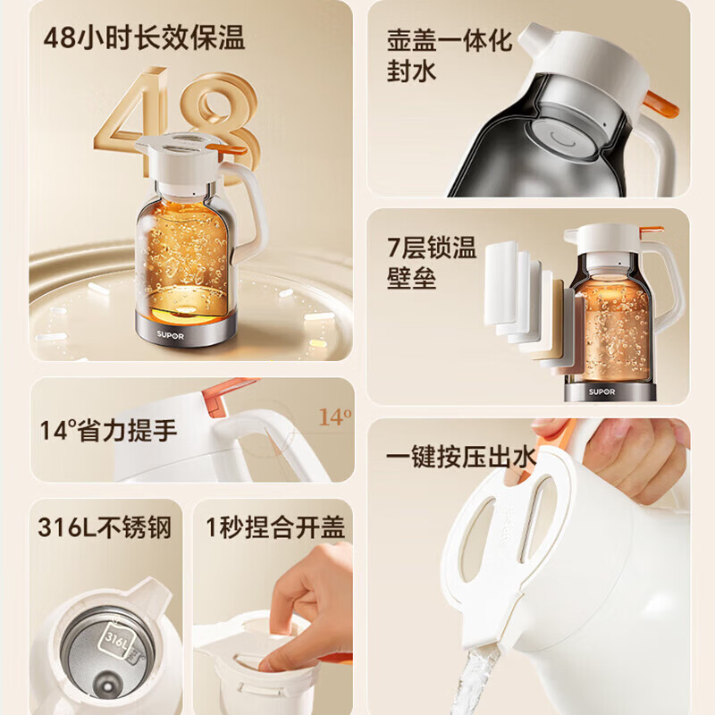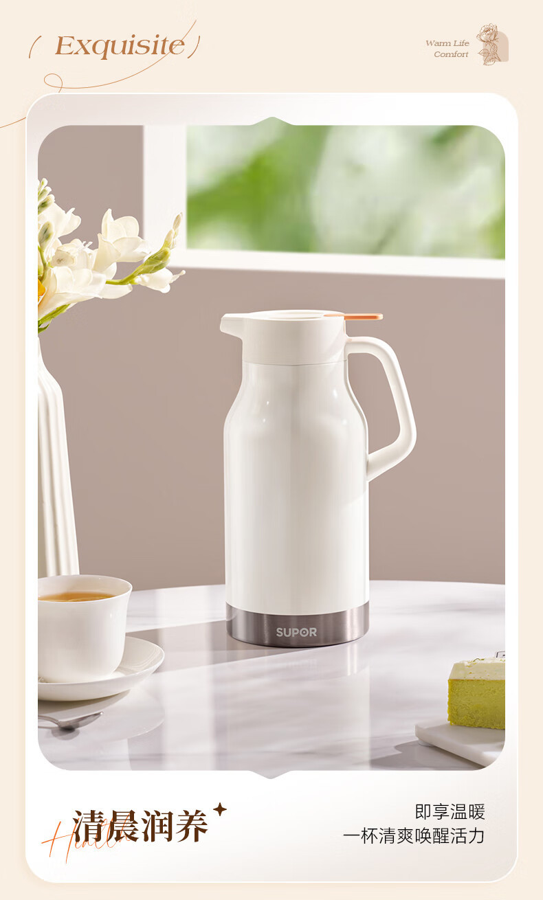 锁温保温壶大容量水壶热水瓶办公家用1.5L奶油白KCV15BF50