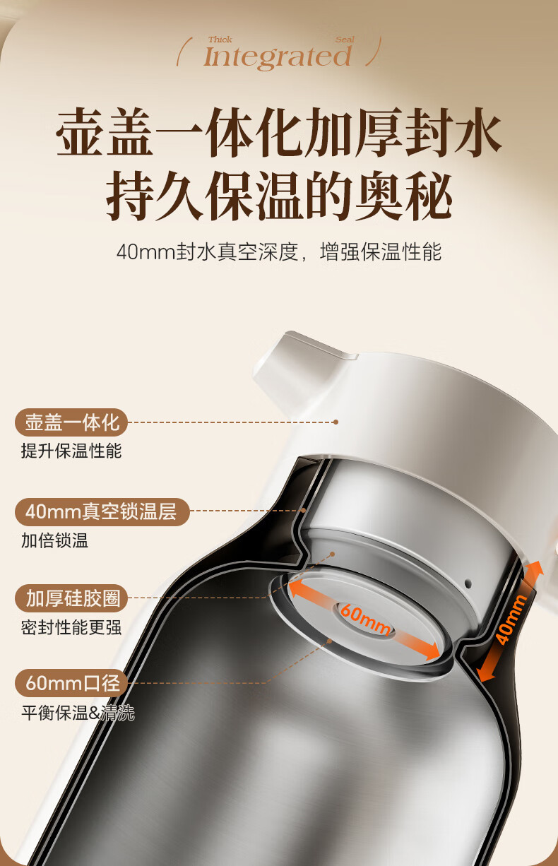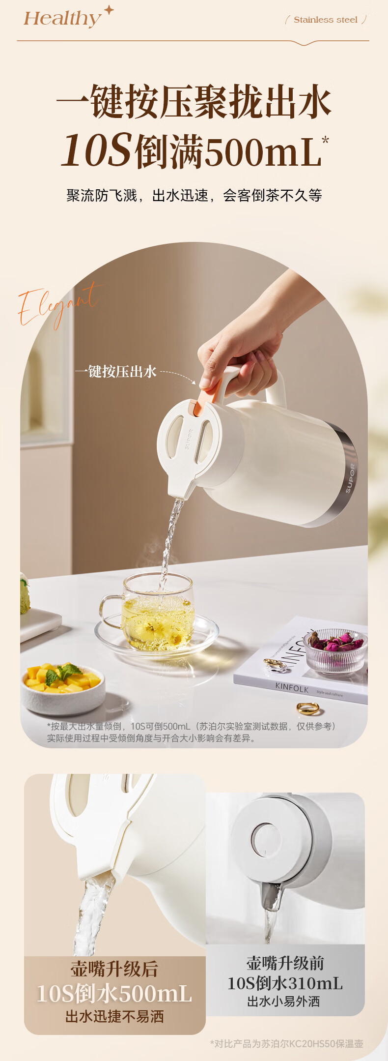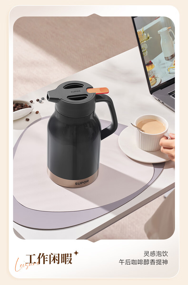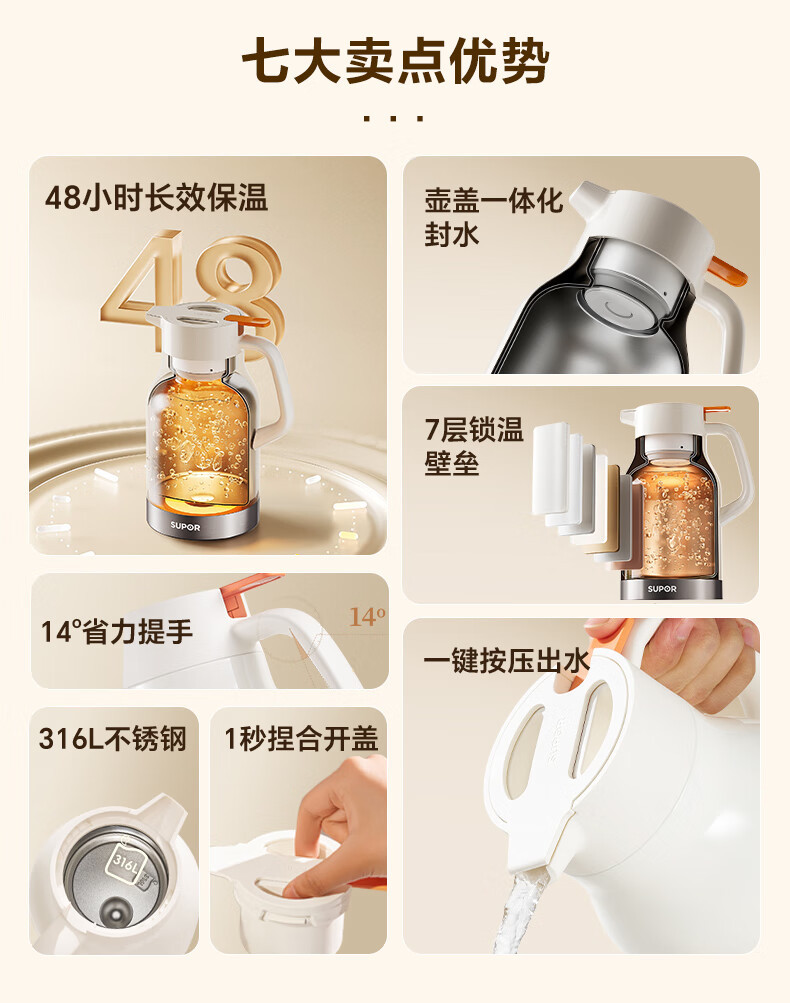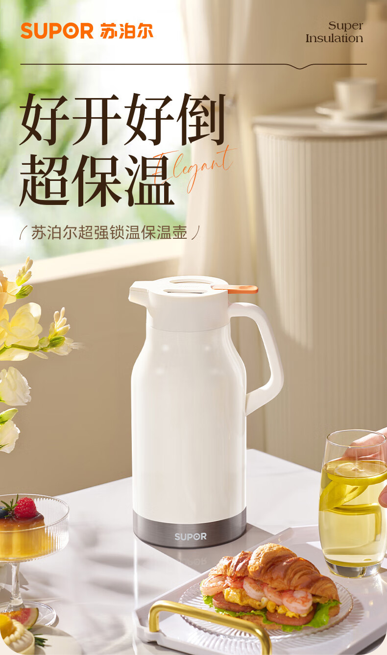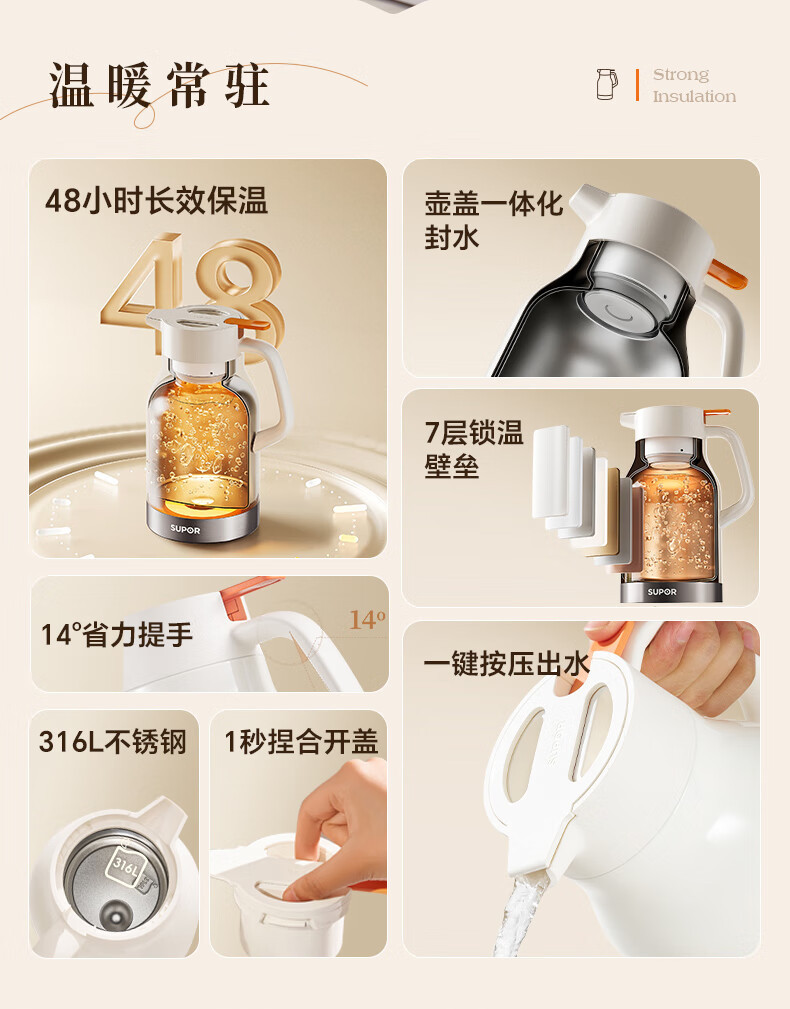 锁温保温壶大容量水壶热水瓶办公家用1.5L奶油白KCV15BF50