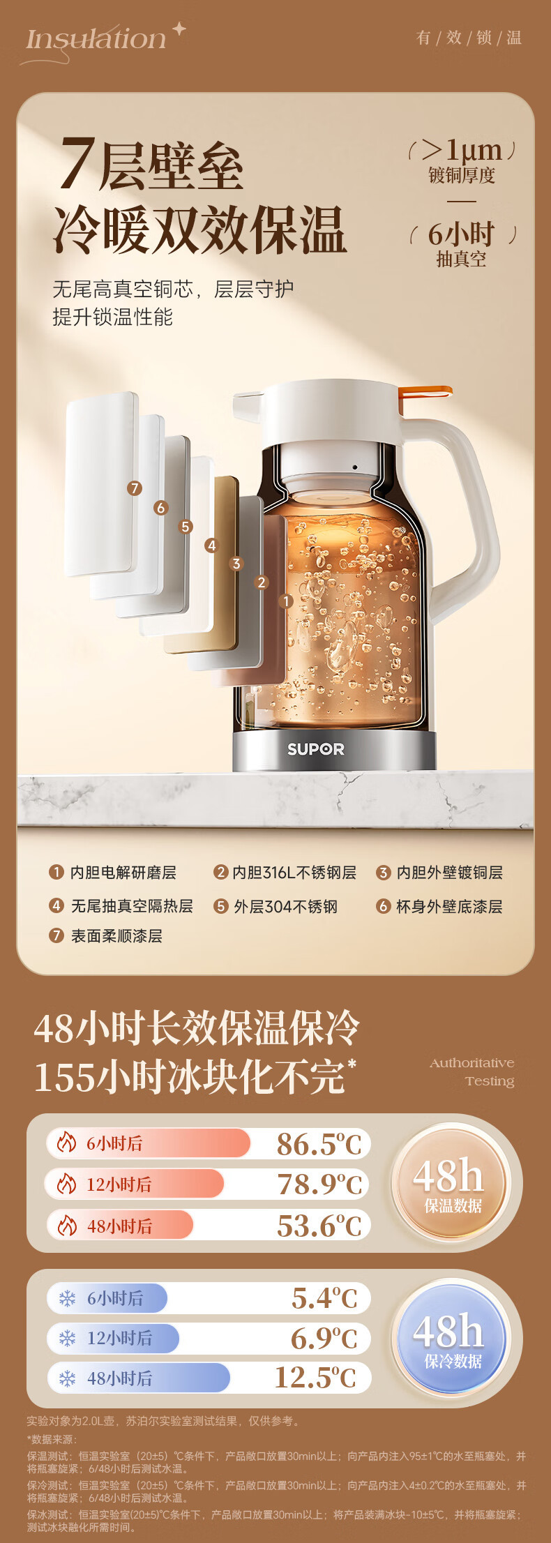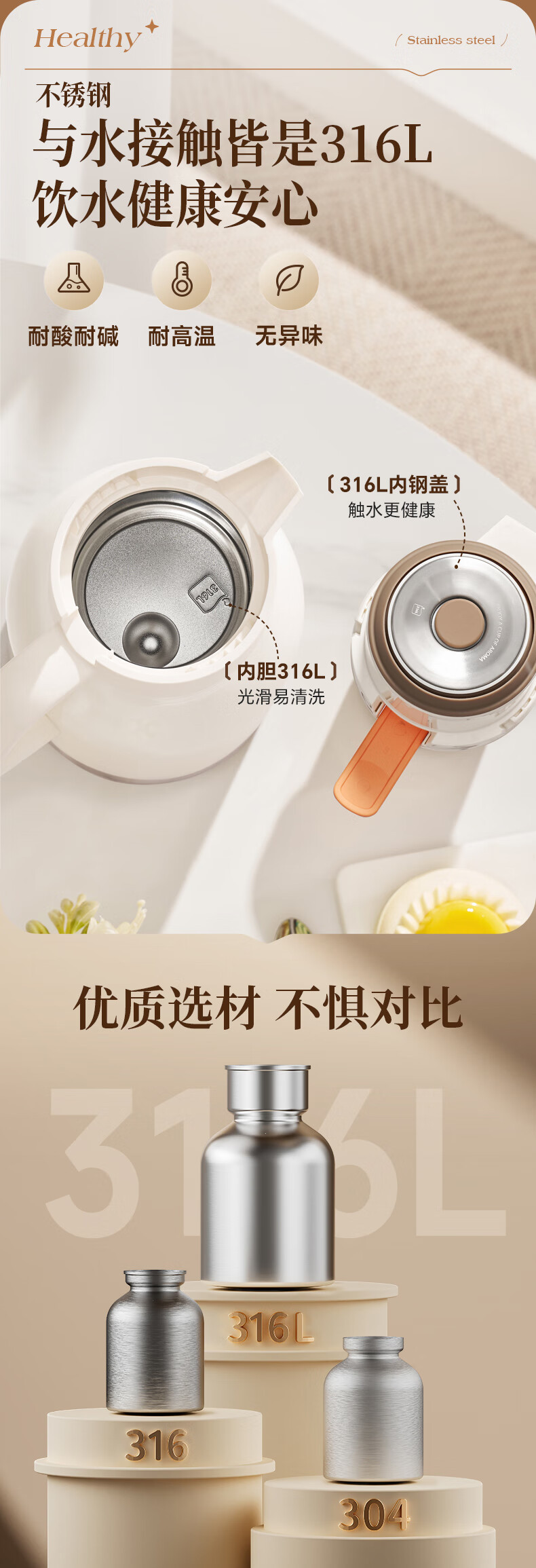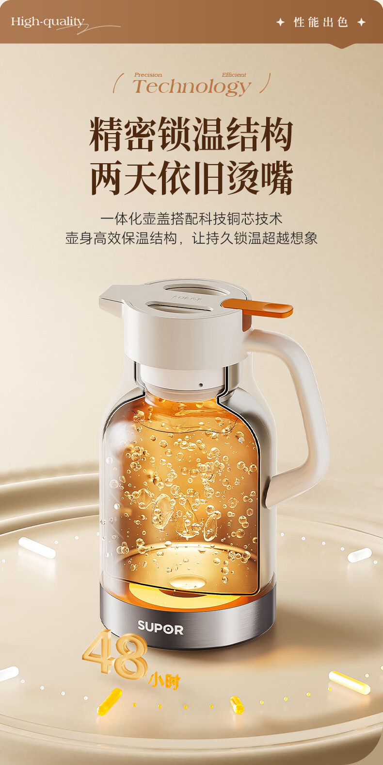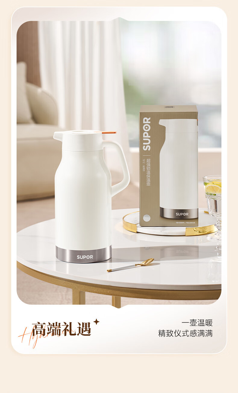 锁温保温壶大容量水壶热水瓶办公家用1.5L奶油白KCV15BF50