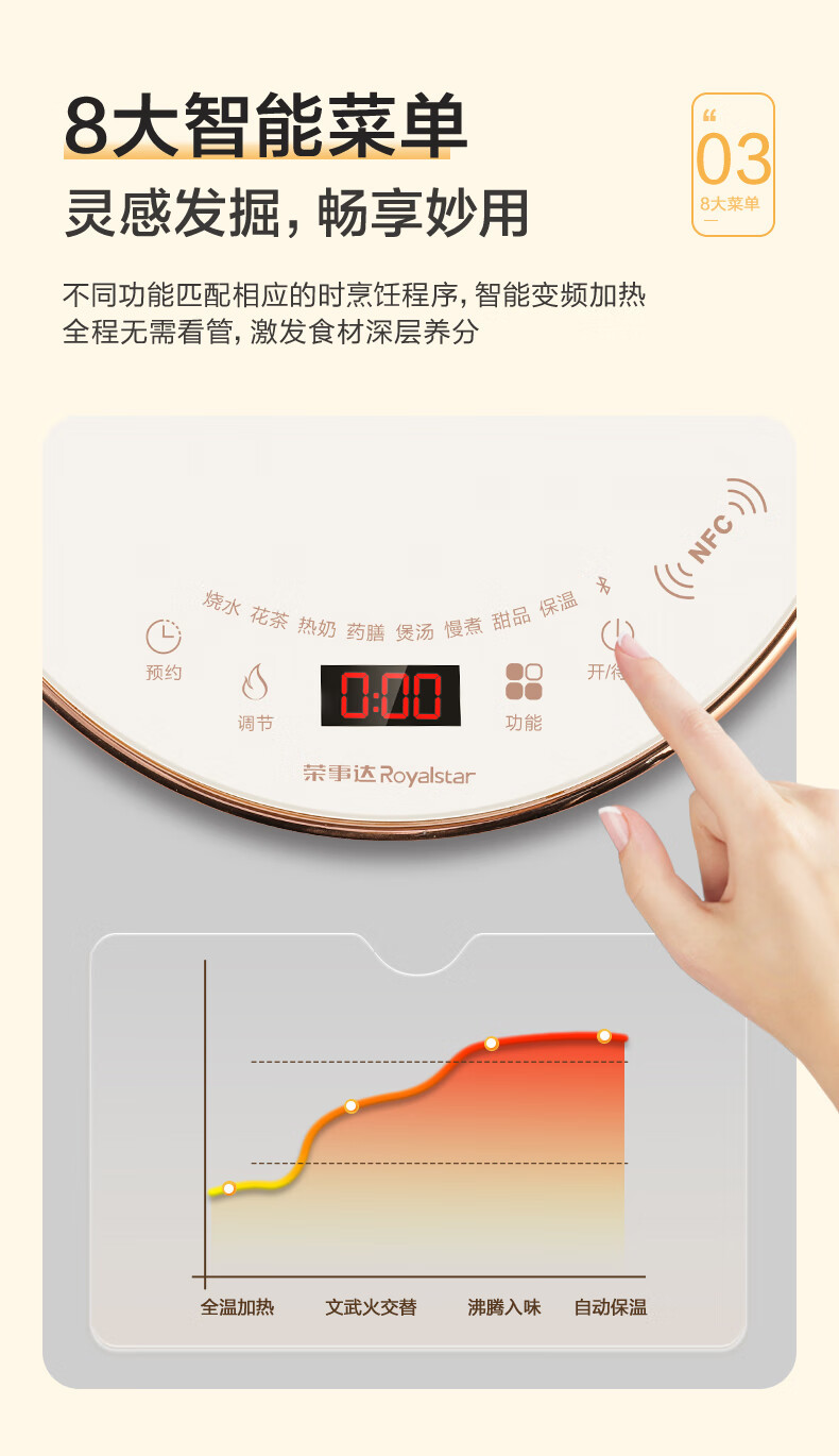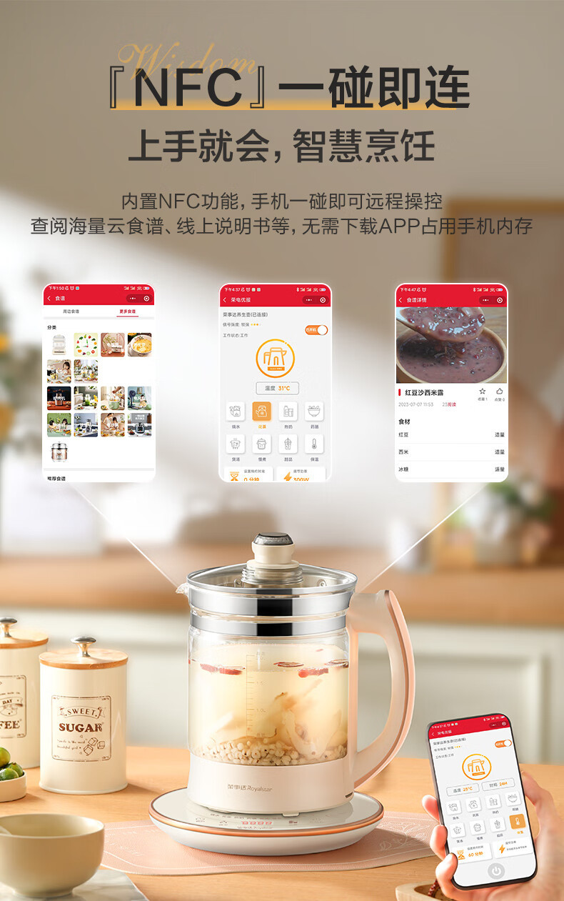 柔音加热破壁老人家用豆浆机辅食机鱼汤触屏研磨免过滤多功能