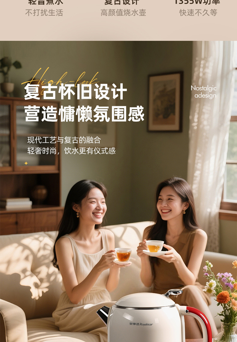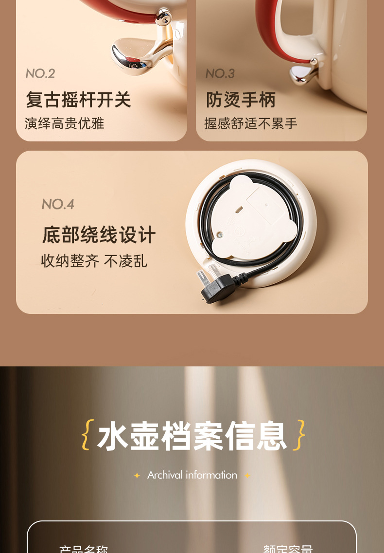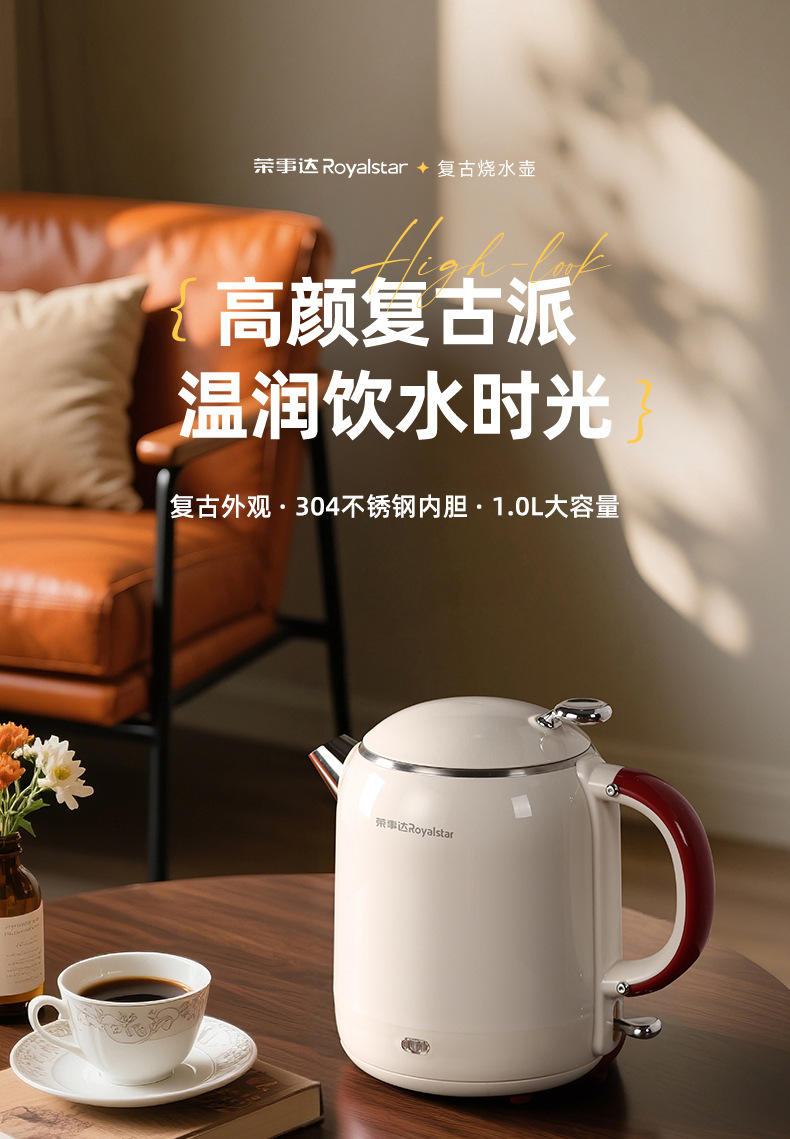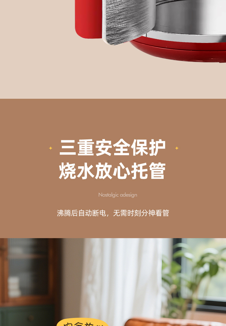 烧水壶电热水壶复古恒温壶保温壶煮水壶大容量1升家用