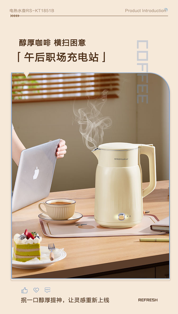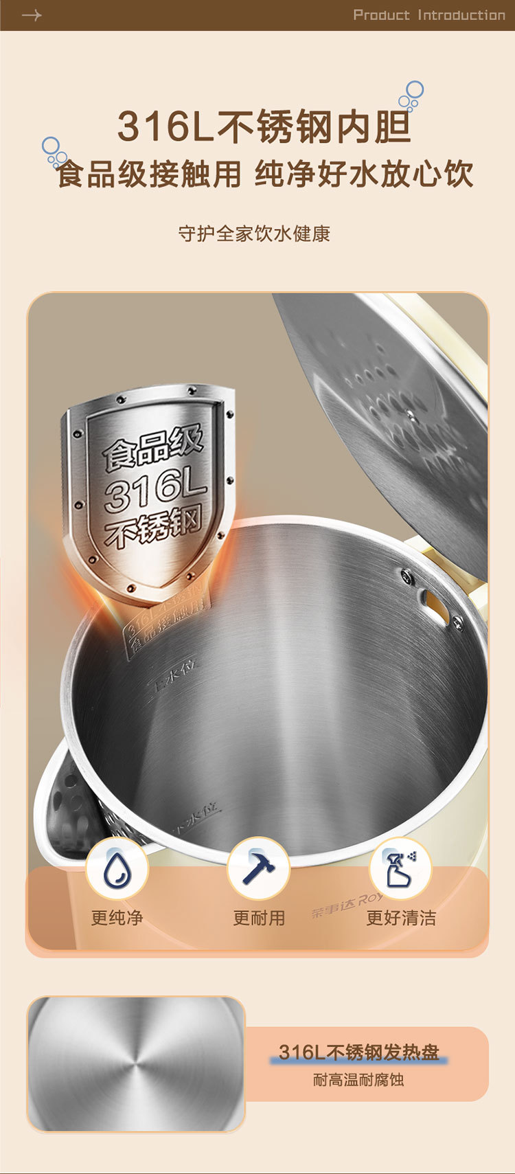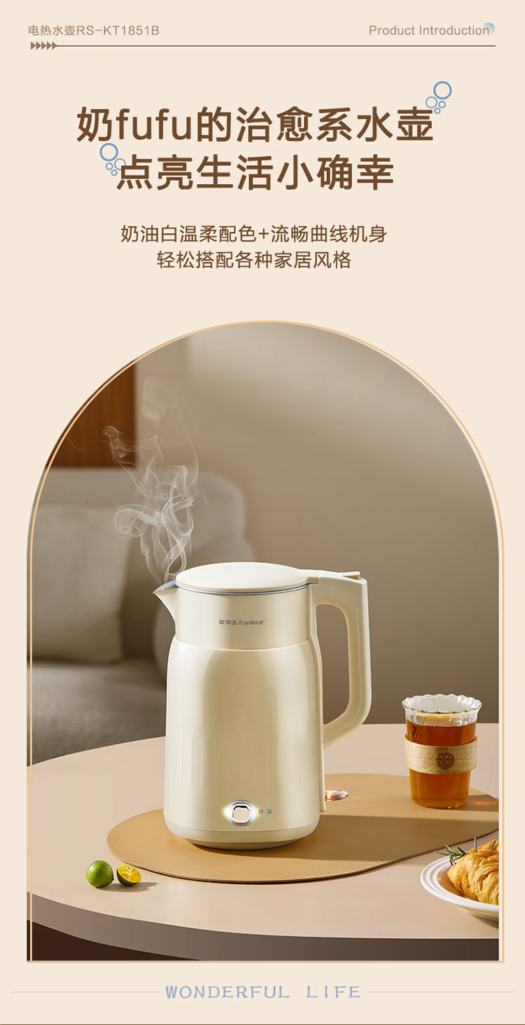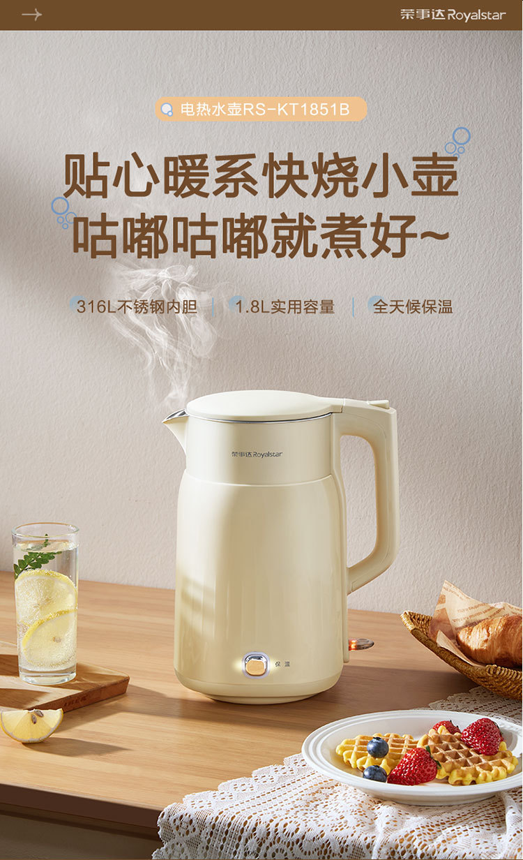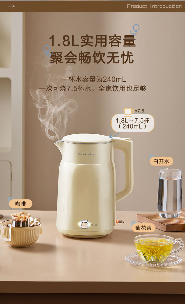 荣事达烧水壶热水壶保温壶恒温壶煮水壶1.8L大容量办公家用泡茶