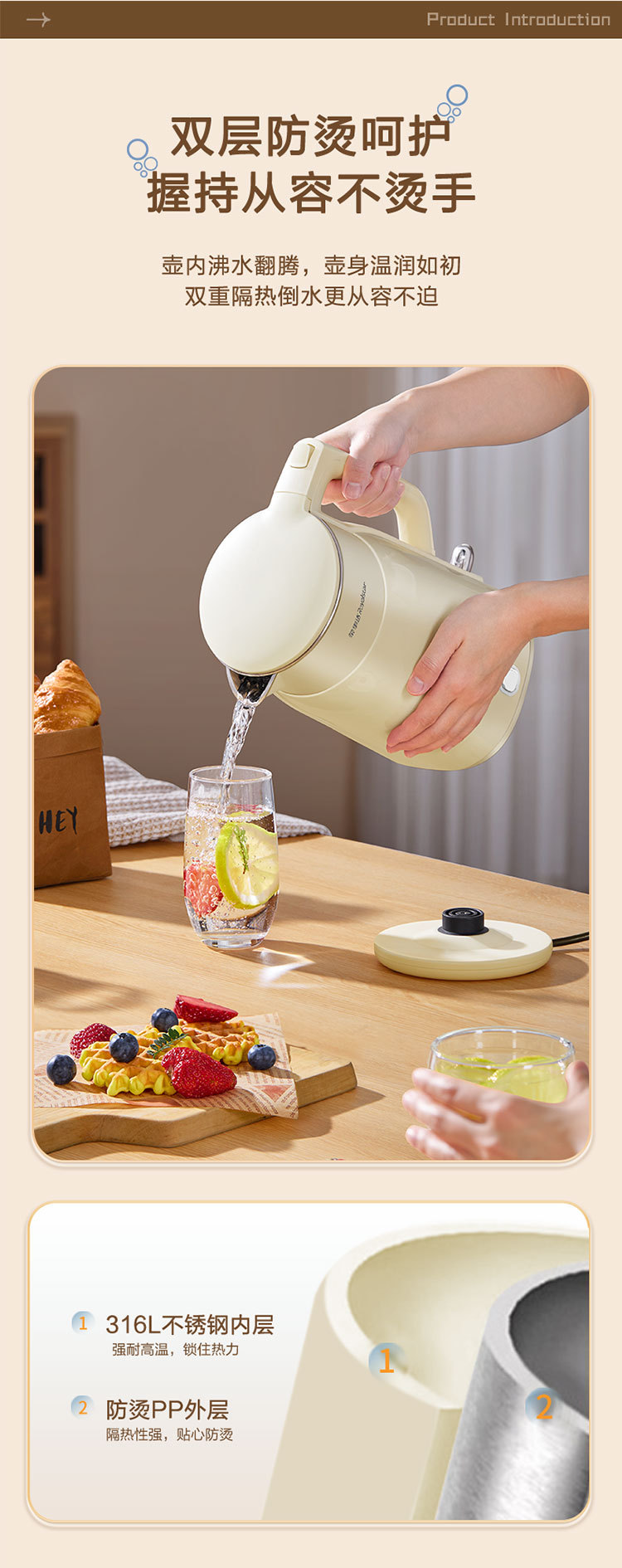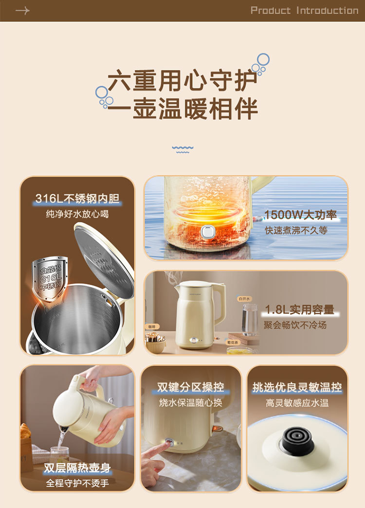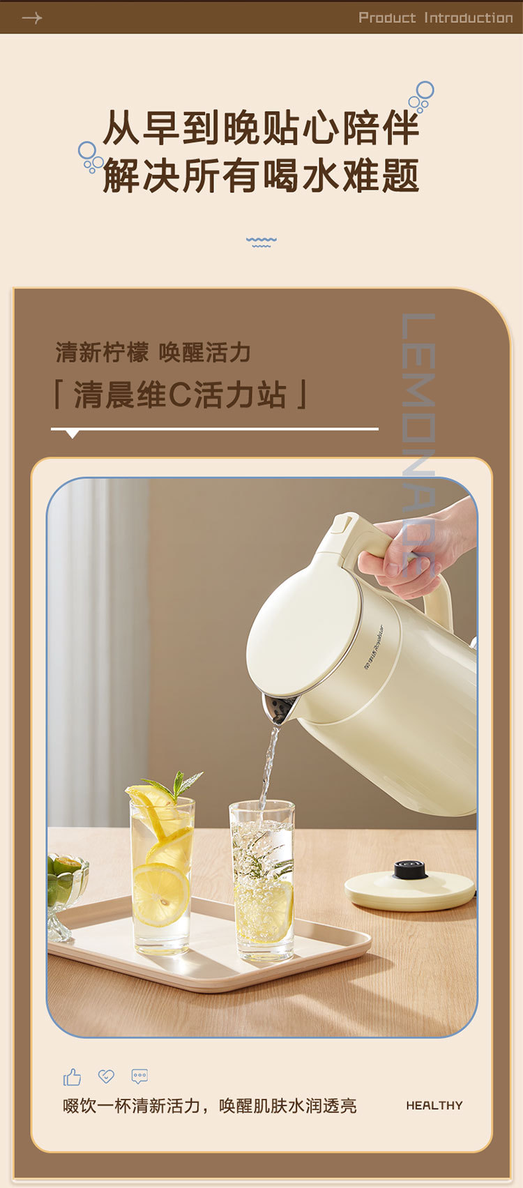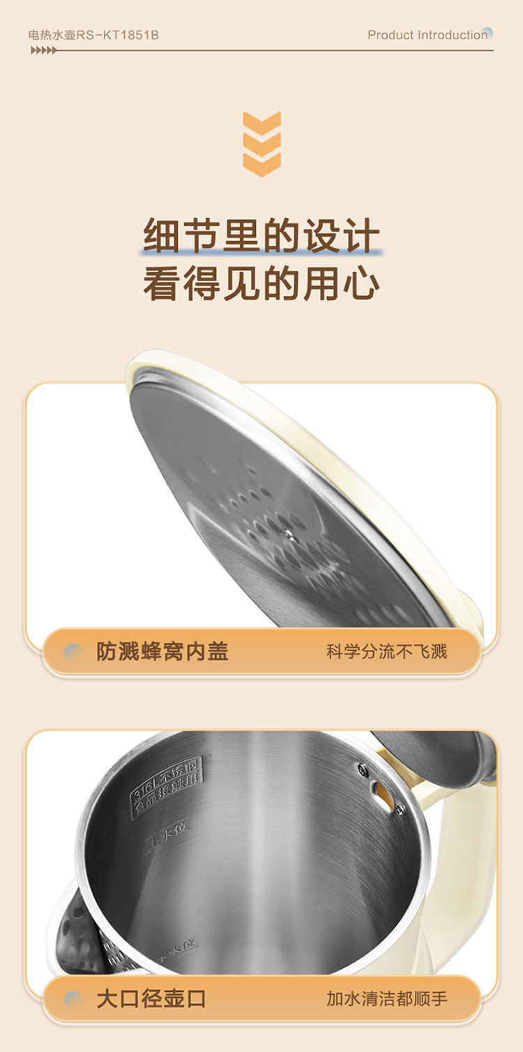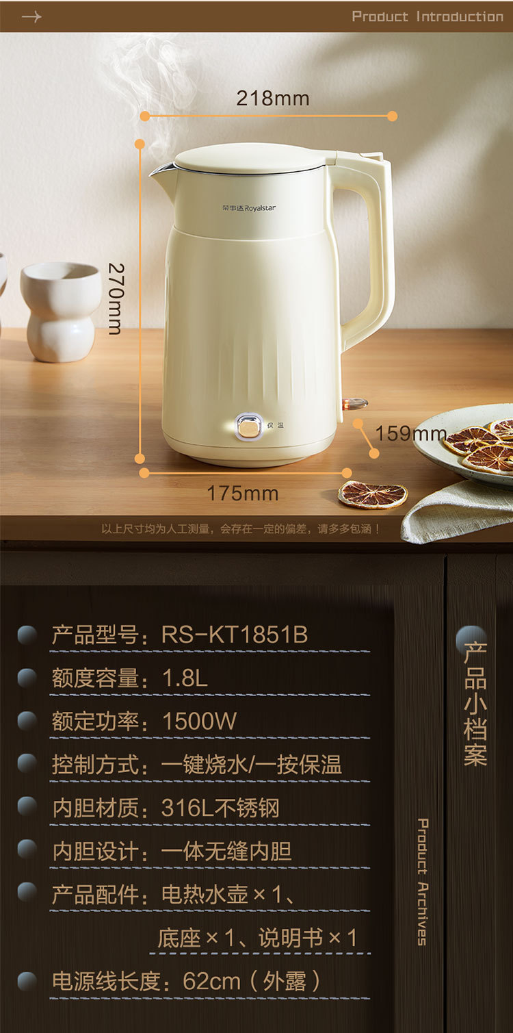 荣事达烧水壶热水壶保温壶恒温壶煮水壶1.8L大容量办公家用泡茶
