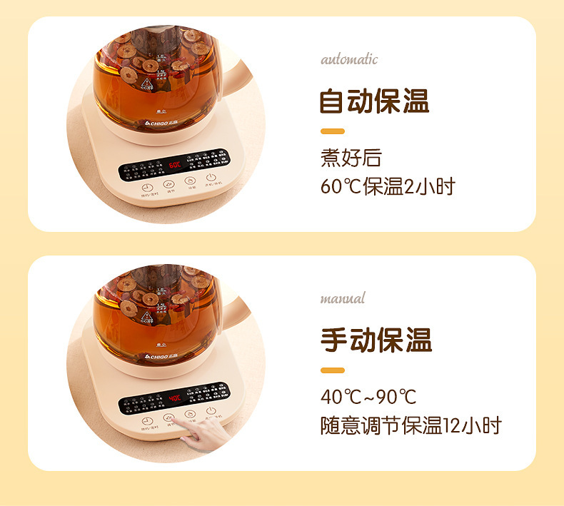 全自动电热水壶智能煮茶器恒温壶志高分体养生壶泡茶壶煎药壶
