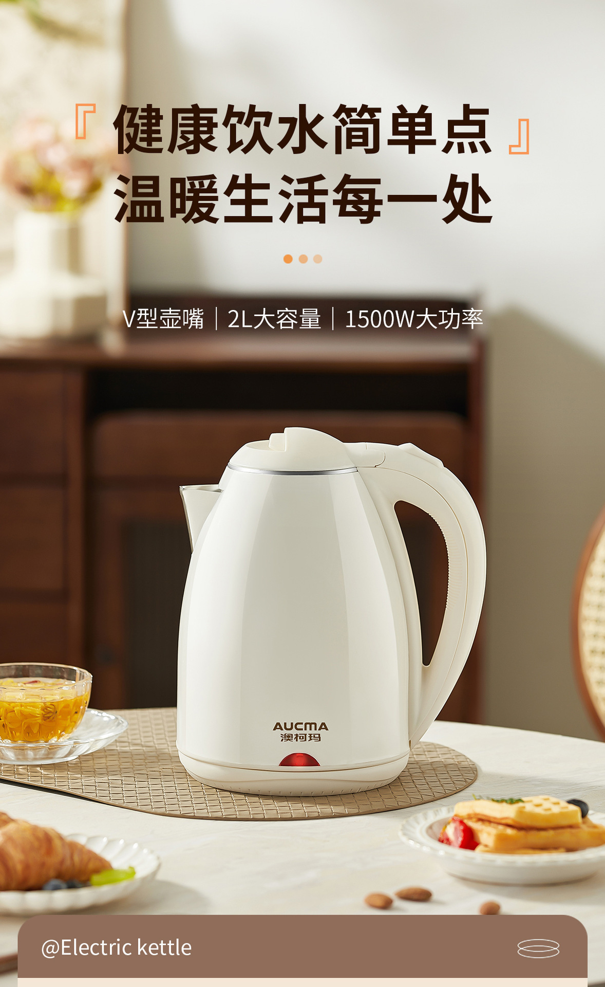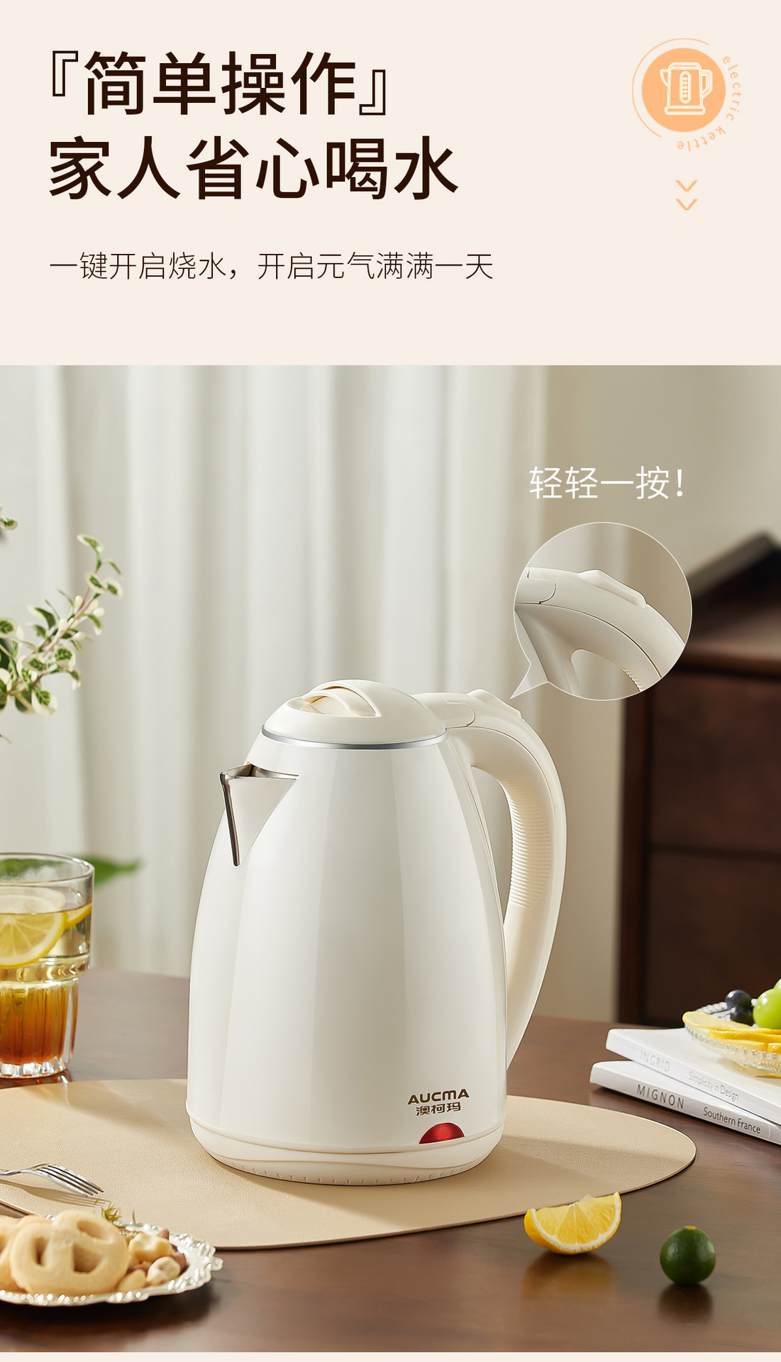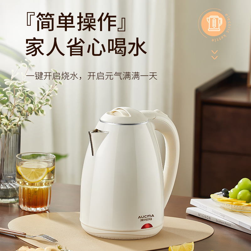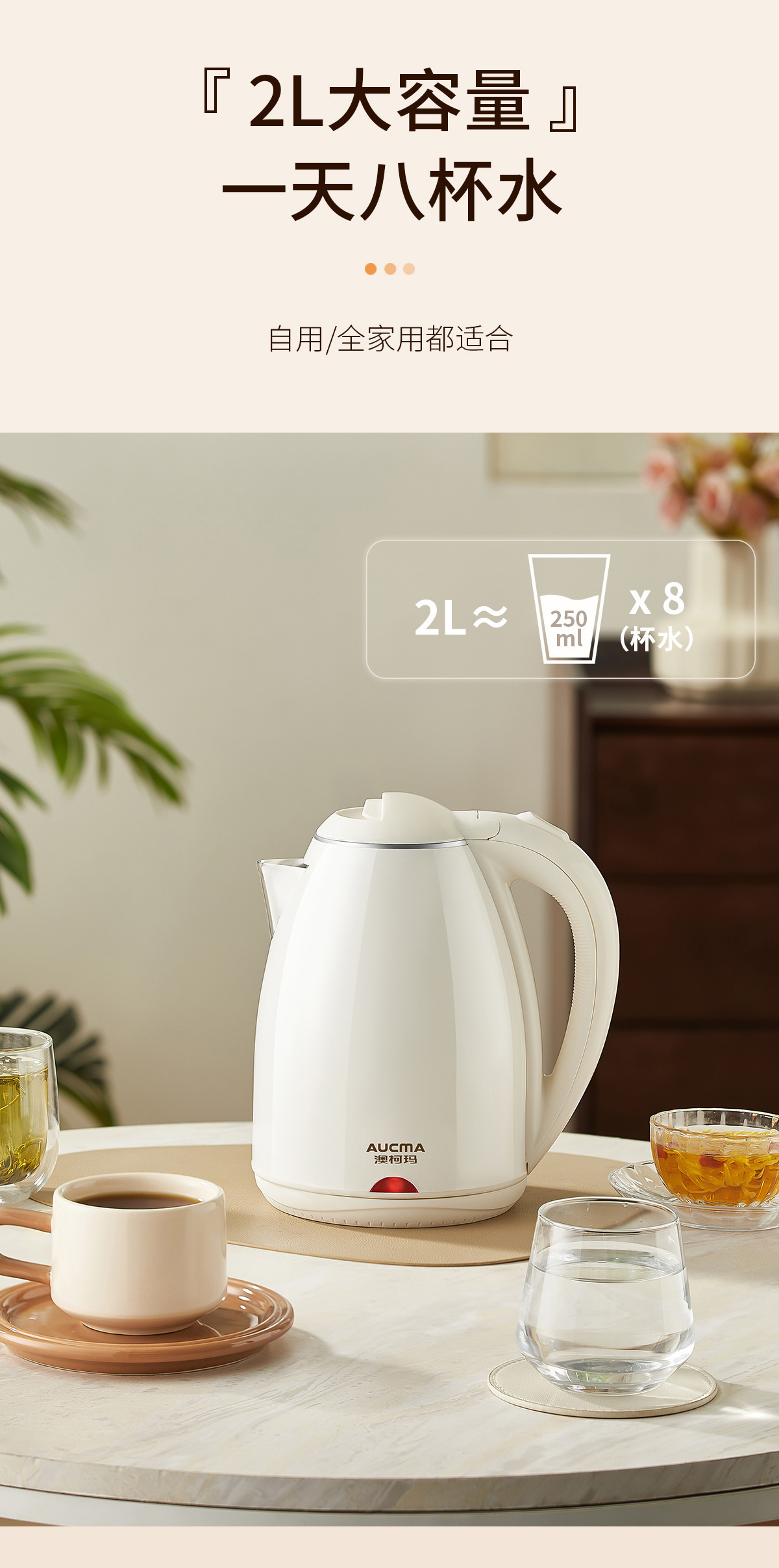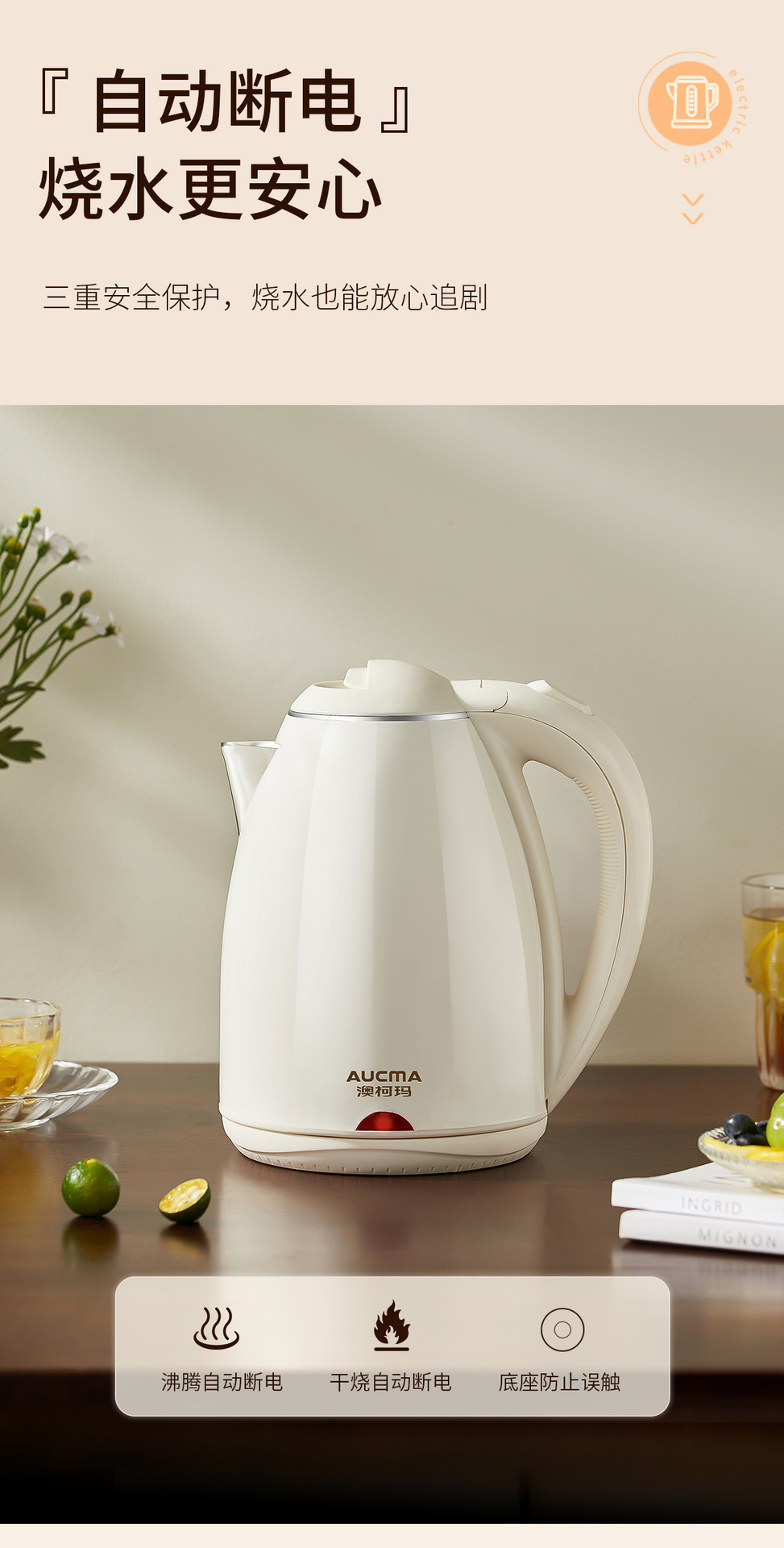 AUCMA澳柯玛家用电热水壶2L全自动烧水壶双层防烫隔热开水壶