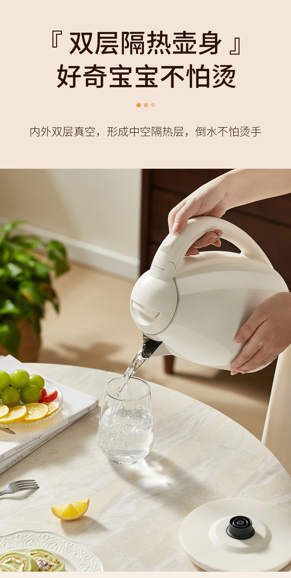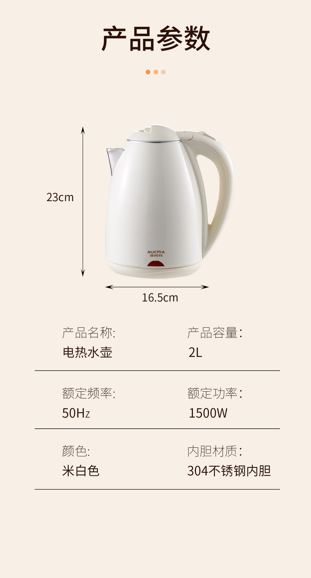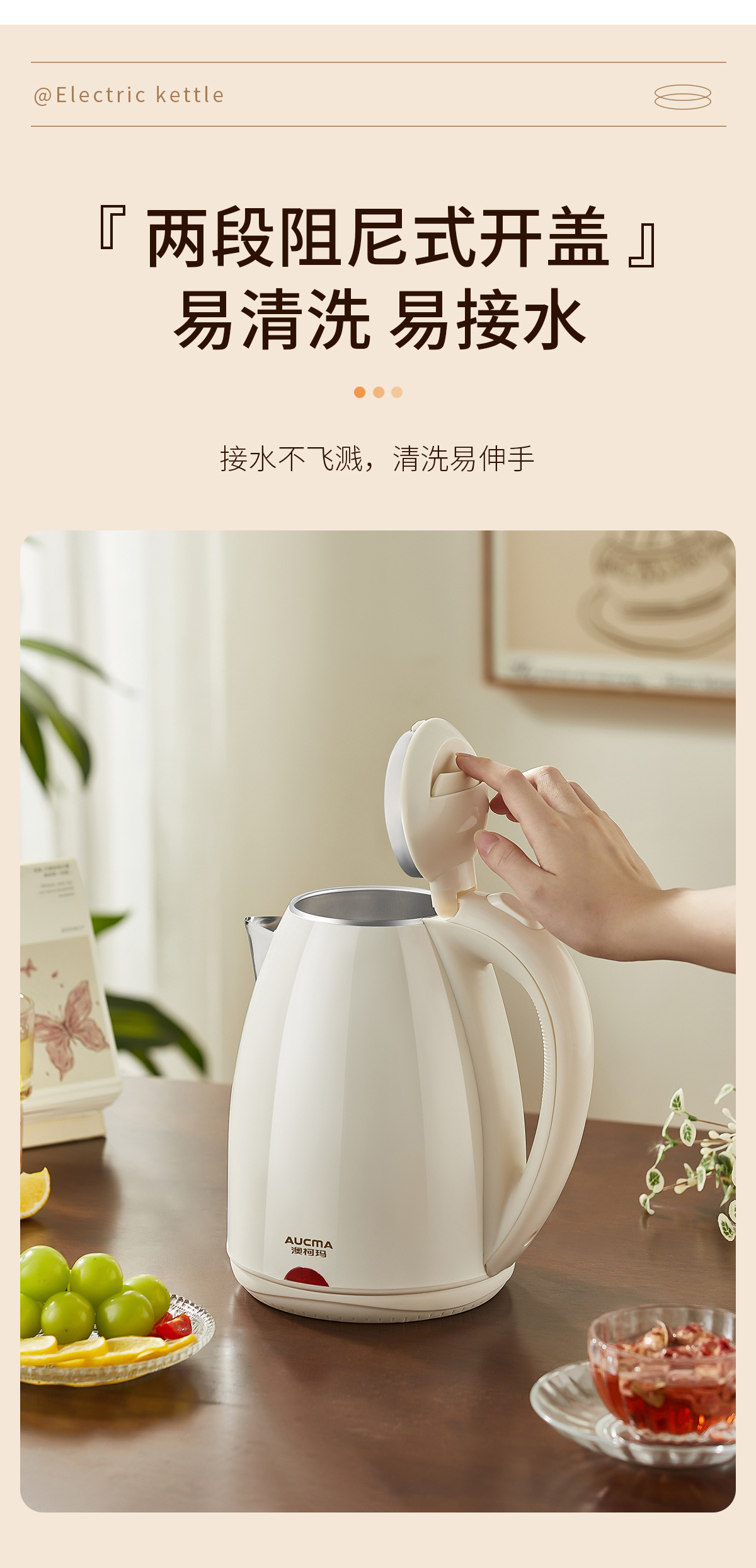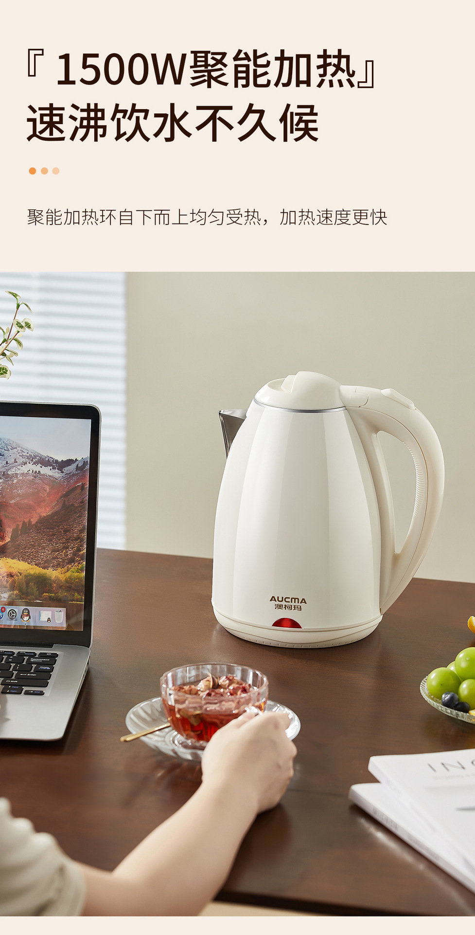 AUCMA澳柯玛家用电热水壶2L全自动烧水壶双层防烫隔热开水壶