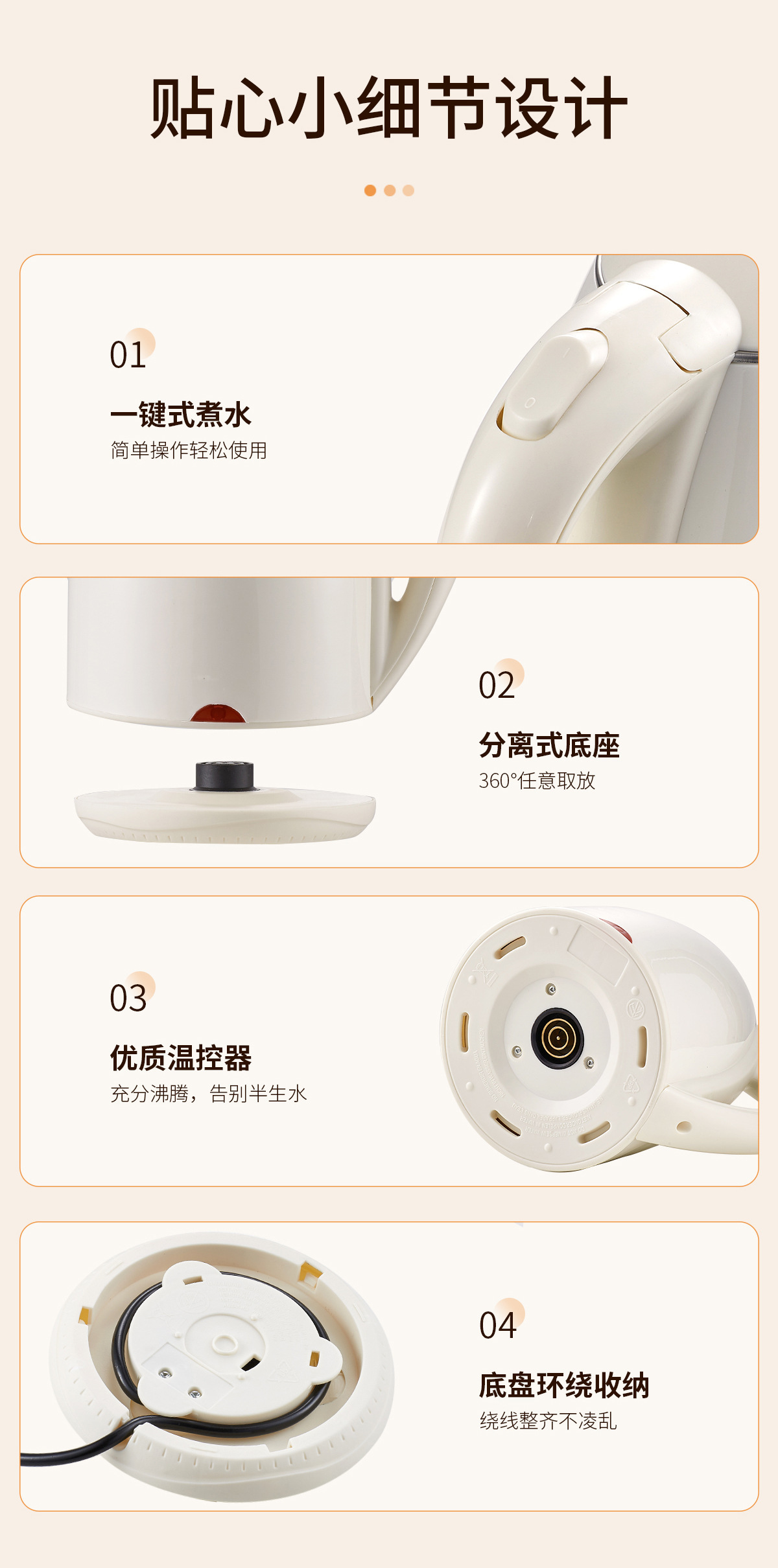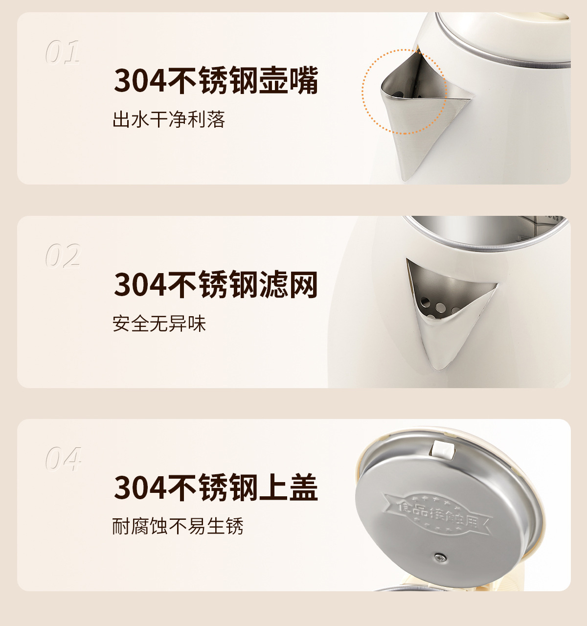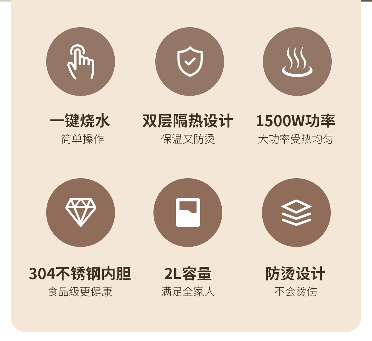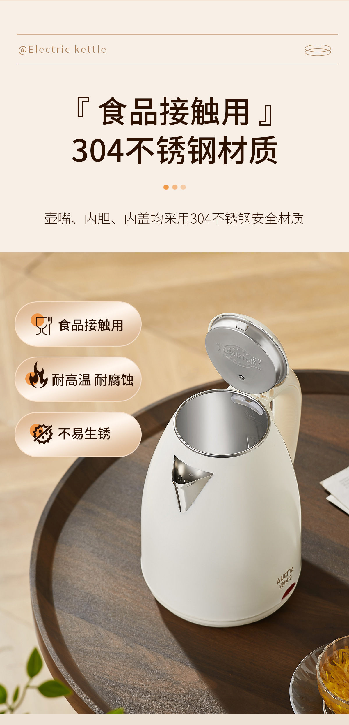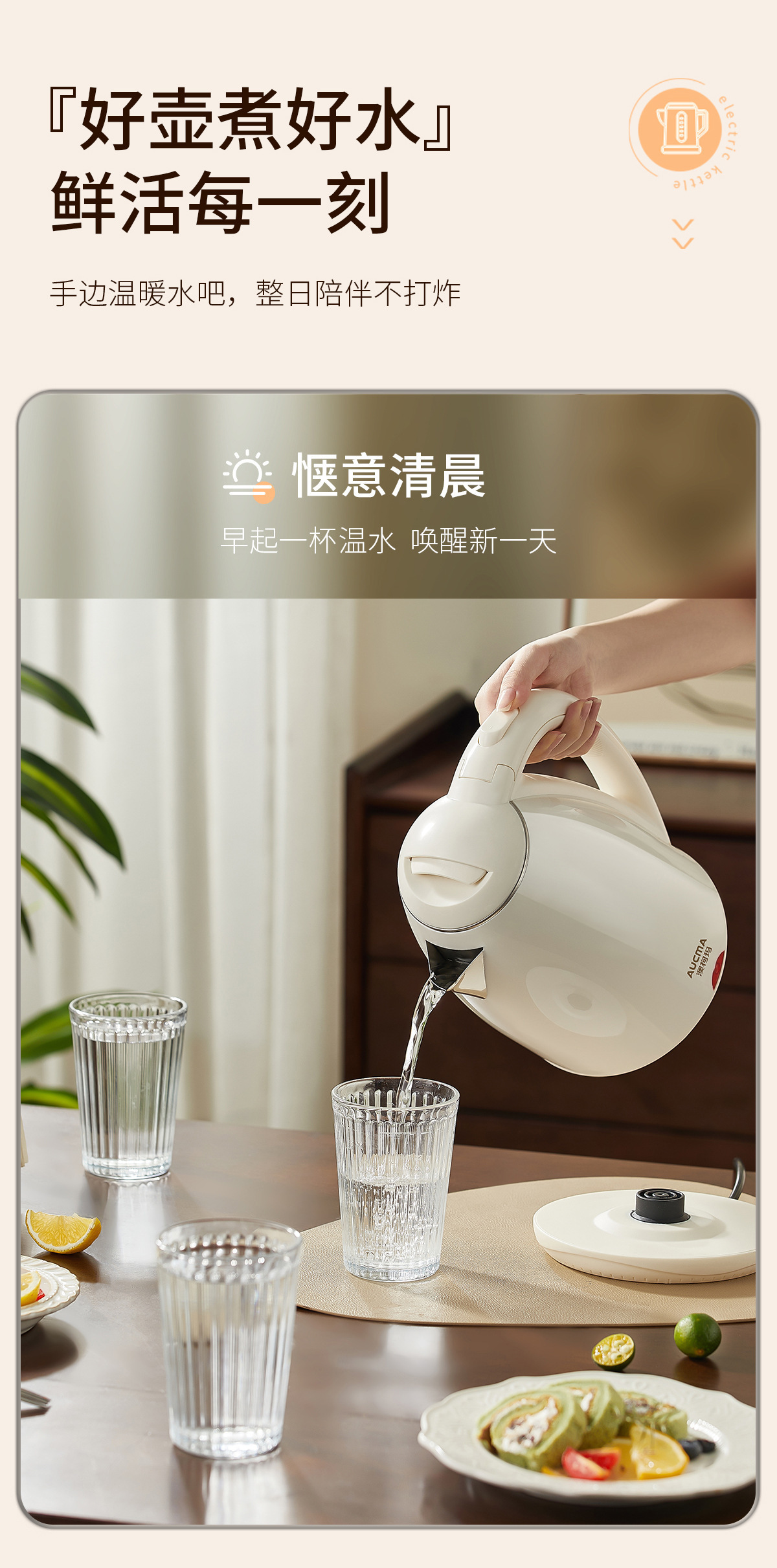 AUCMA澳柯玛家用电热水壶2L全自动烧水壶双层防烫隔热开水壶