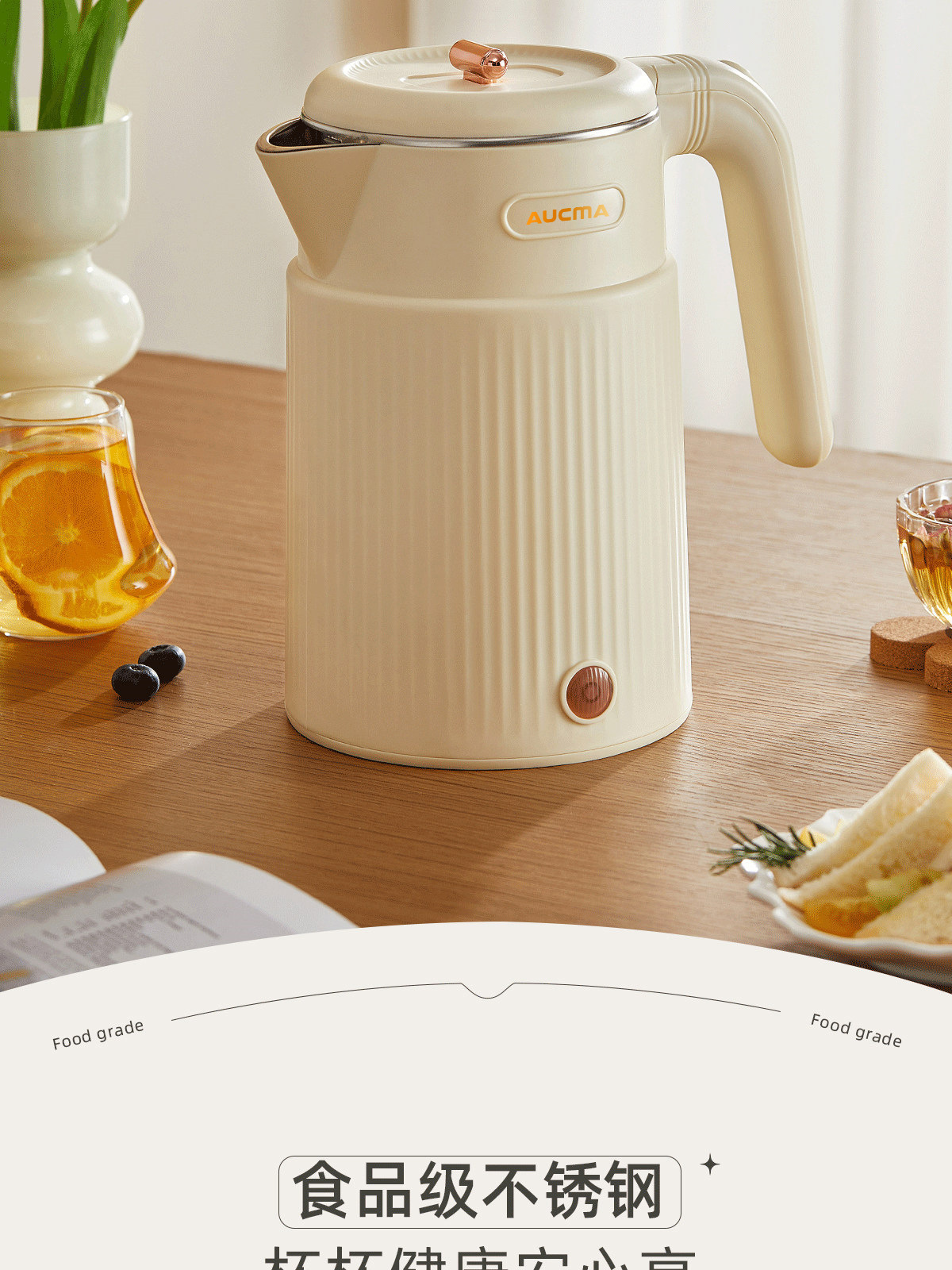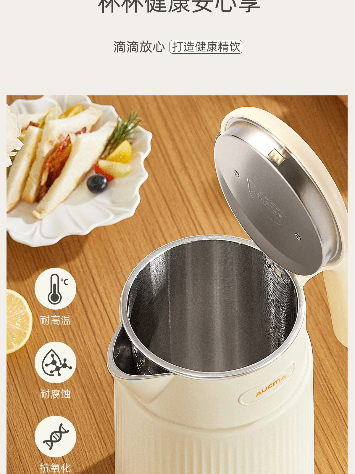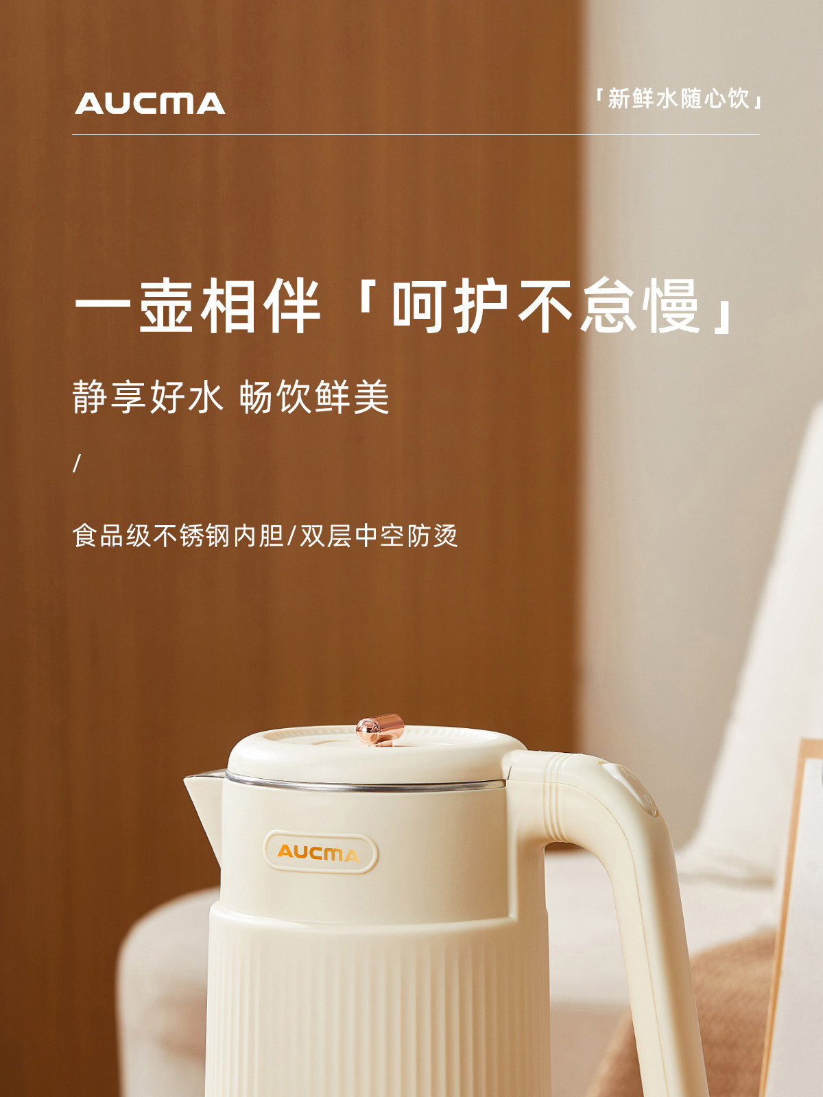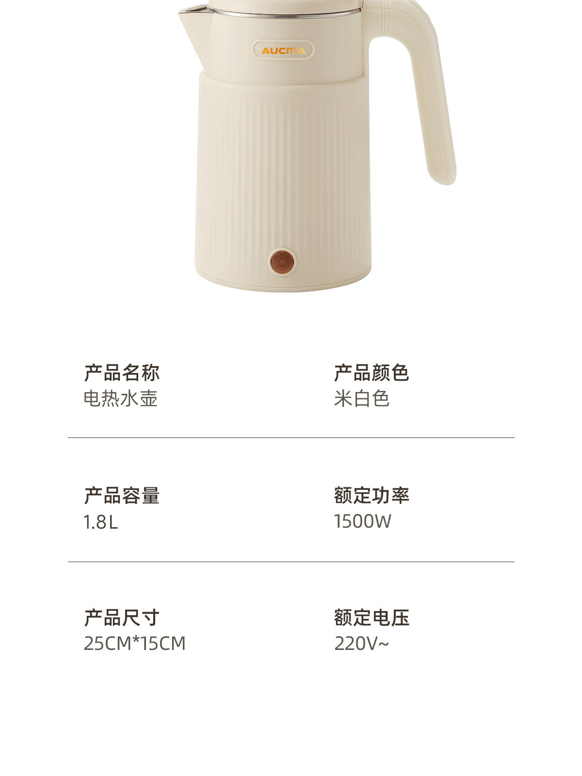 AUCMA澳柯玛1.8L烧水壶双层防烫大容量全自动保温电热水壶