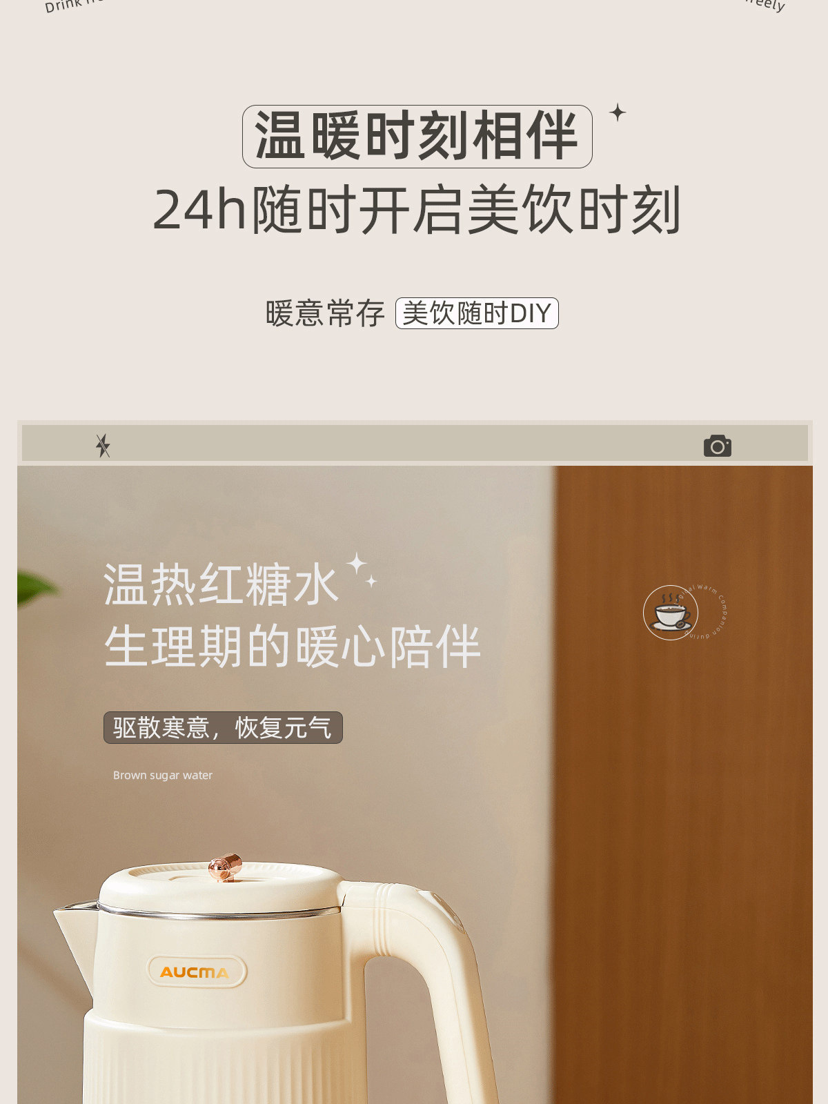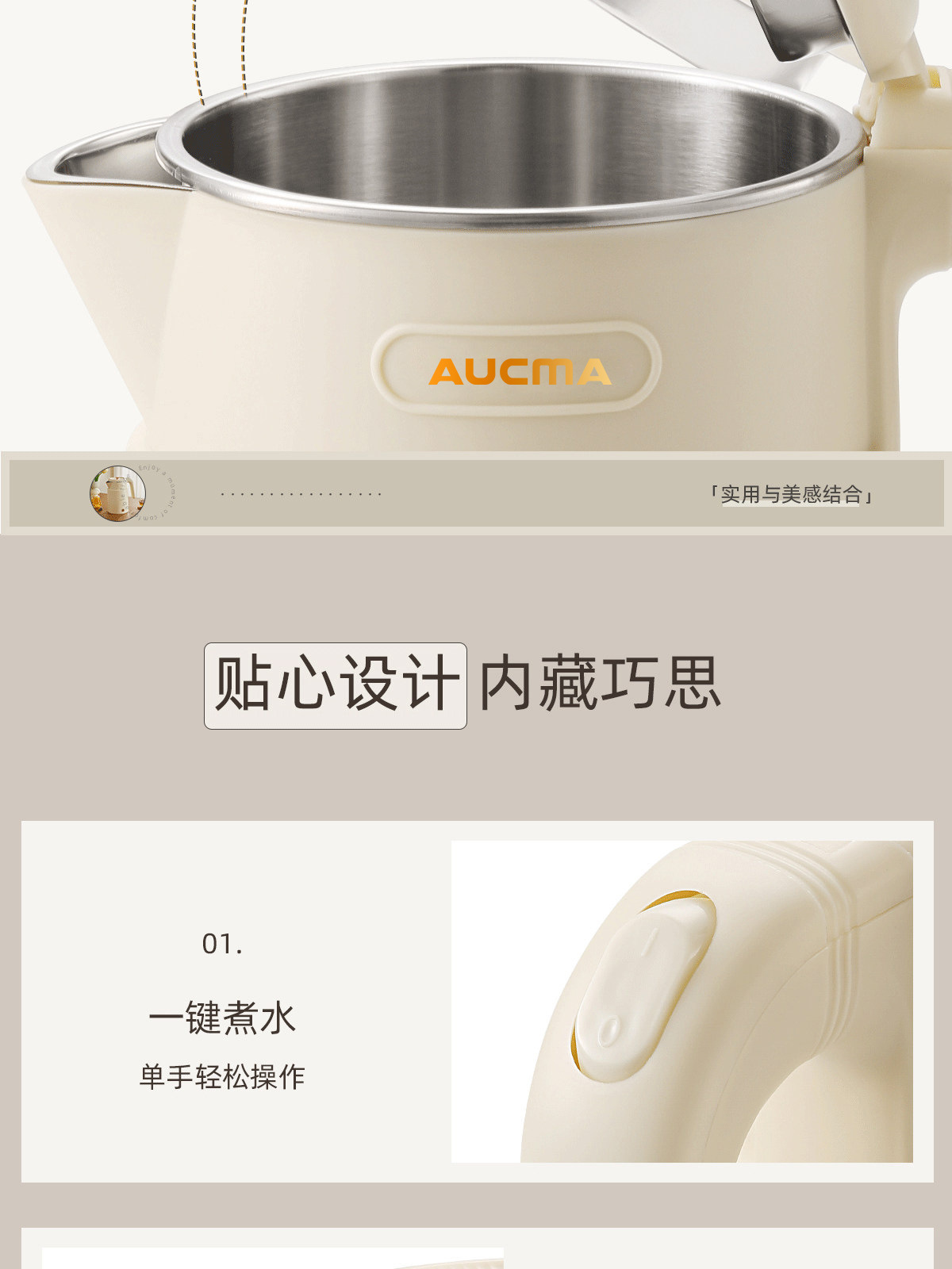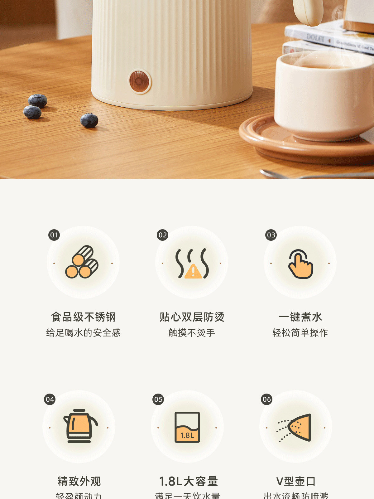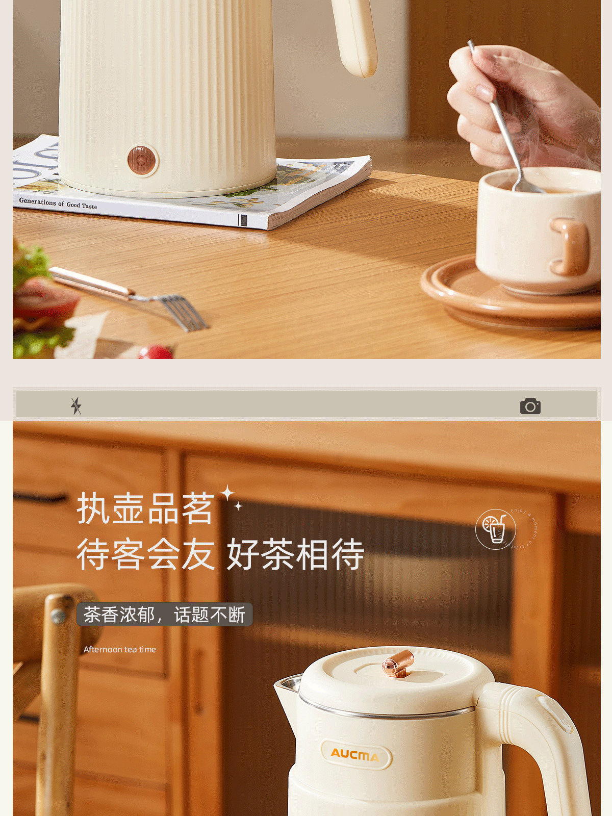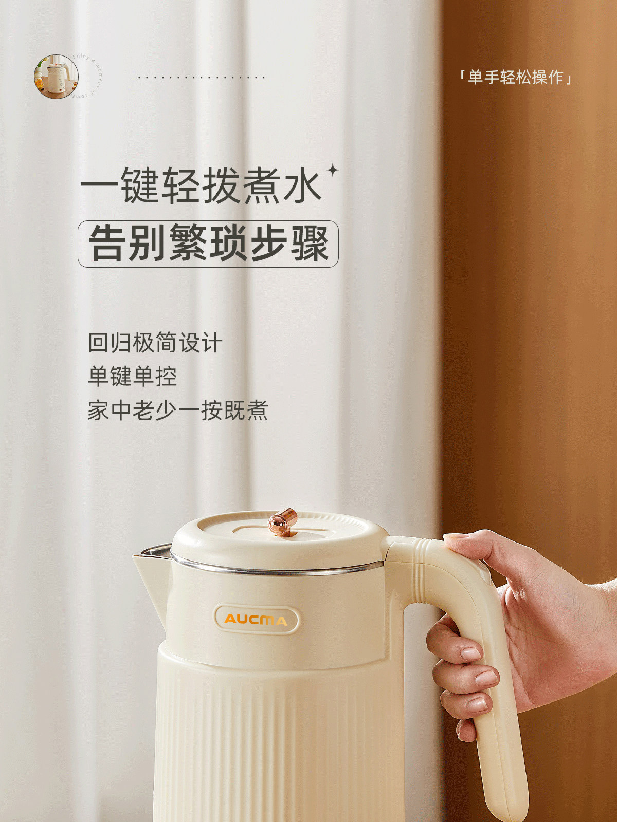 AUCMA澳柯玛1.8L烧水壶双层防烫大容量全自动保温电热水壶