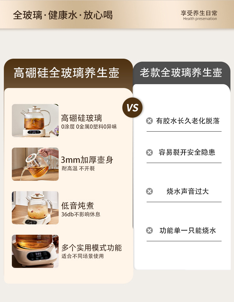 家用玻璃养生壶花茶壶多功能分体养生杯办公室小型炖煮烧水壶