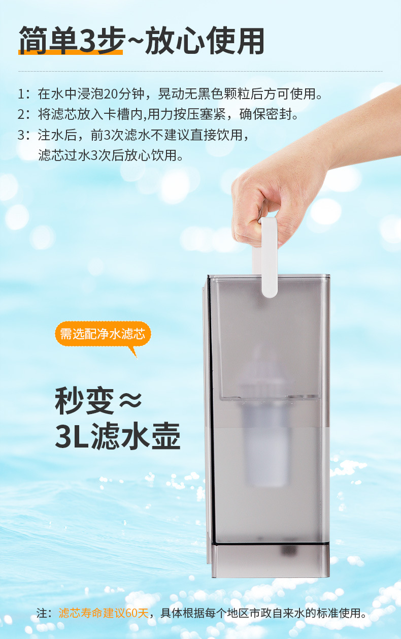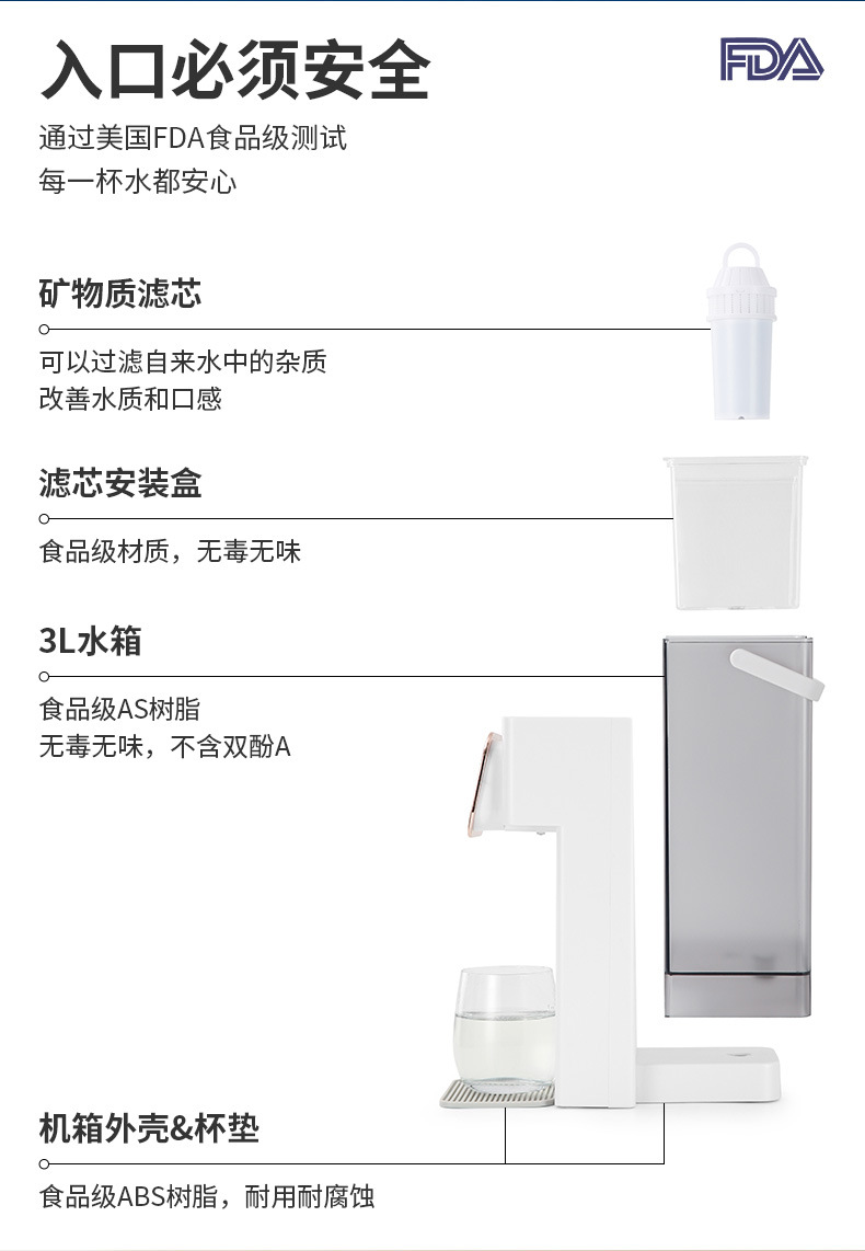 - 双显3升饮水机白色【抗菌水箱+活性炭过滤+支架】
