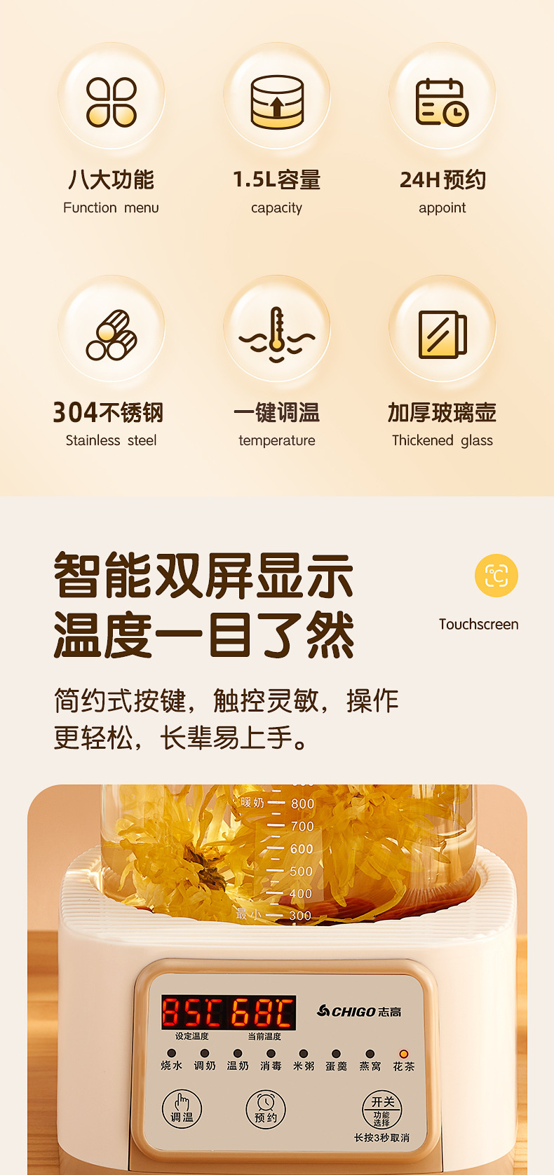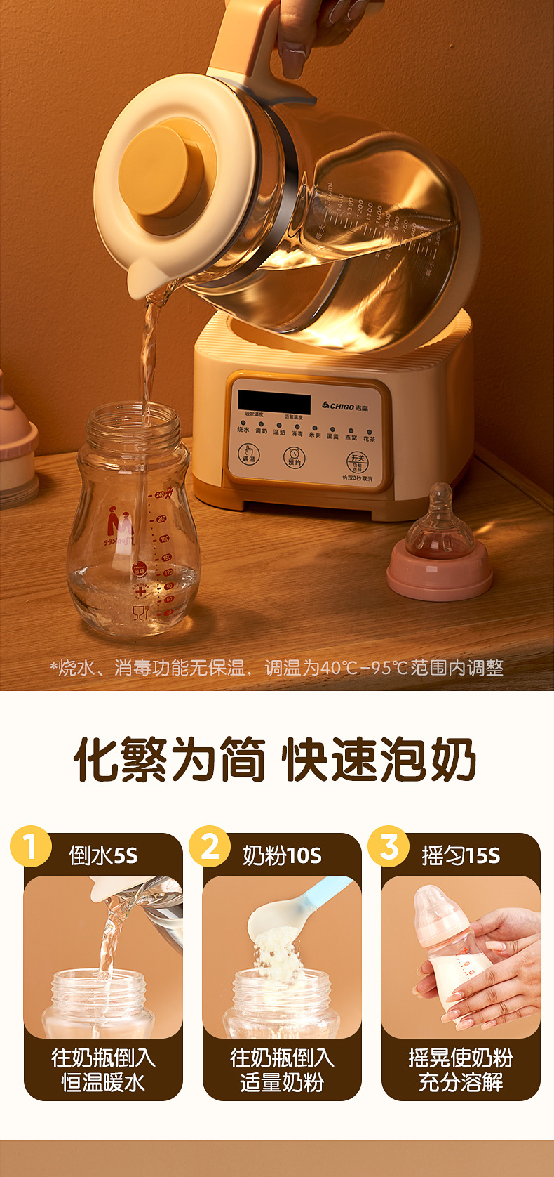 志高恒温调奶器玻璃热水壶智能保温冲奶机泡奶粉婴儿热奶温奶机