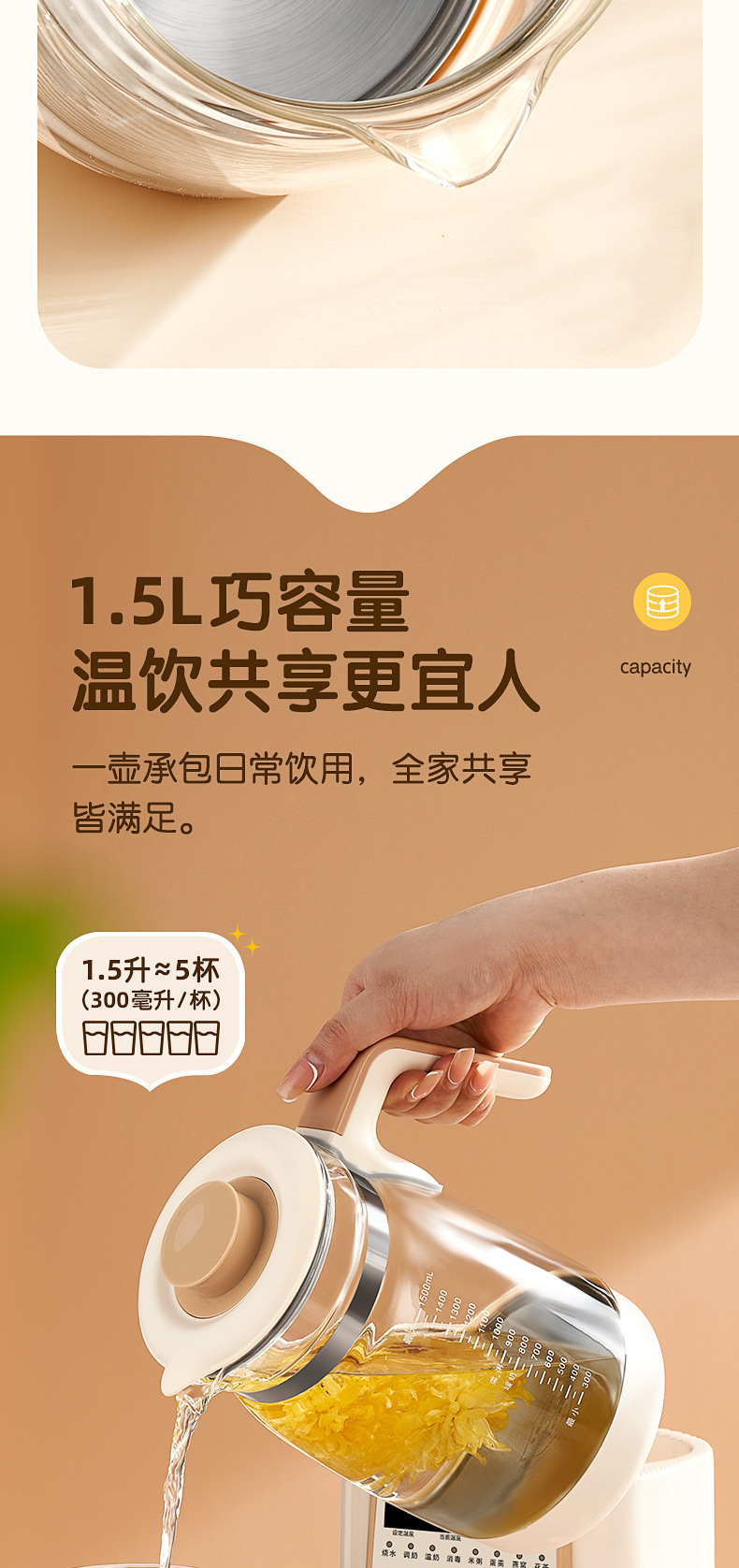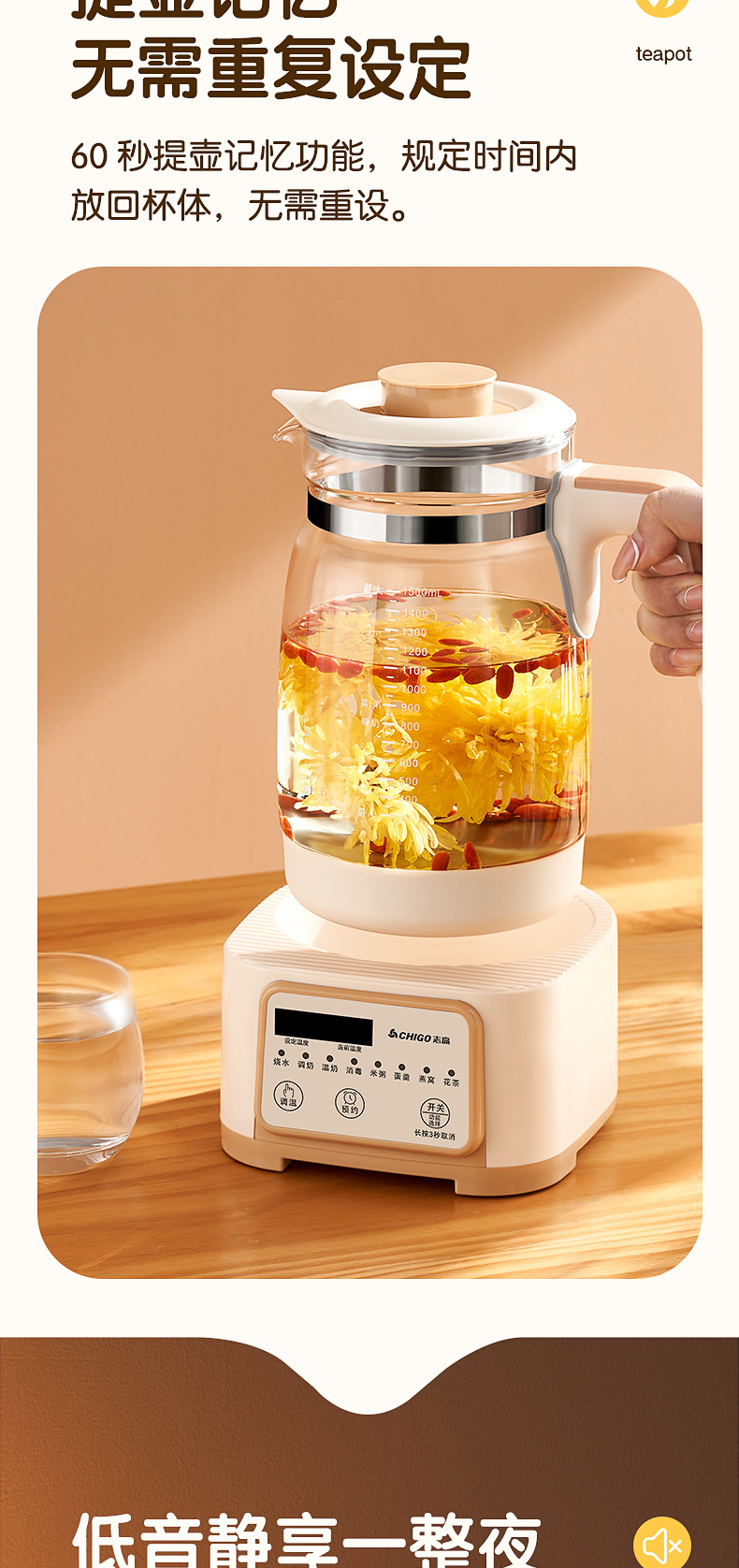 荣事达养生壶2L大容量玻璃智能办公家用电热水壶