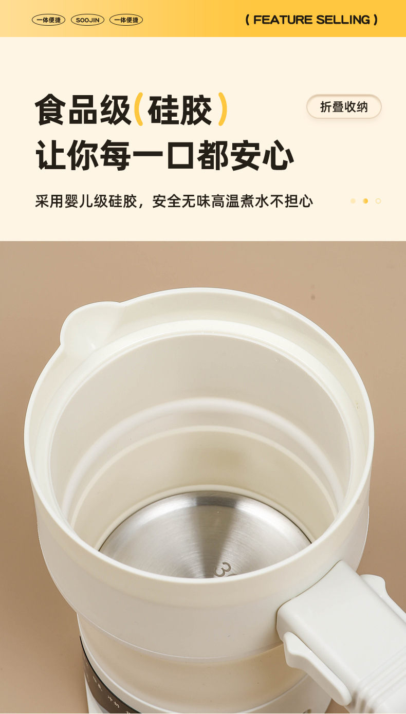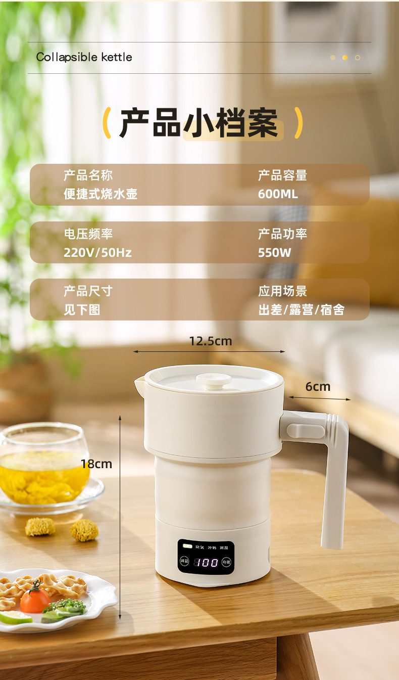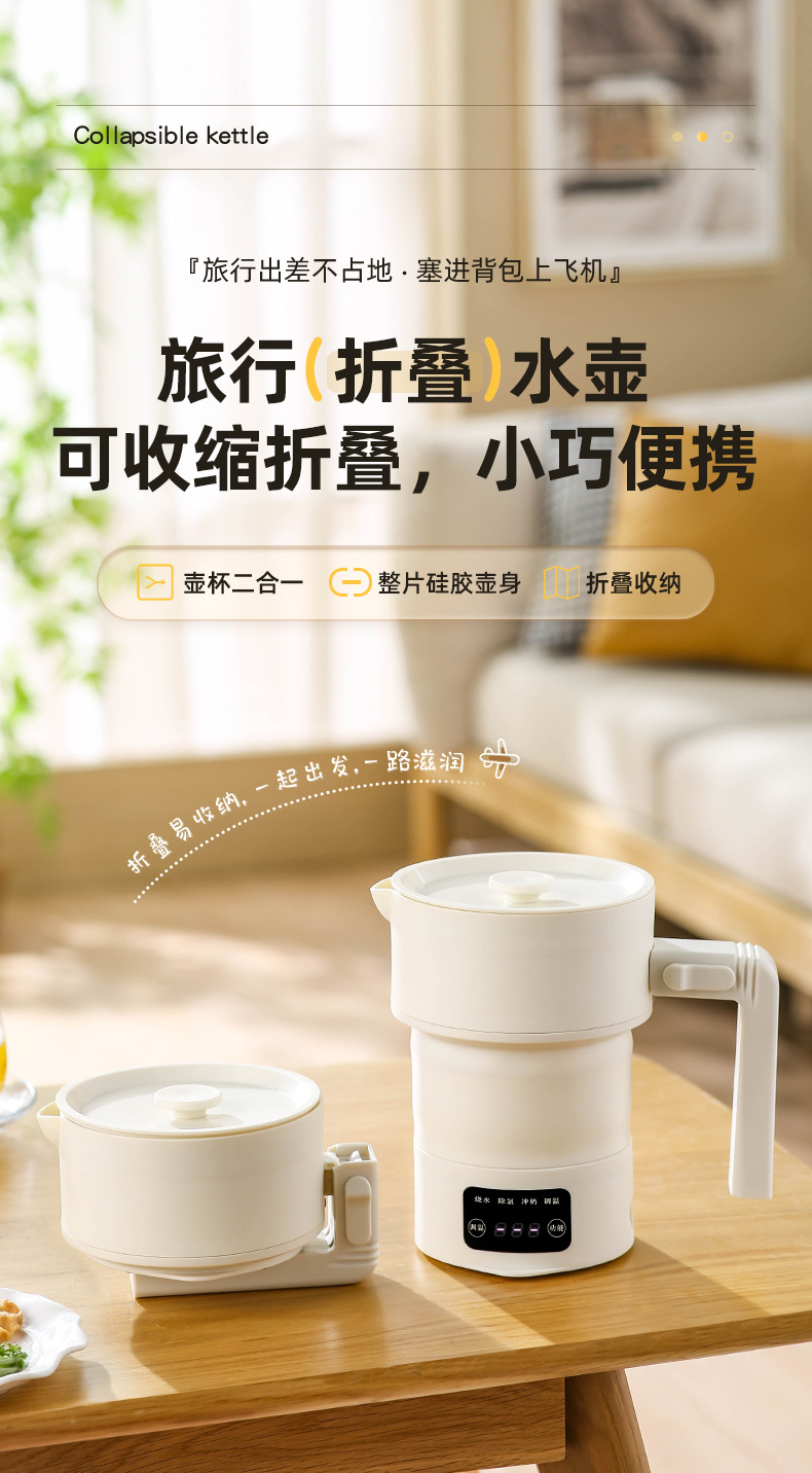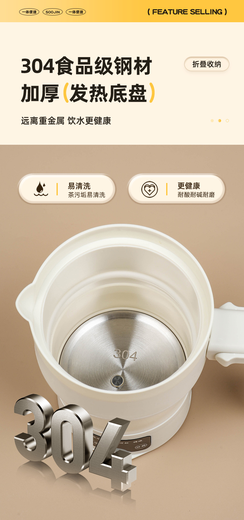 折叠水壶硅胶压缩式电热水壶旅行便携烧水壶家用不锈钢电水壶