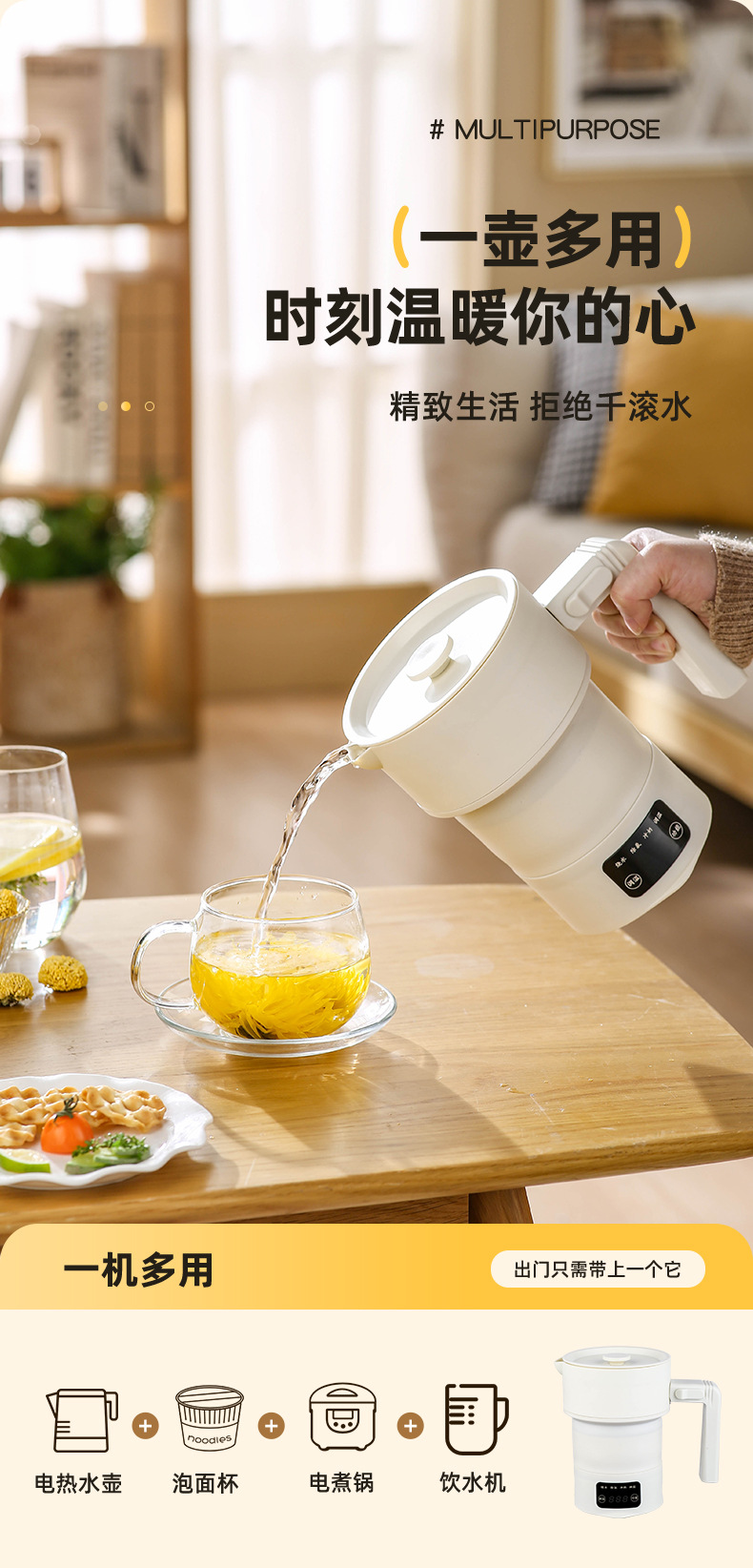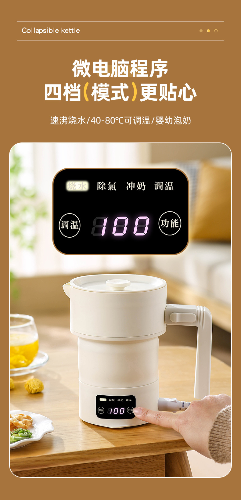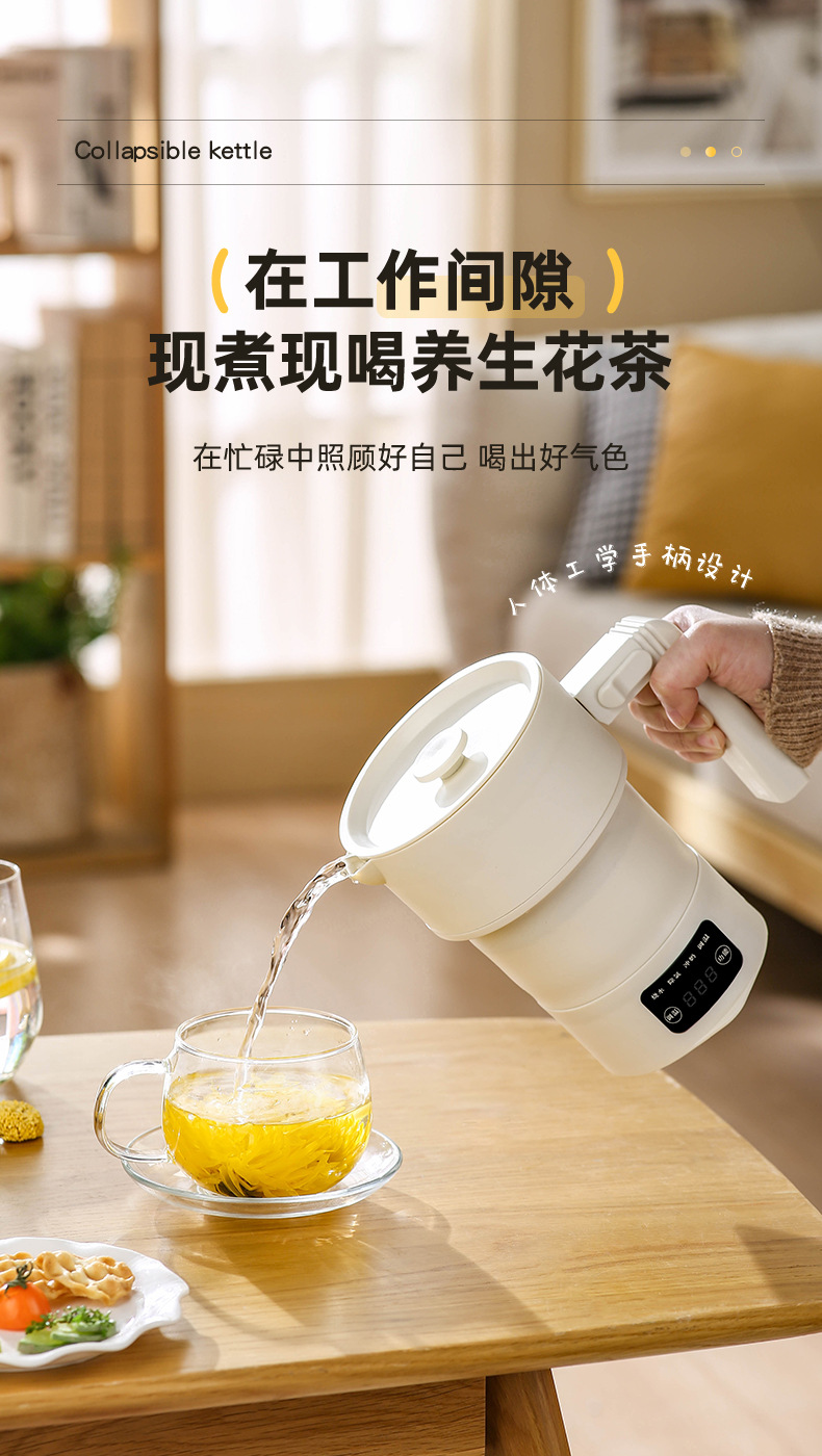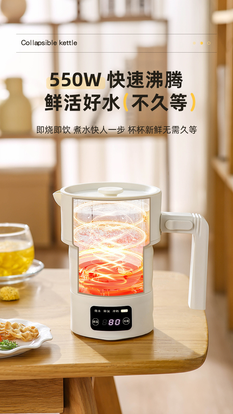 折叠水壶硅胶压缩式电热水壶旅行便携烧水壶家用不锈钢电水壶