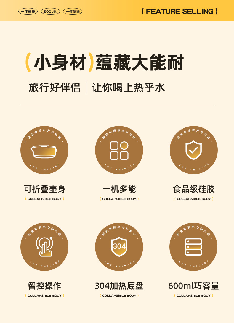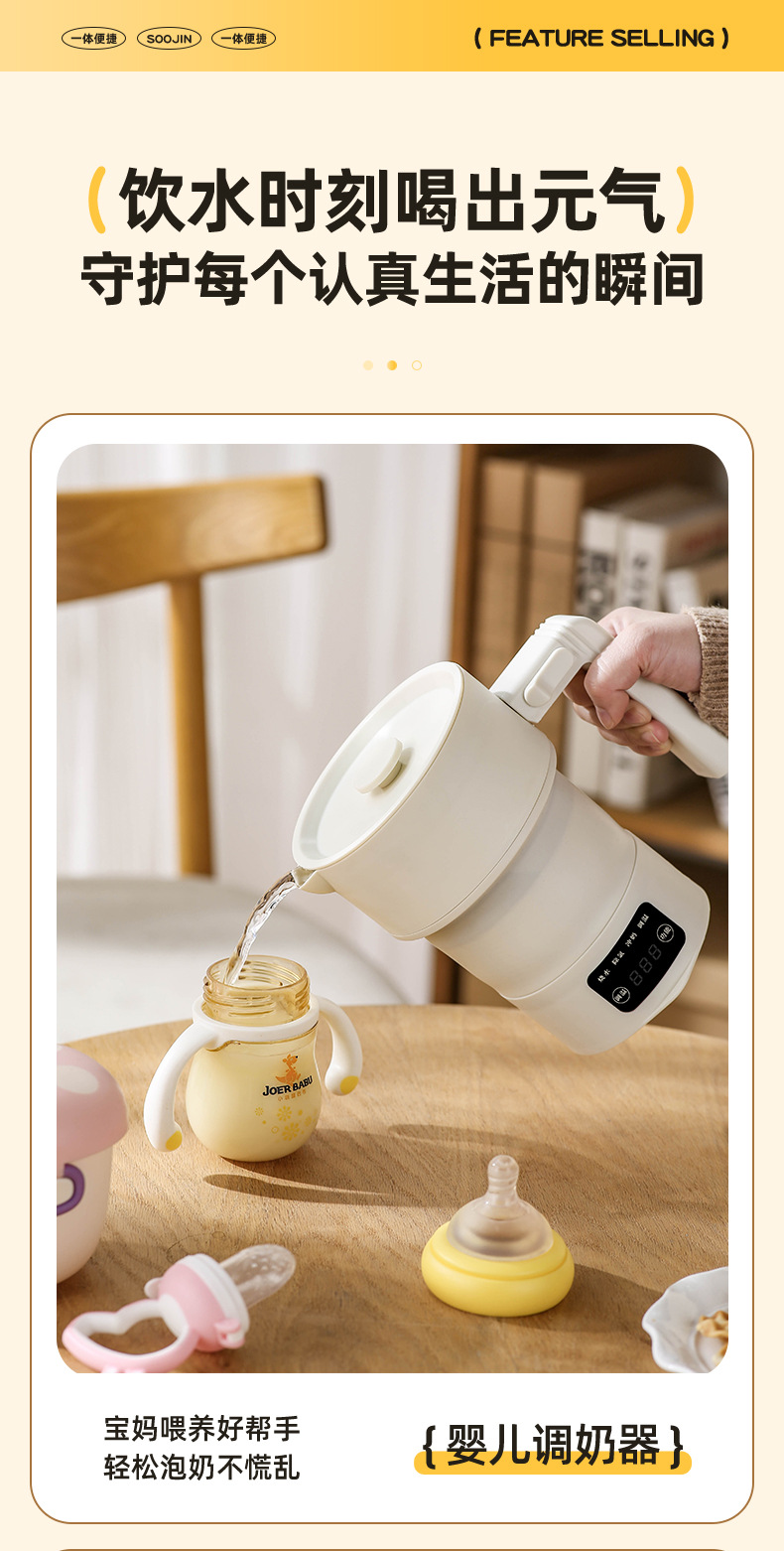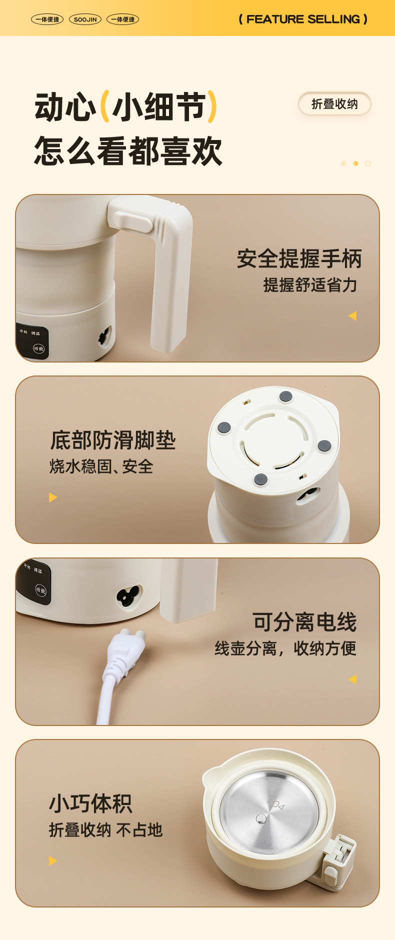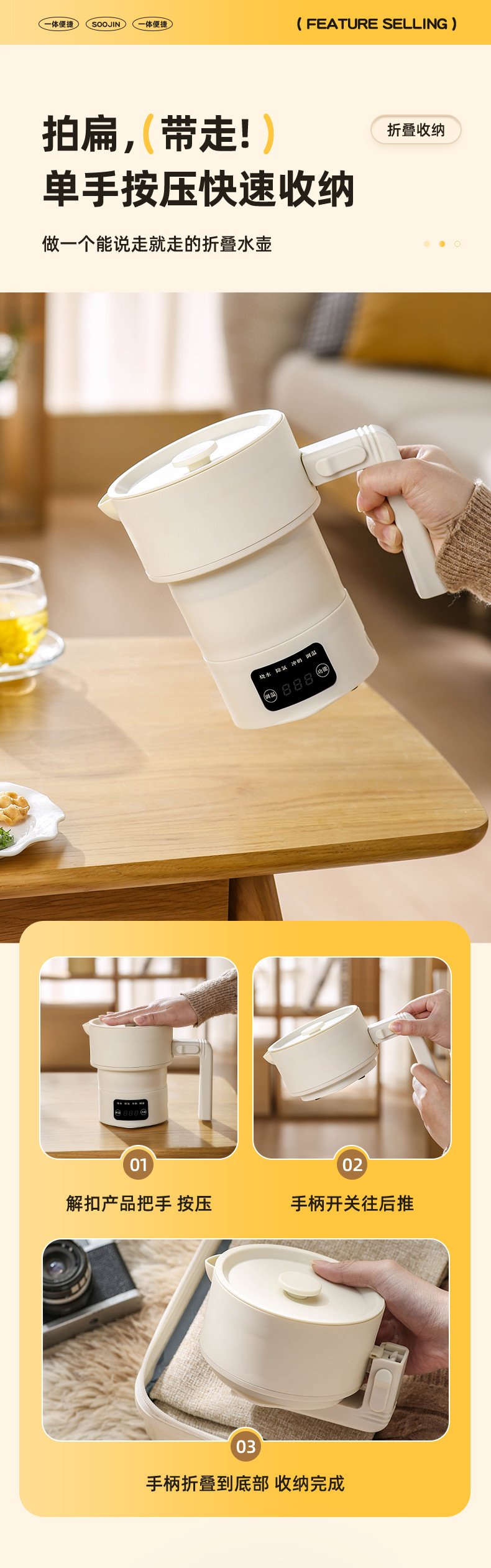 折叠水壶硅胶压缩式电热水壶旅行便携烧水壶家用不锈钢电水壶
