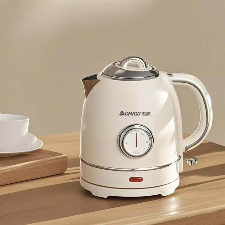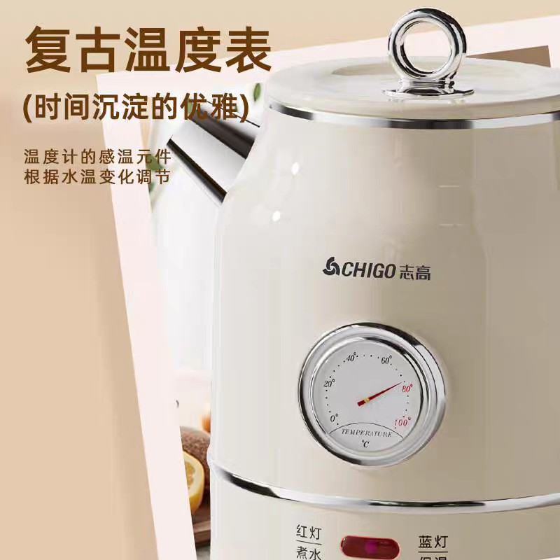 电热水壶1.5升家用泡茶304不锈钢开水壶复古温显表烧水壶