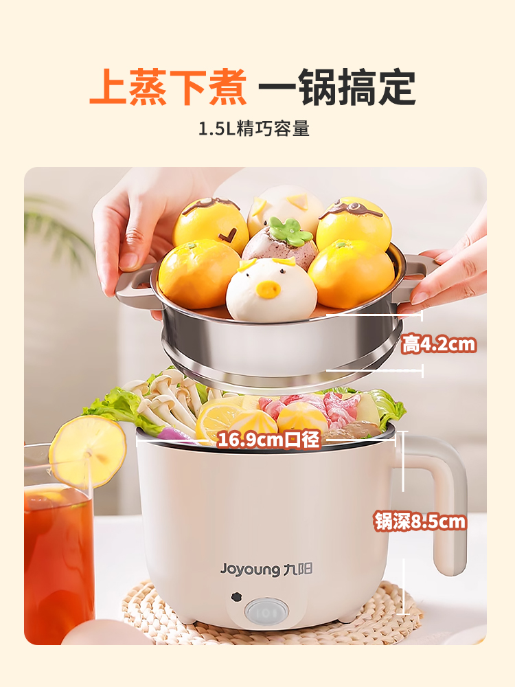 九阳电煮锅宿舍学生煮面锅蒸煮一体多功能火锅家用小型蒸锅烹饪机