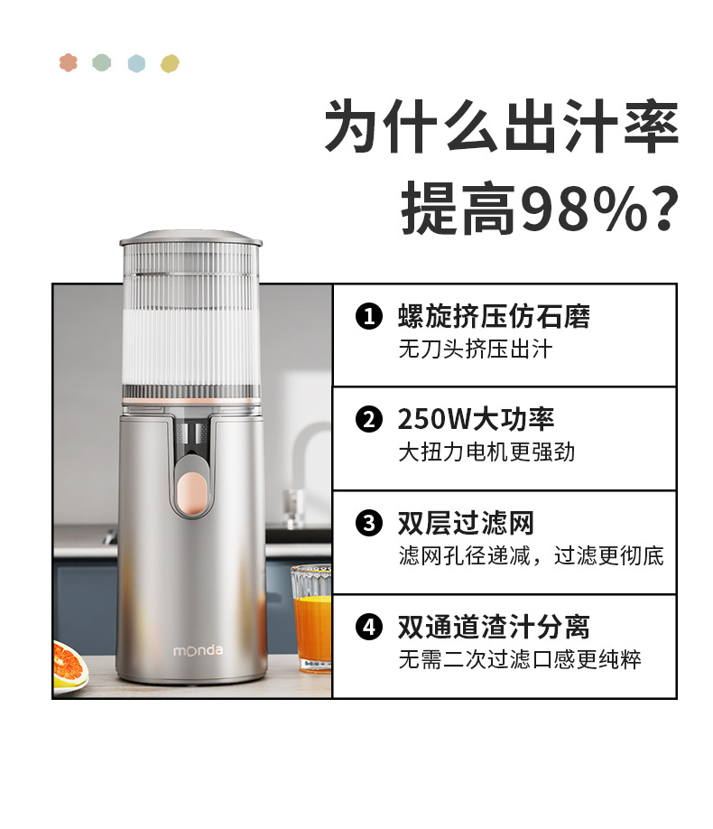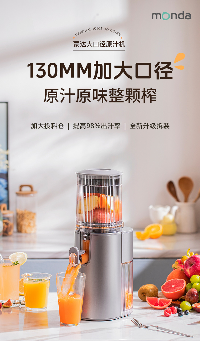蒙达榨汁机汁渣分离原汁机果汁机家用水果榨大口径