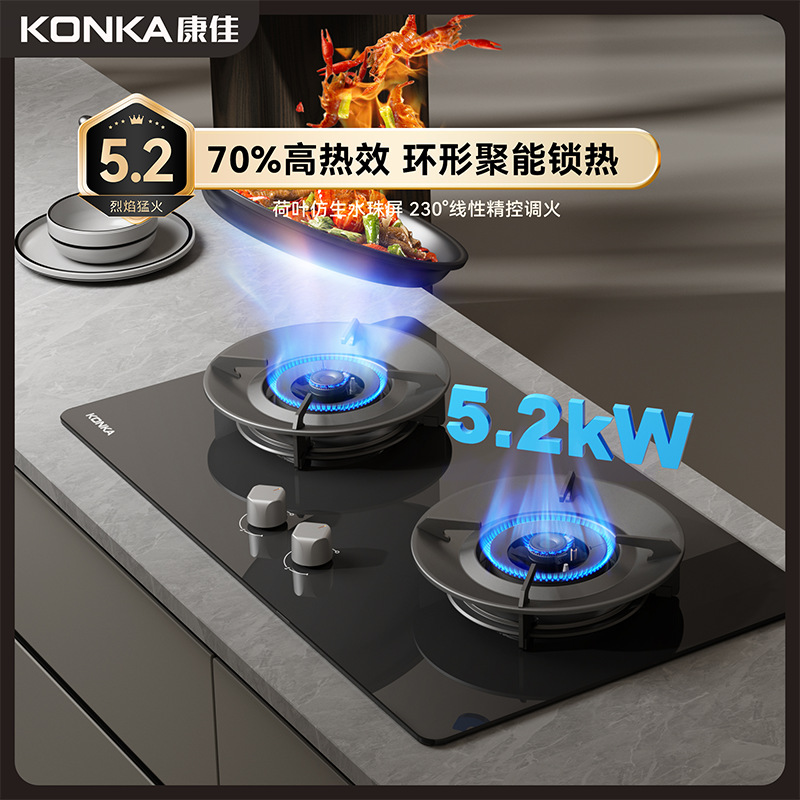 康佳5.2KW大火力燃气灶双灶家用70%热效率节能燃气灶