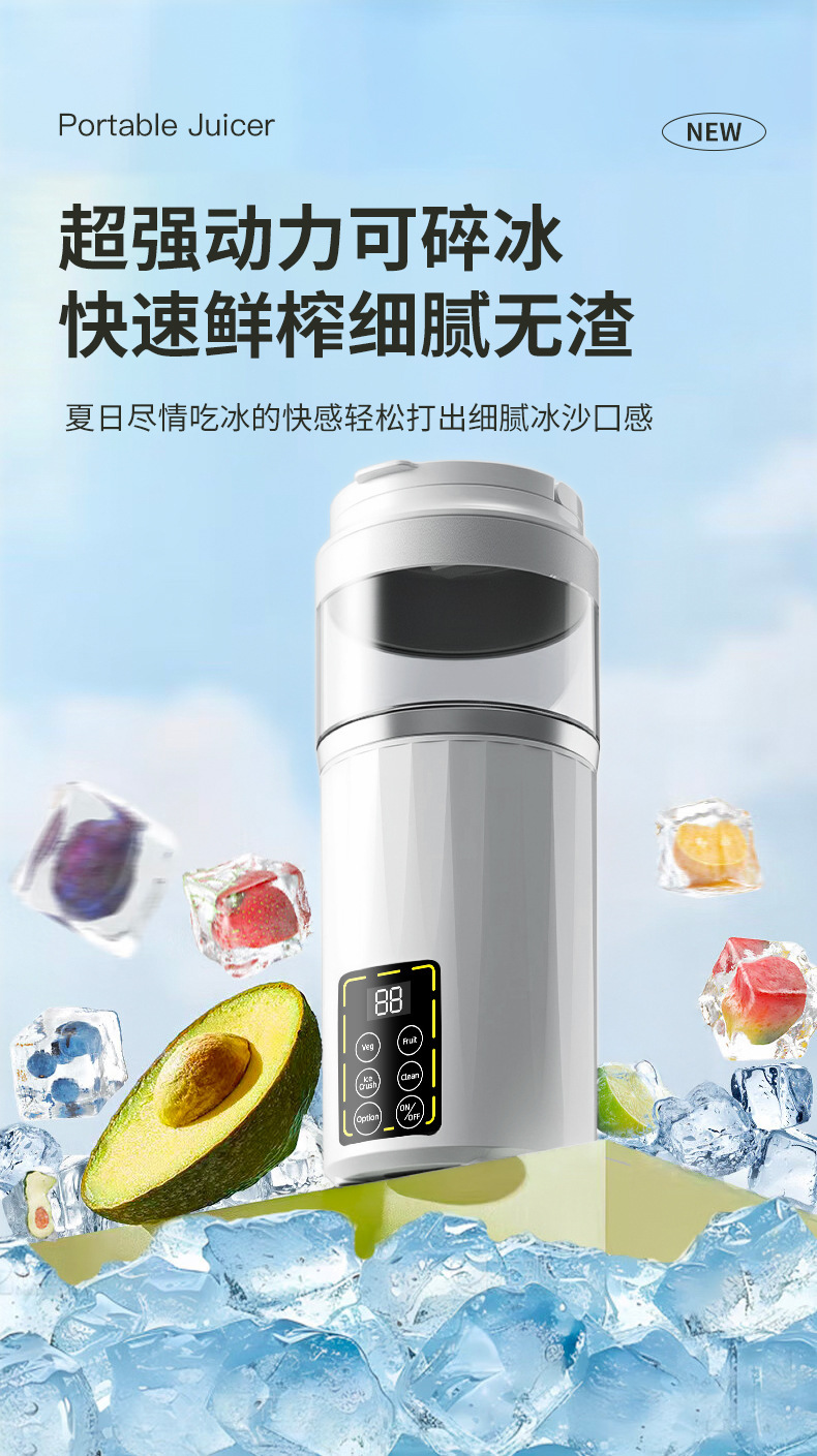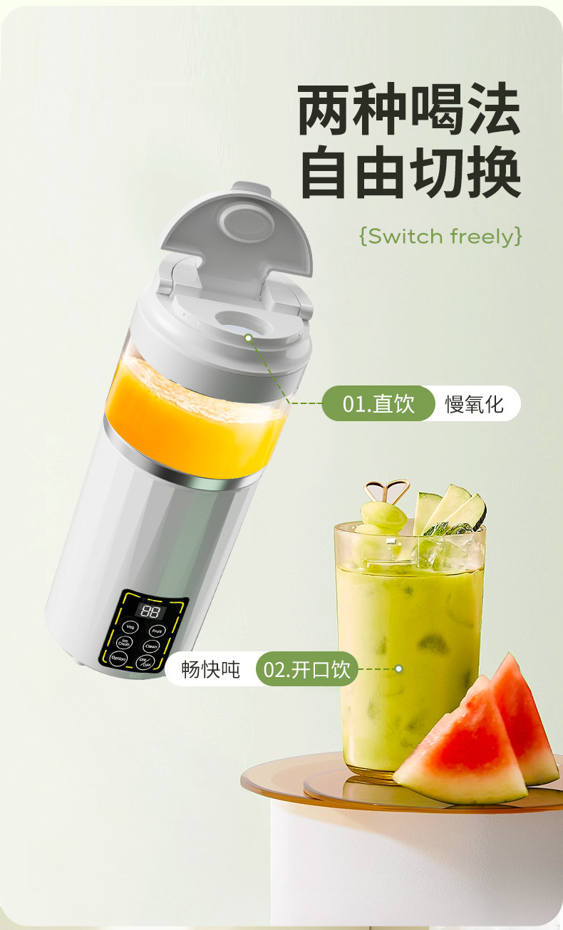 数显榨汁机家用碎冰榨汁杯USB充电便携果汁机户外随行杯