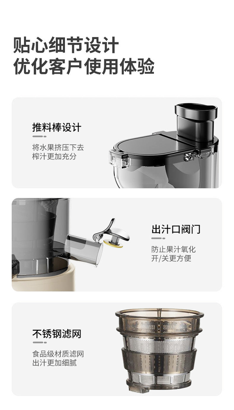 大口径榨汁机家用破壁豆浆机原汁机水果渣汁分离