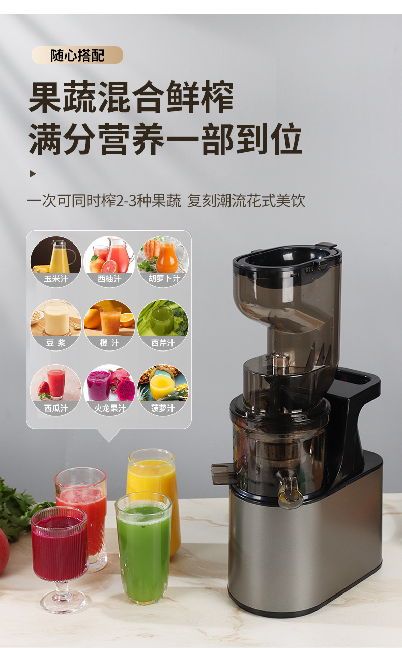 超大口径银灰色全自动榨汁机【大功率电机版本】