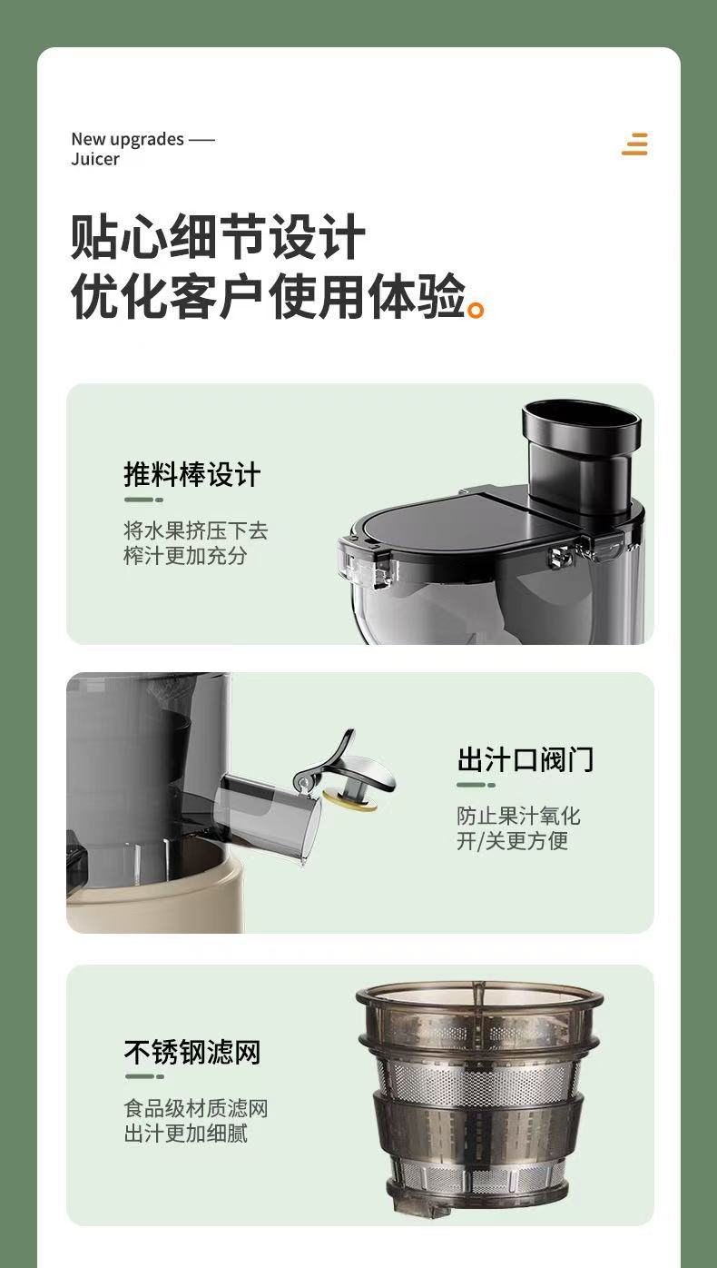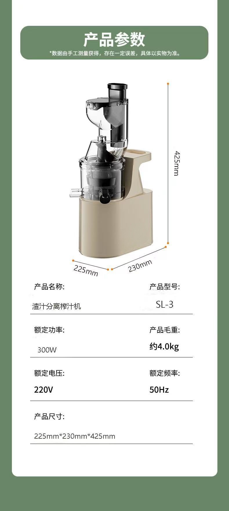 原汁机特大口径料理机渣汁分离家用榨汁机果汁机生姜蔬果汁机
