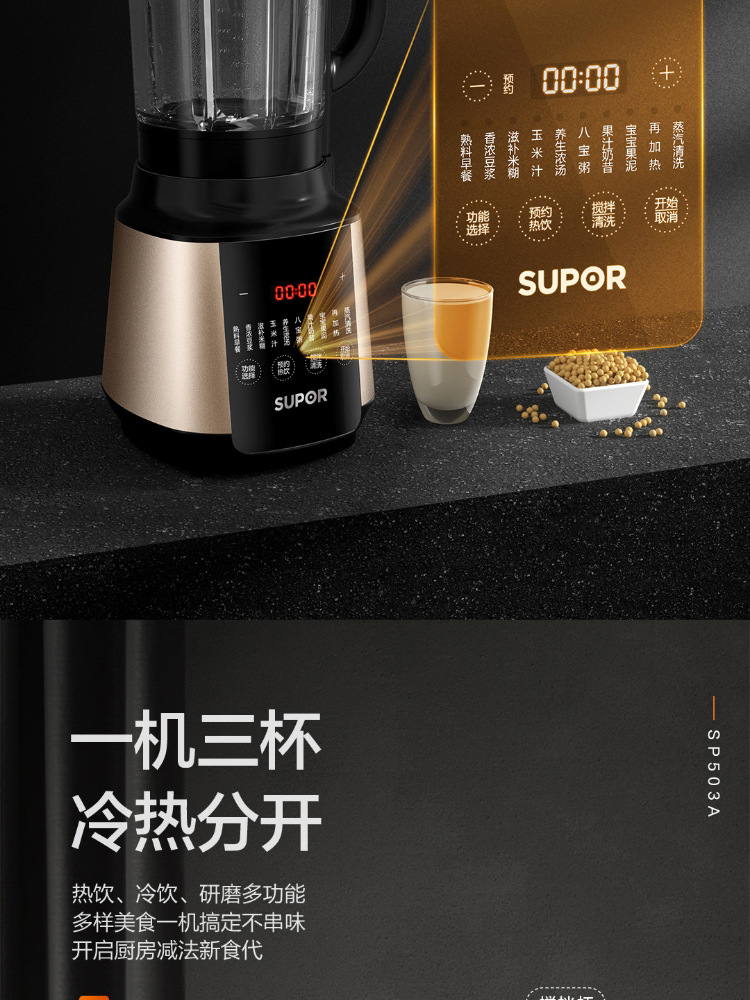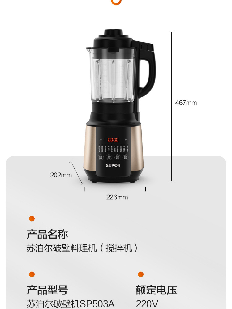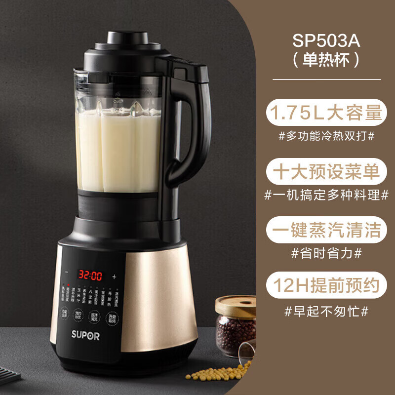 苏泊尔破壁机1.75升全自动智能预约加热榨汁豆浆绞肉辅食机SP503A