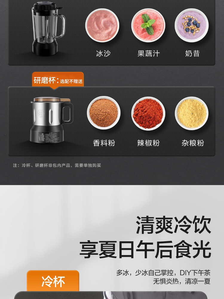 破壁机豆浆机家用全自动低音多功能免煮免泡免滤辅食料理机