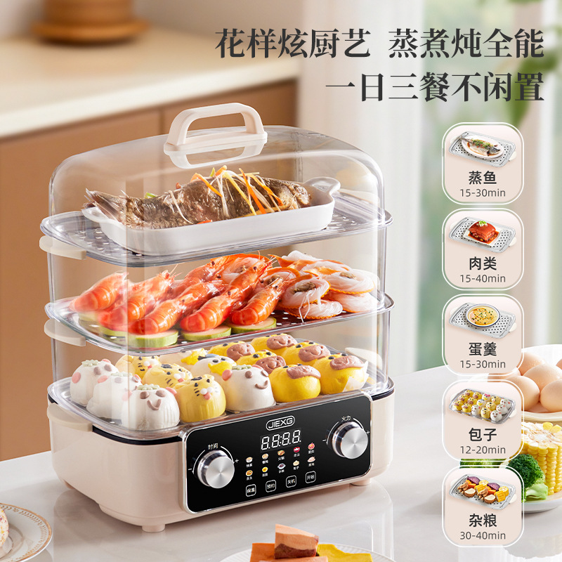 电蒸锅电蒸三层蒸煮一体蒸汽锅大容量可预约早餐机双旋钮