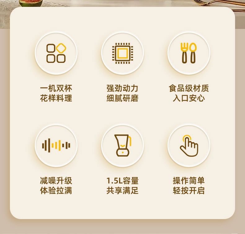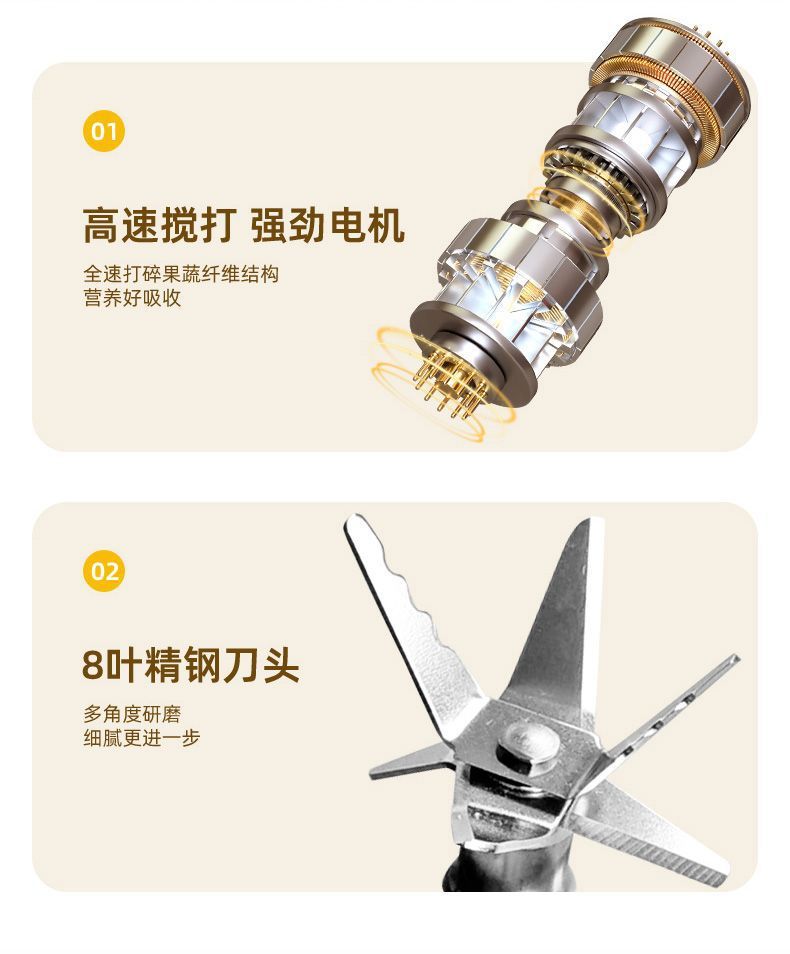 热销【研磨双杯】双杯1.5L+精钢8叶刀