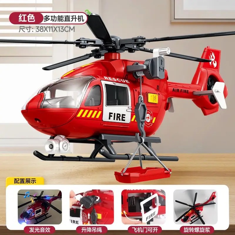 儿童直升机玩具回力旋转螺旋桨消防救援飞机男孩仿真模型玩具