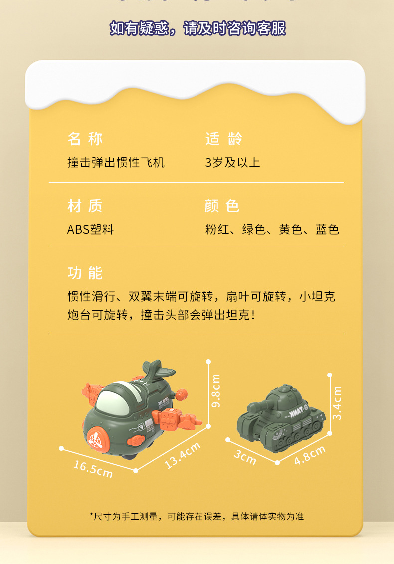 新款惯性撞击飞机玩具双翼旋转可装糖果亲子互动儿童益智玩具