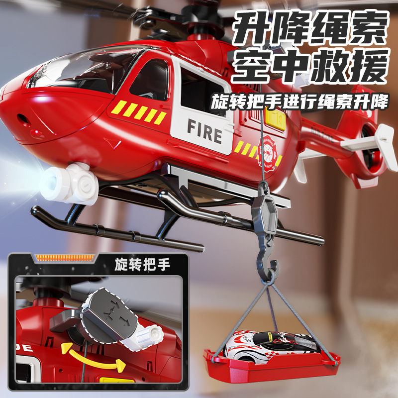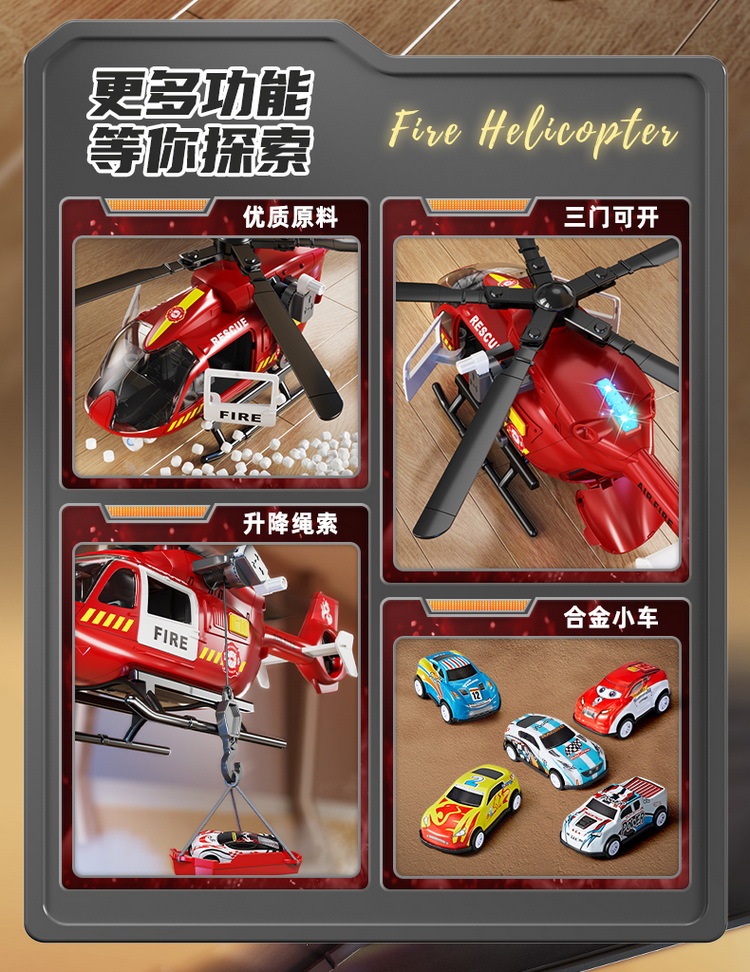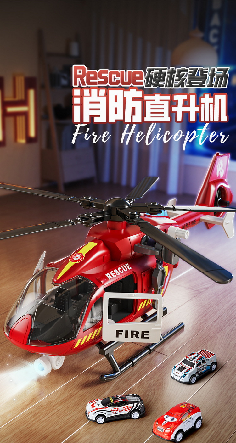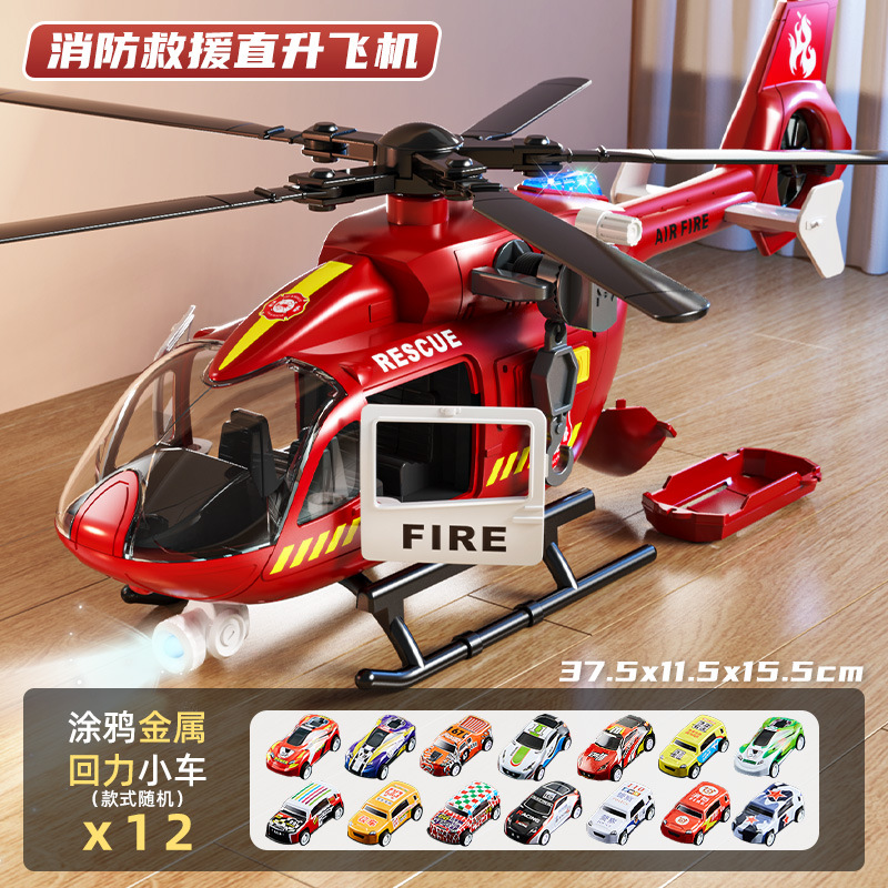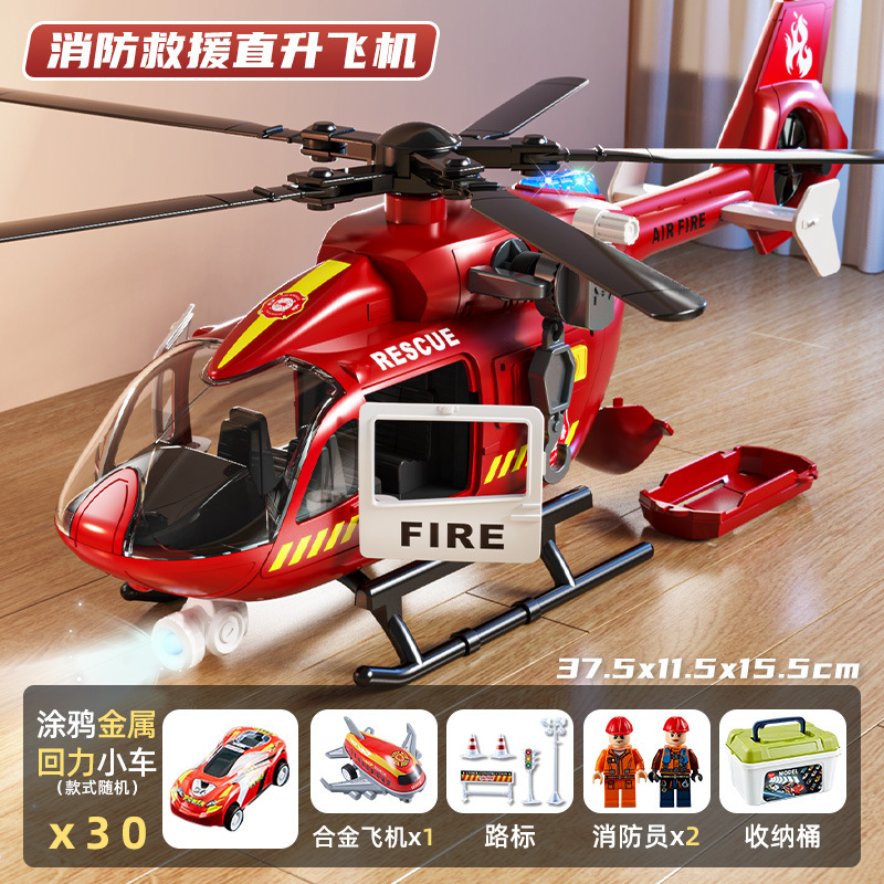 消防救援直升飞机+30合金车+1小飞机+2消防员+桶