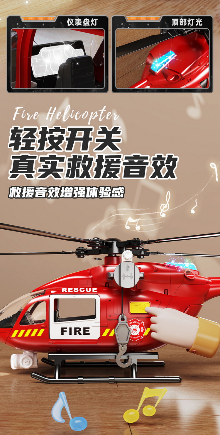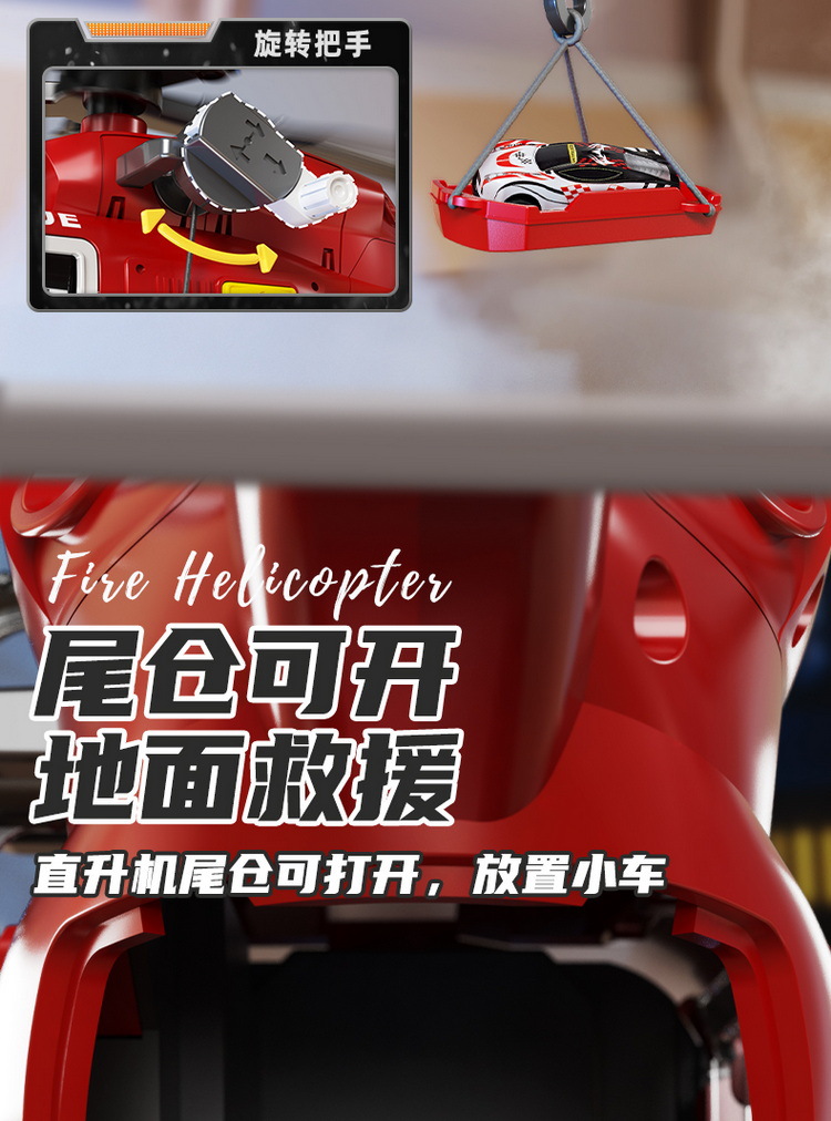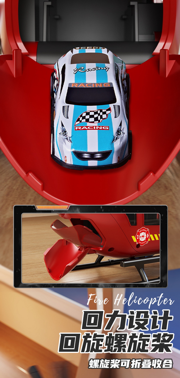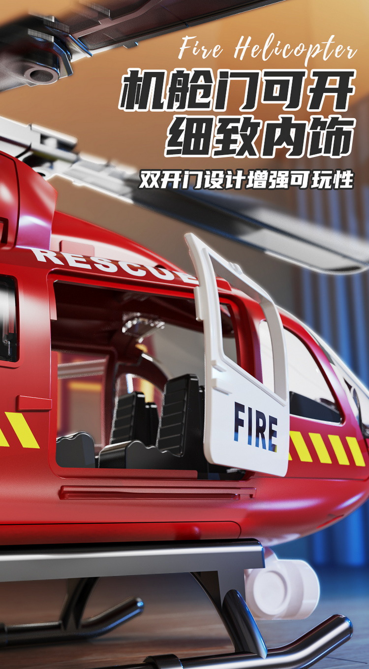 消防救援直升飞机+30合金车+1小飞机+2消防员+桶